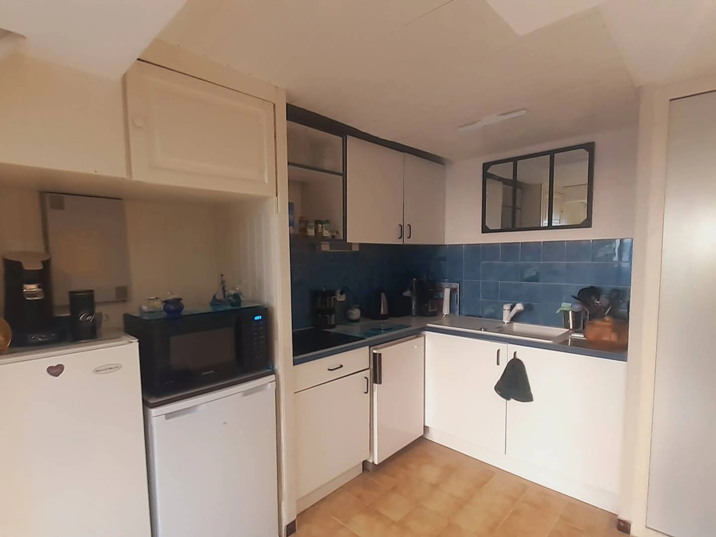 En RDC : Véranda (baies vitrées coulissantes) aménagée en espace séjour. Salon avec canapé et coin TV, cuisine ouverte (plaques de cuisson, micro-onde, 2 frigos top, congélateur). Une salle d‘eau avec WC.