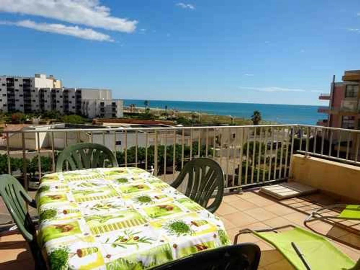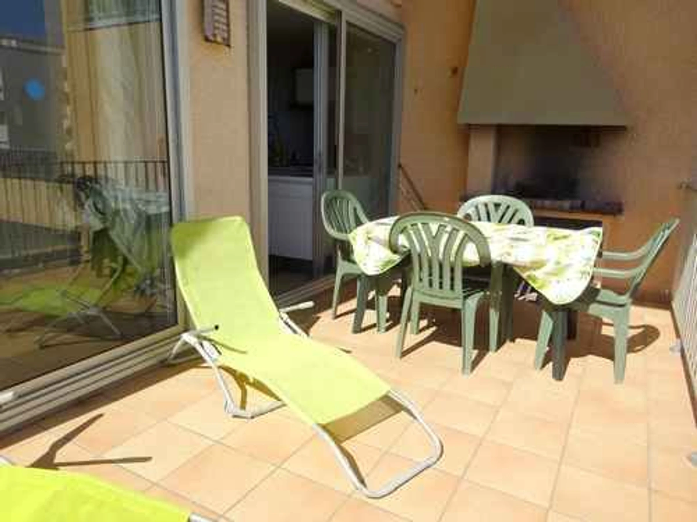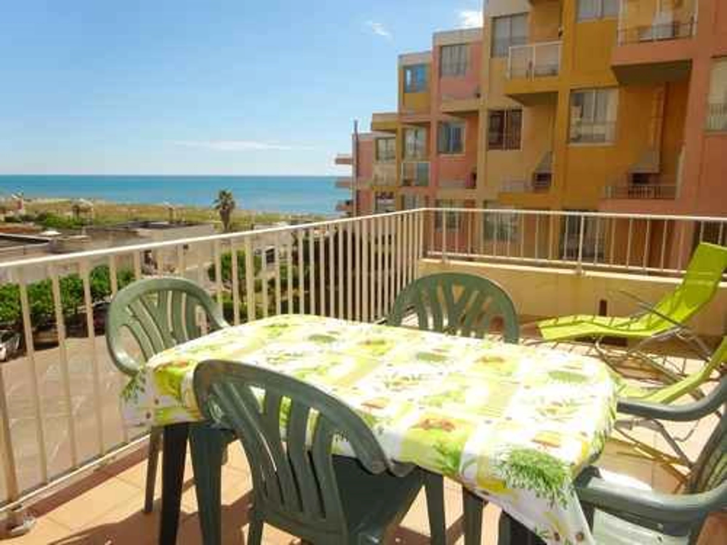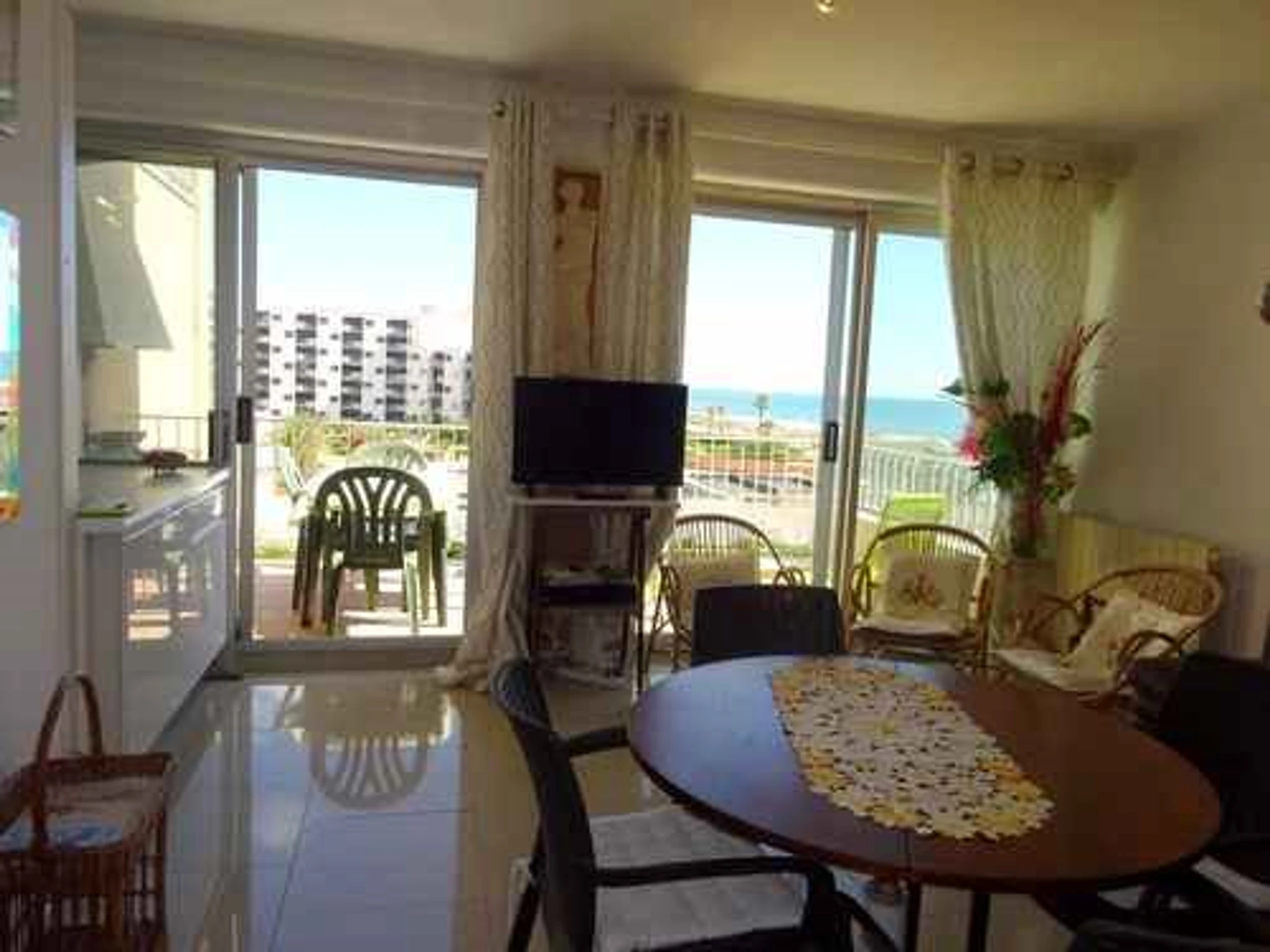 Au 3 E étage (ascenseur), Appartement 3 pièces en duplex traversant typique de la Sardane : Au 1er niveau, Espace salon séjour (canapé, coin TV et repas) ouvert sur une terrasse vue mer et équipée pour les repas (salon de jardin, parasol et vrai BARBECUE !). Cuisine ouverte équipée : 4 feux gaz, réfrigérateur congélateur, micro-onde, lave-vaisselle. A l’étage, une salle d’eau (douche) avec WC, une salle de bain (baignoire) avec Lave-linge. Une première chambre avec un lit en 140 (couchage 2 personnes) et une seconde avec 2 lits en 80. Les deux chambres donnent un accès sur une loggia équipée d’un clic clac.Equipé pour 6 personnes. Accès direct à la plage et parking privé. Linge de maison et draps non fournis. Ménage de fin de séjour non inclus, prestation en supplément.