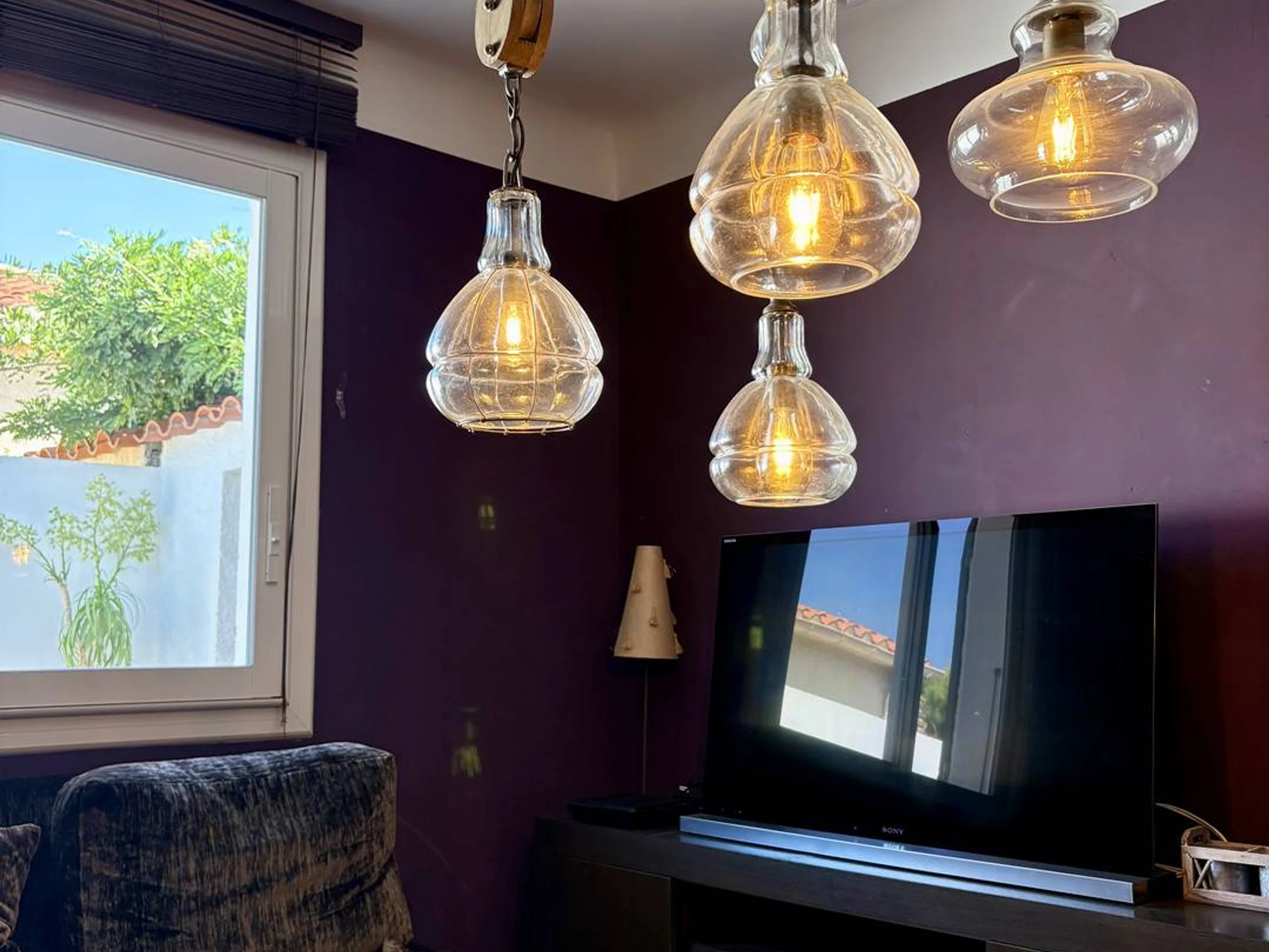 Elle comprend un salon avec télévision, canapé fixe, table basse et fauteuils.