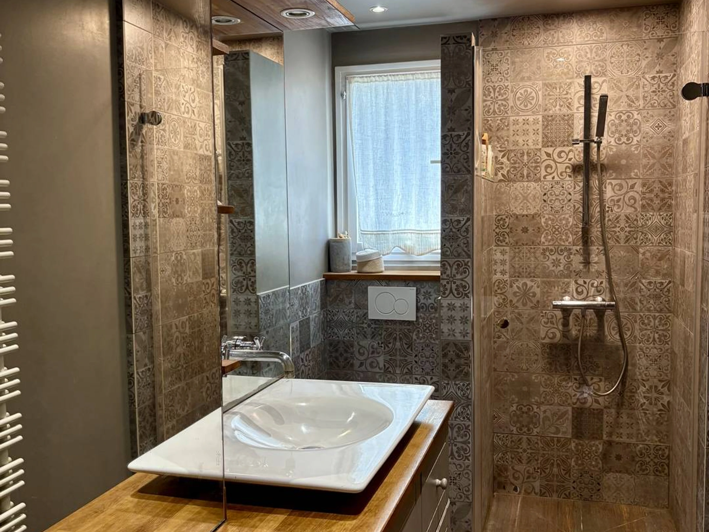 Vous disposerez également d’une salle d’eau avec douche, lavabo et WC, ainsi que d’une salle de bain avec baignoire, lavabo et WC.