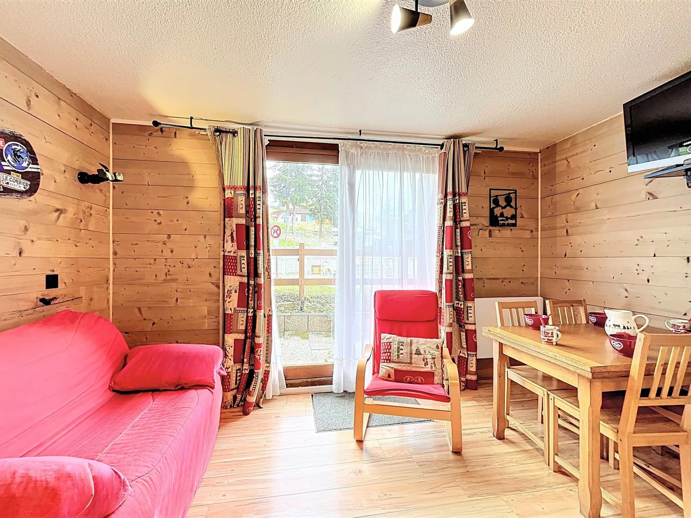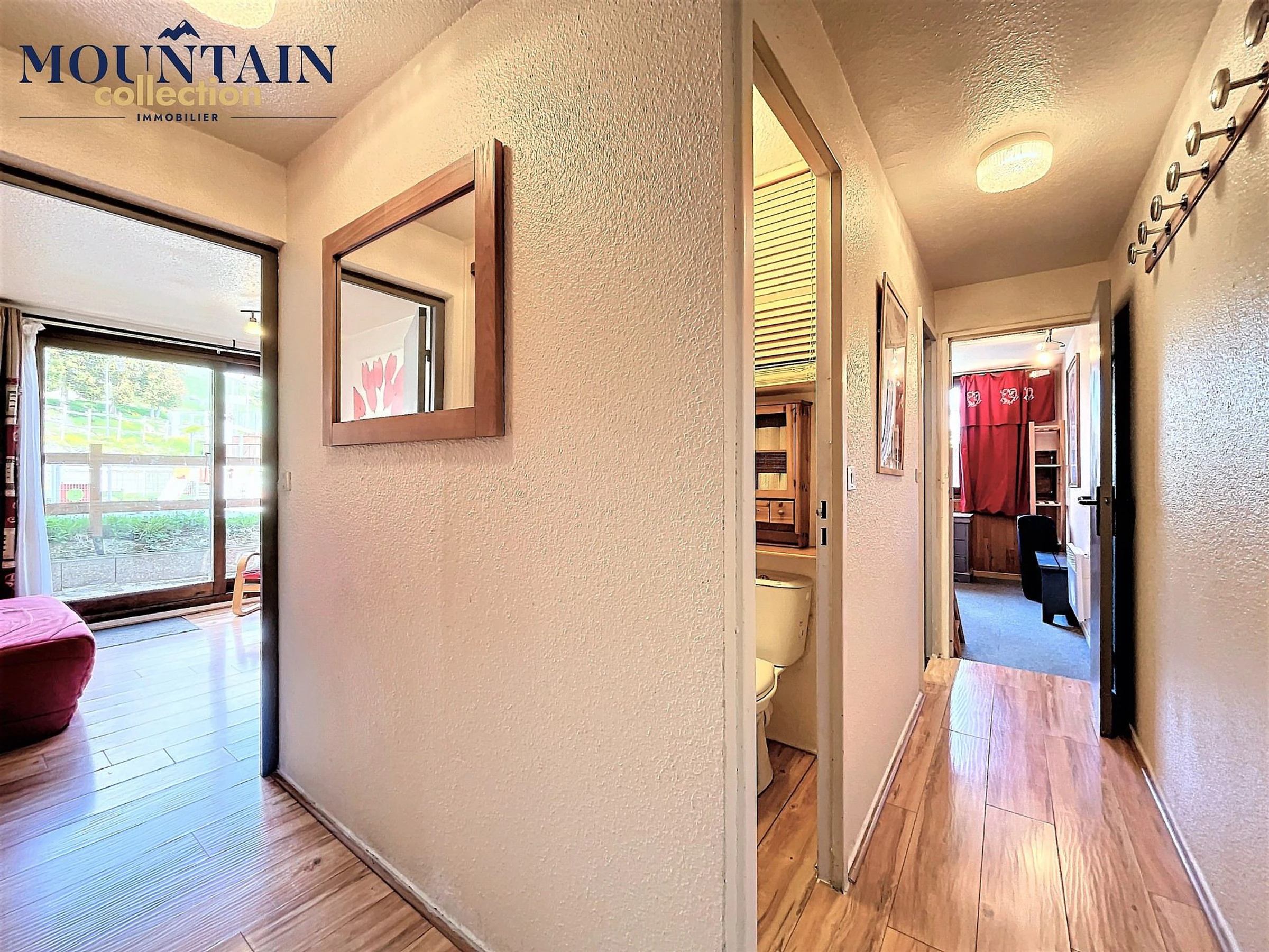 Joli appartement 2 pièces, de 35m² pour 5/6 personnes, situé Résidence Zodiaque, au 1er étage, terrasse avec vue sur l'Office de tourisme, exposé Ouest, ainsi qu'une chambre au calme côté montagne.