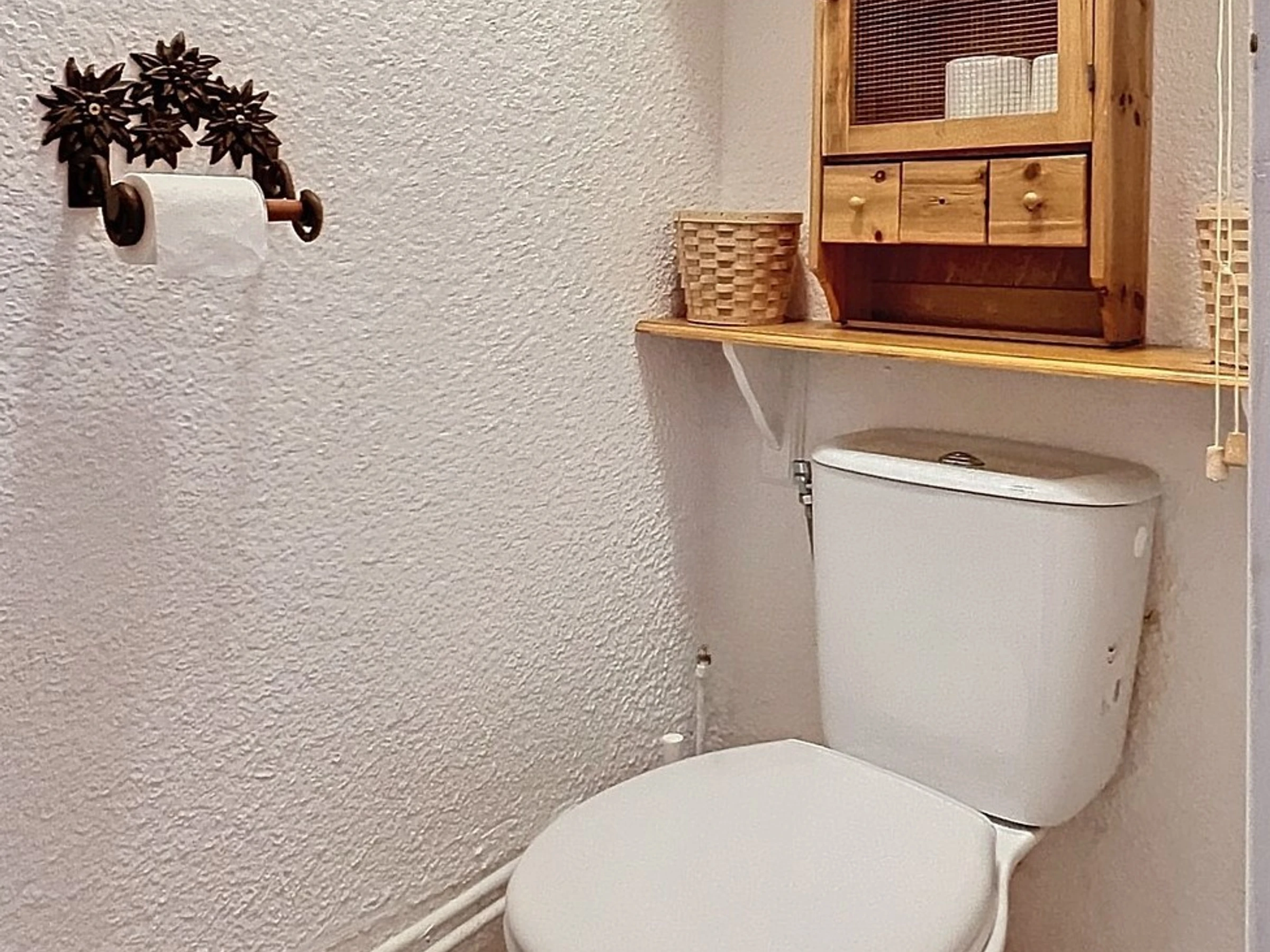 L'appartement comprend une entrée pourvue d'un grand placard de rangement. Dans la pièce à vivre, coin cuisine équipé avec un grand frigo, un micro-ondes, un mini four, un appareil à raclette, appareil à fondue, un mixeur, 2 plaques vitro, d'un lave vaisselle, d'une cafetière filtre, une bouilloire, un grille pain.