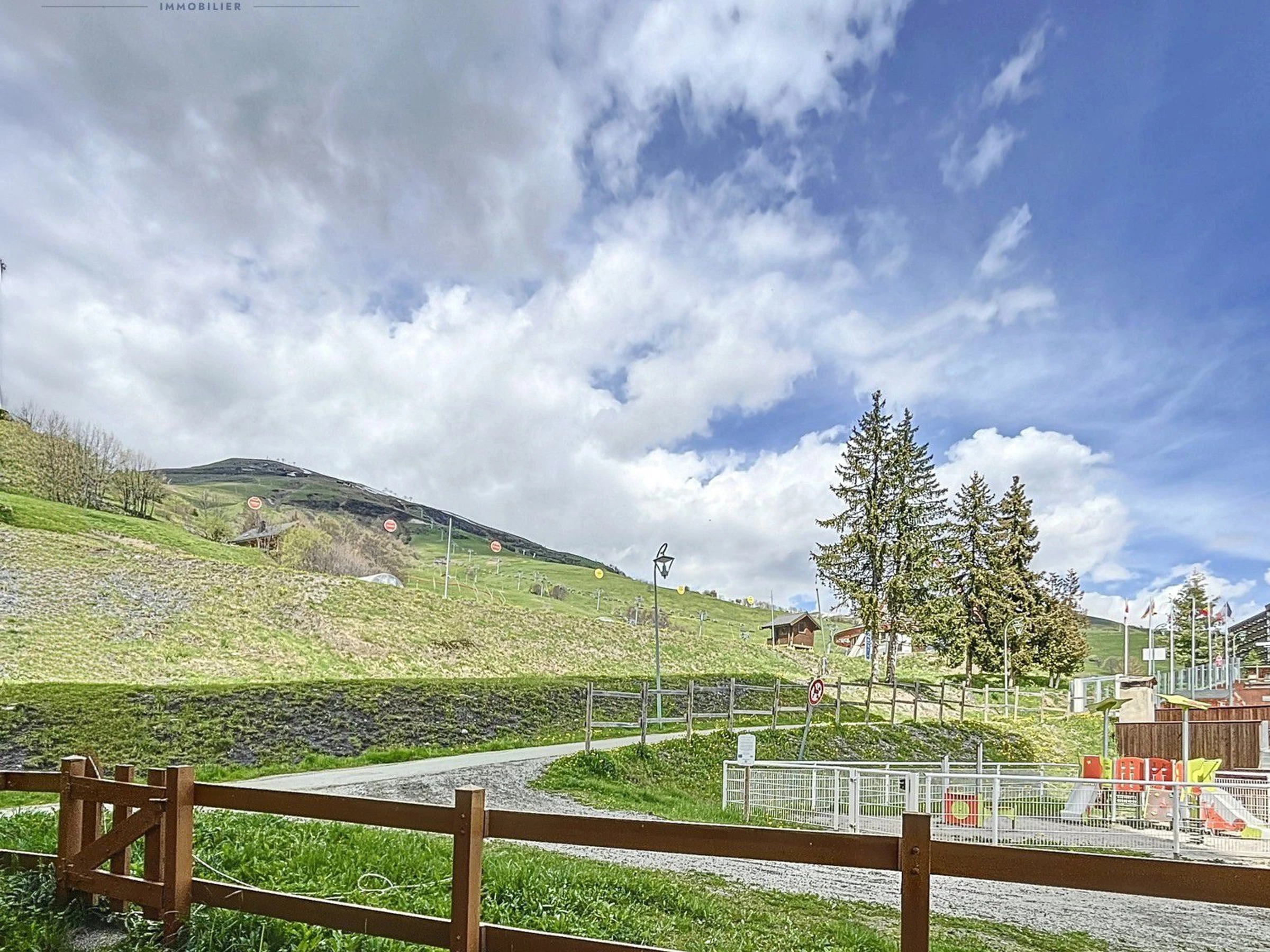 Cette résidence très bien située, est à proximité des commerces, de l'ESF, elle se situe au pied des pistes, et à 2 pas du front de neige. Garderie enfants à côté.