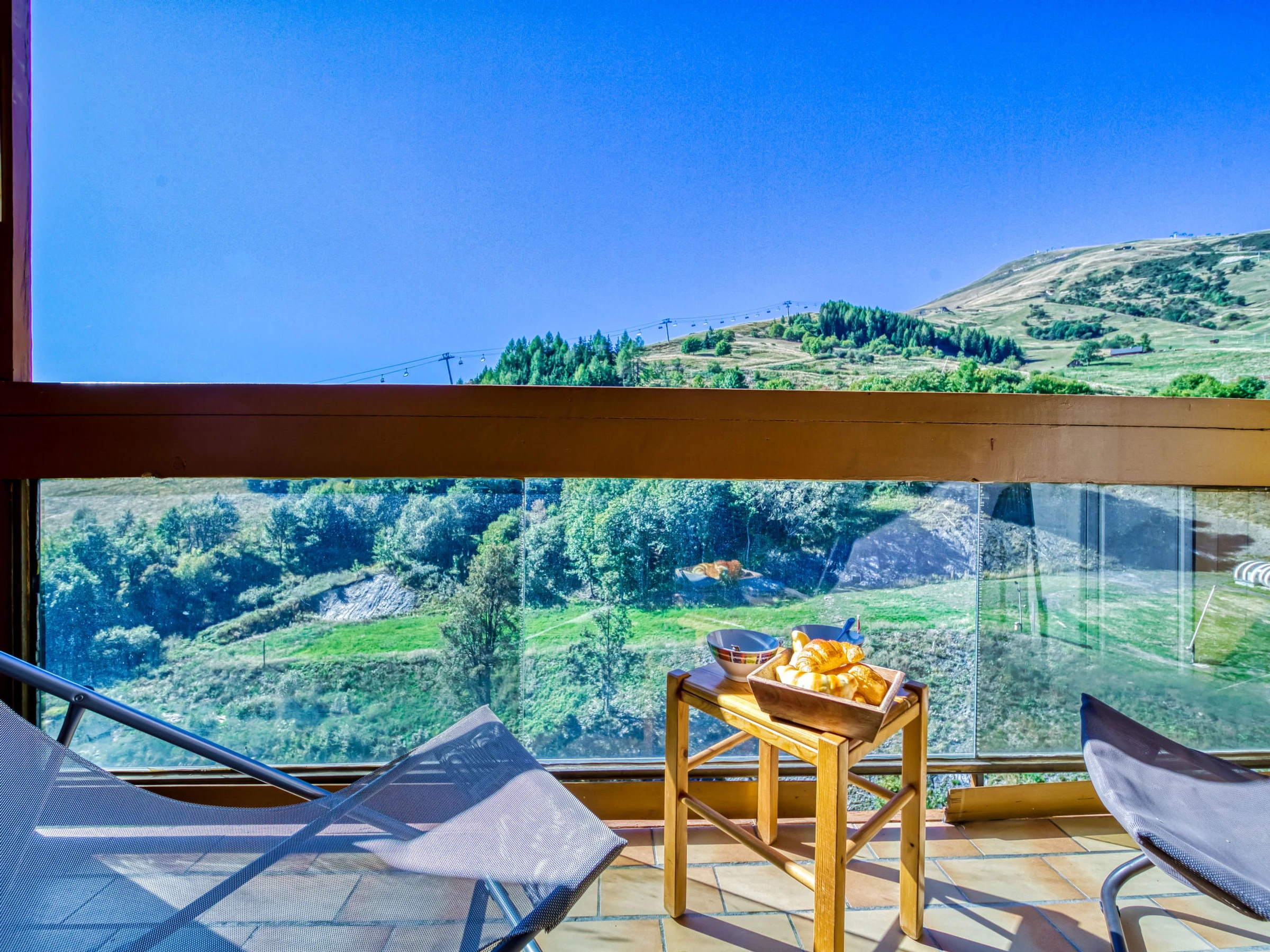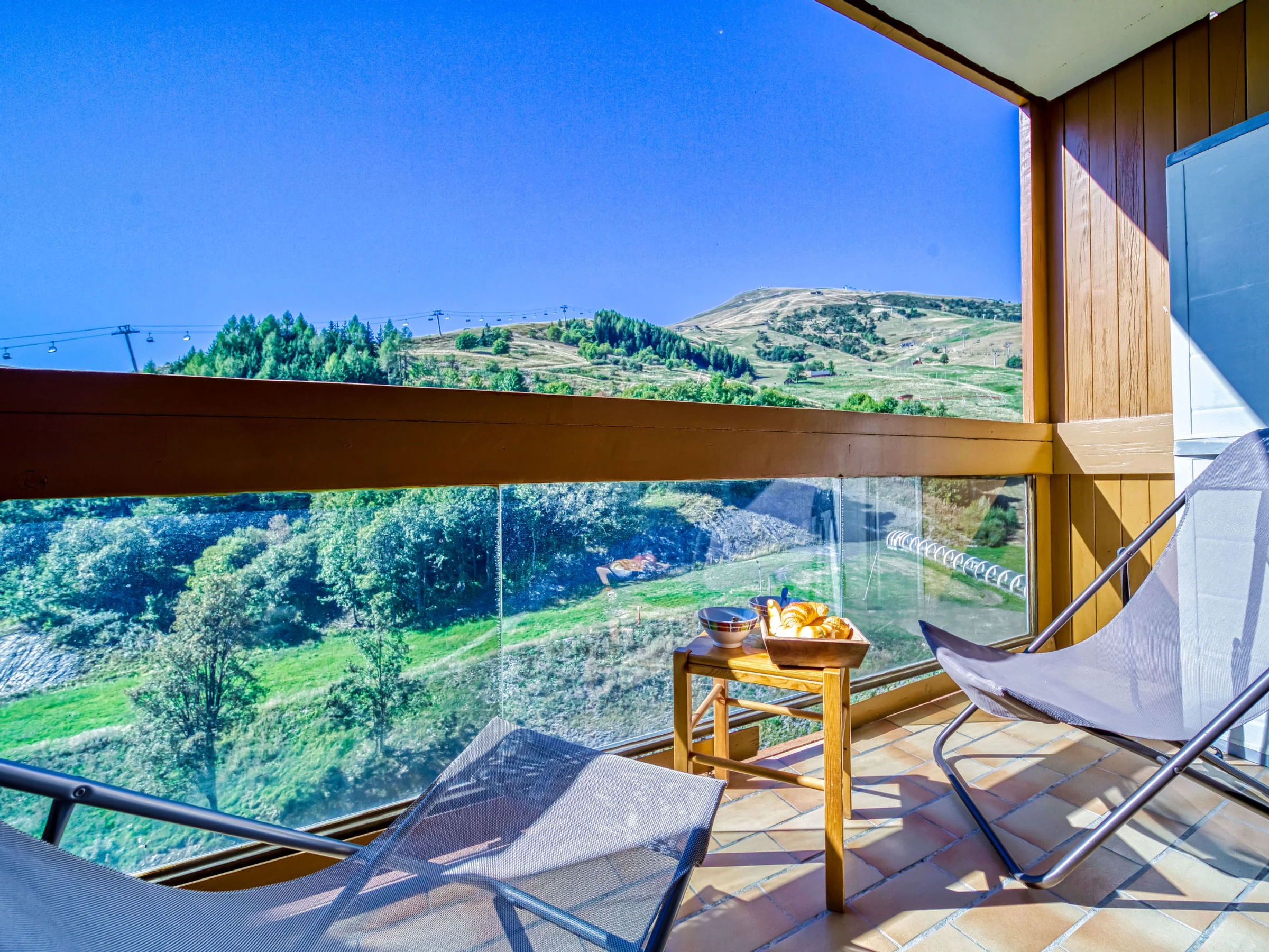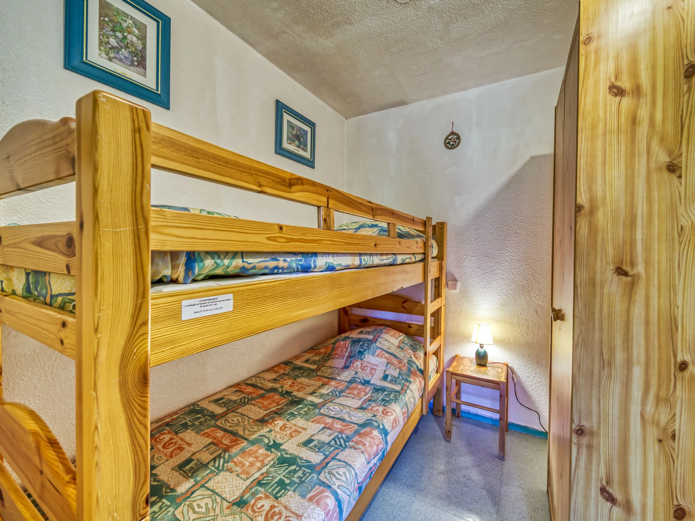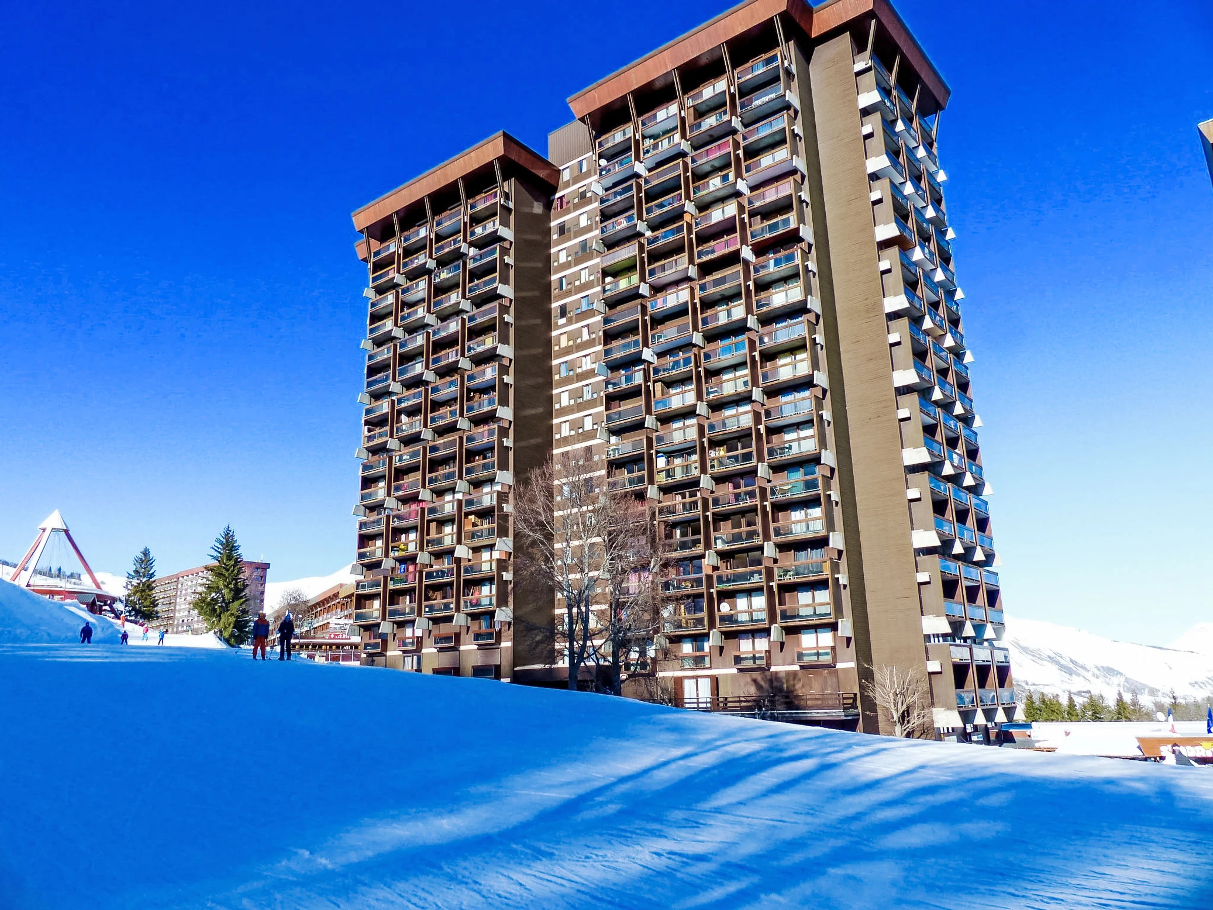 Apt 2 pièces 32 m2 au 12ème étage, situation sud. Aménagement confortable: séjour/salle à manger avec 1 divan-lit double (130 cm, longueur 190 cm), TV (écran plat). Sortie sur le balcon, orientée sud. 1 petite chambre, fenêtre donnant sur le séjour avec 1 x 2 lits superposés (90 cm, longueur 190 cm). Coin cuisine (2 plaques de cuisson, mini-four, grille-pain, micro-ondes, congélateur, cafetière électrique) avec bar. Salle de bains, WC séparé. Chauffage électrique. Balcon 4 m2, situation sud. Mobilier de balcon, chaises longues (2). Vue sur les montagnes et les pistes de ski. A disposition: sèche-cheveux. Internet (Connexion WIFI, en sus). Veuillez noter: logement non-fumeur. Maximum 1 animal/ chien autorisé. Détecteur de fumée. Au lieu d'une chambre fermée, des espaces de couchage sont situés dans une zone ouverte (galerie, alcôve...).