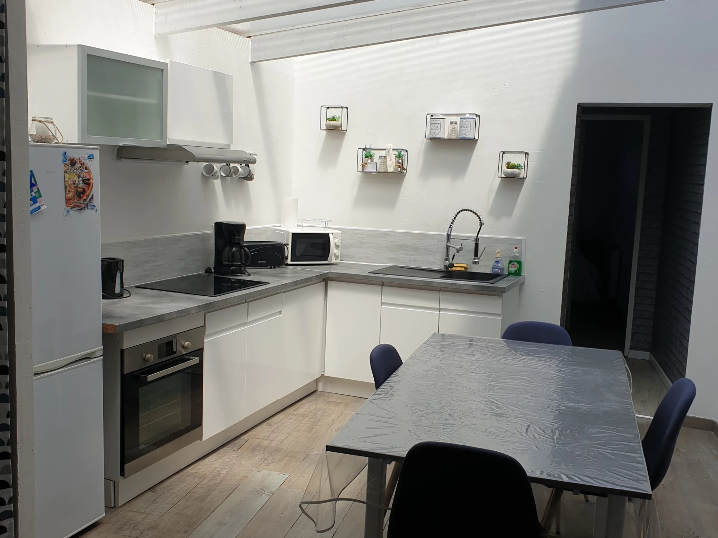 Cette maison d'environ 45 m² est située dans un secteur calme (dans une impasse), à 500 m à pieds du port et des commerces et comprend une grande pièce de vie (avec clim) avec cuisine aménagée et équipée (3 feux induction, four, micro-ondes, hotte, lave vaisselle, réfrigérateur/congélateur, petit électro-ménager, cafetière à filtre), 1 chambre avec 1 lit 160, 1 salle d'eau avec wc (lave-linge), et en mezzanine 1 chambre avec 1 lit de 140 et 1 clic-clac 140. Maison climatisée.