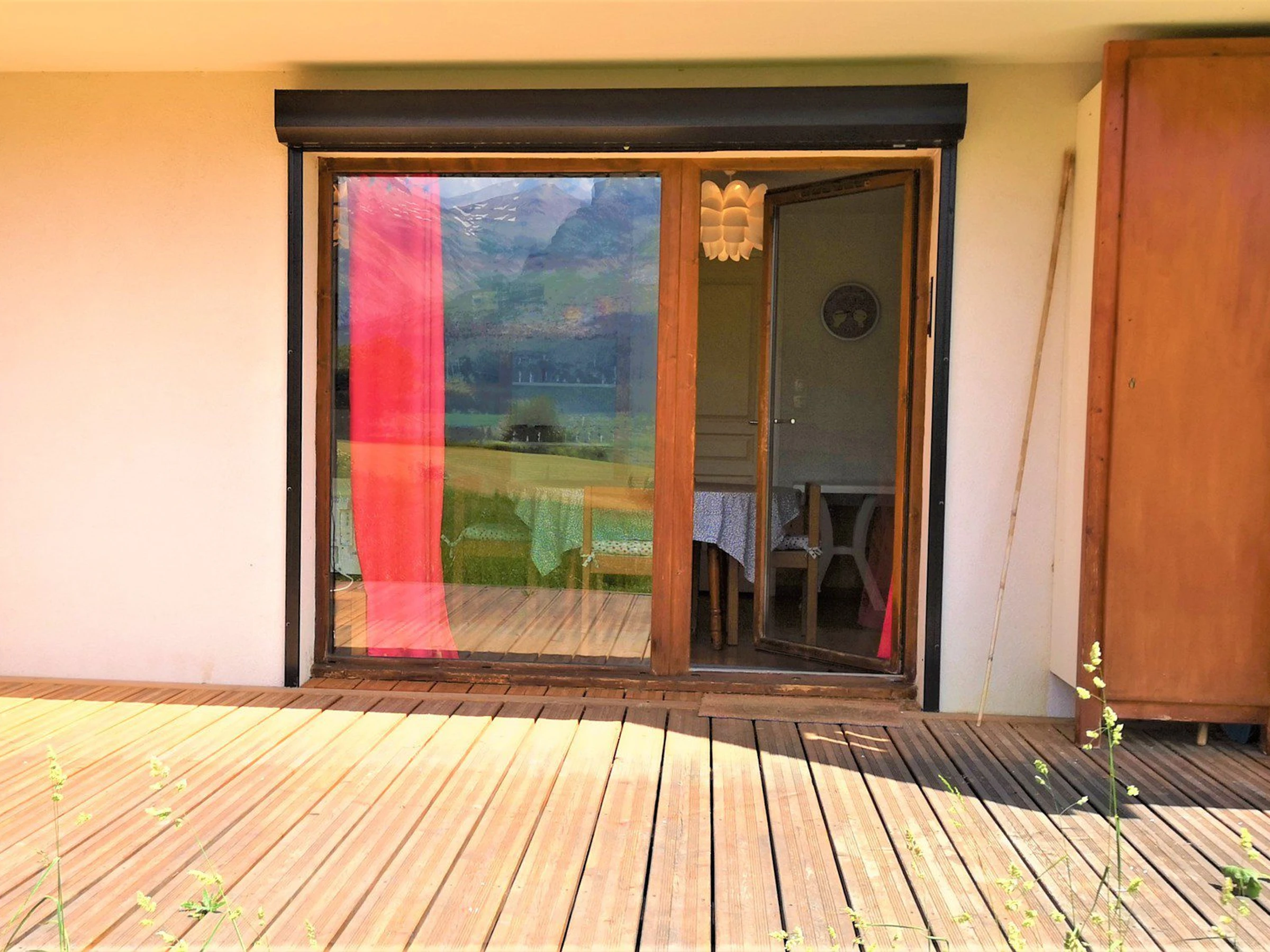 Terrasse exposée Ouest avec magnifique vue montagne. Local à skis. Parking gratuit.