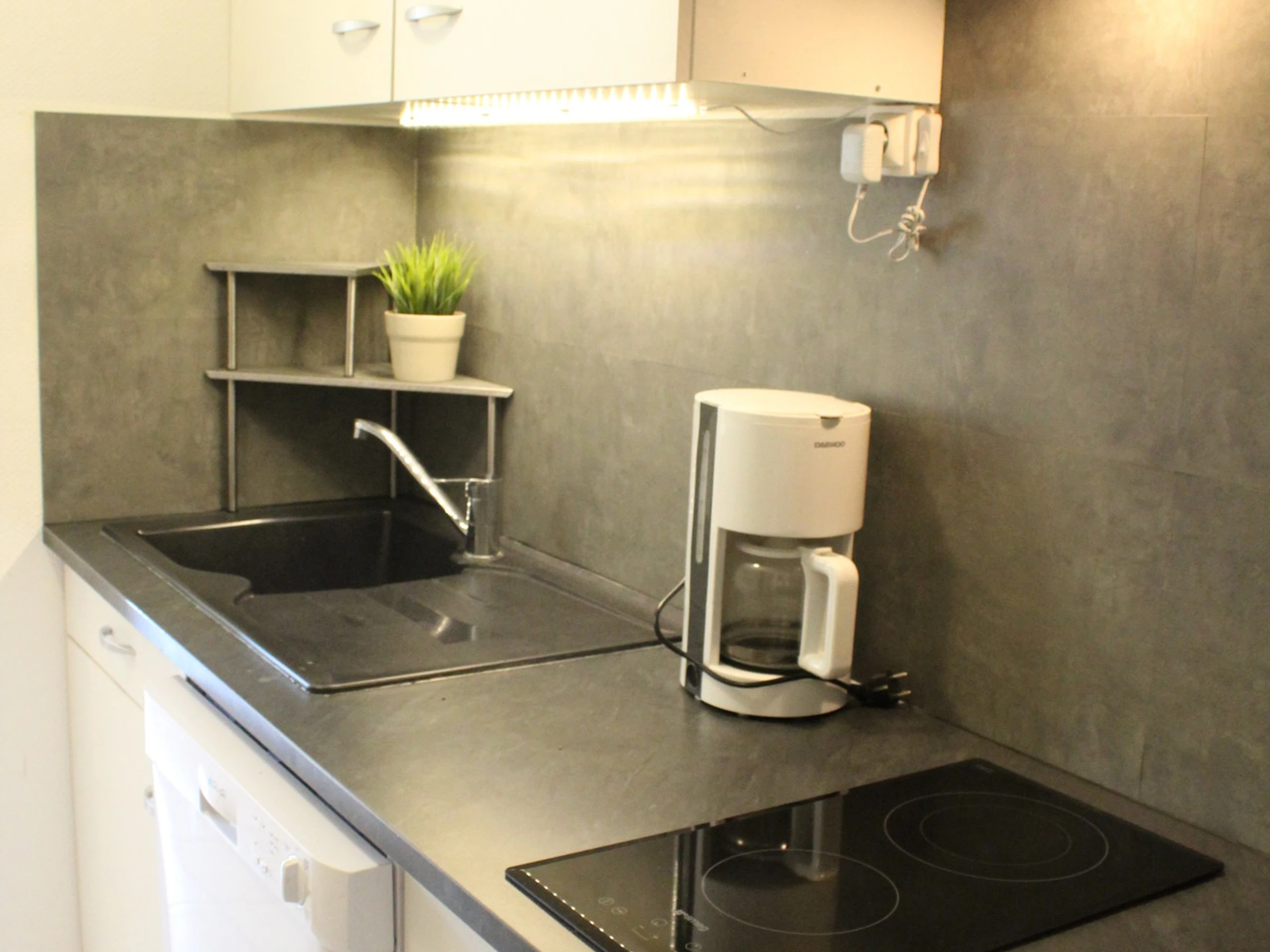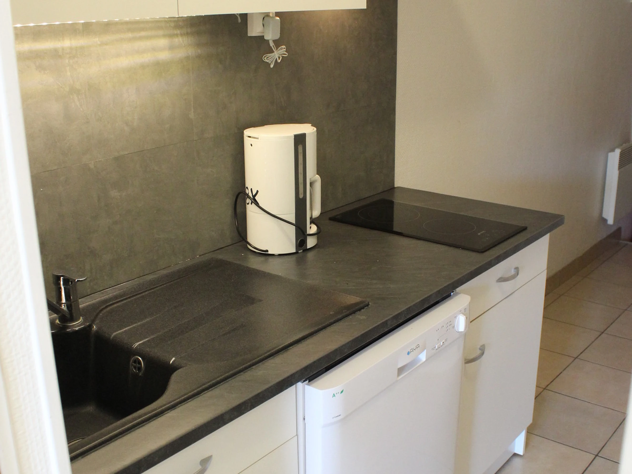 Kitchenette entièrement équipée, lave vaisselle, four, micro-ondes, grand frigo, cafetière filtre, grille-pain, bouilloire électrique.