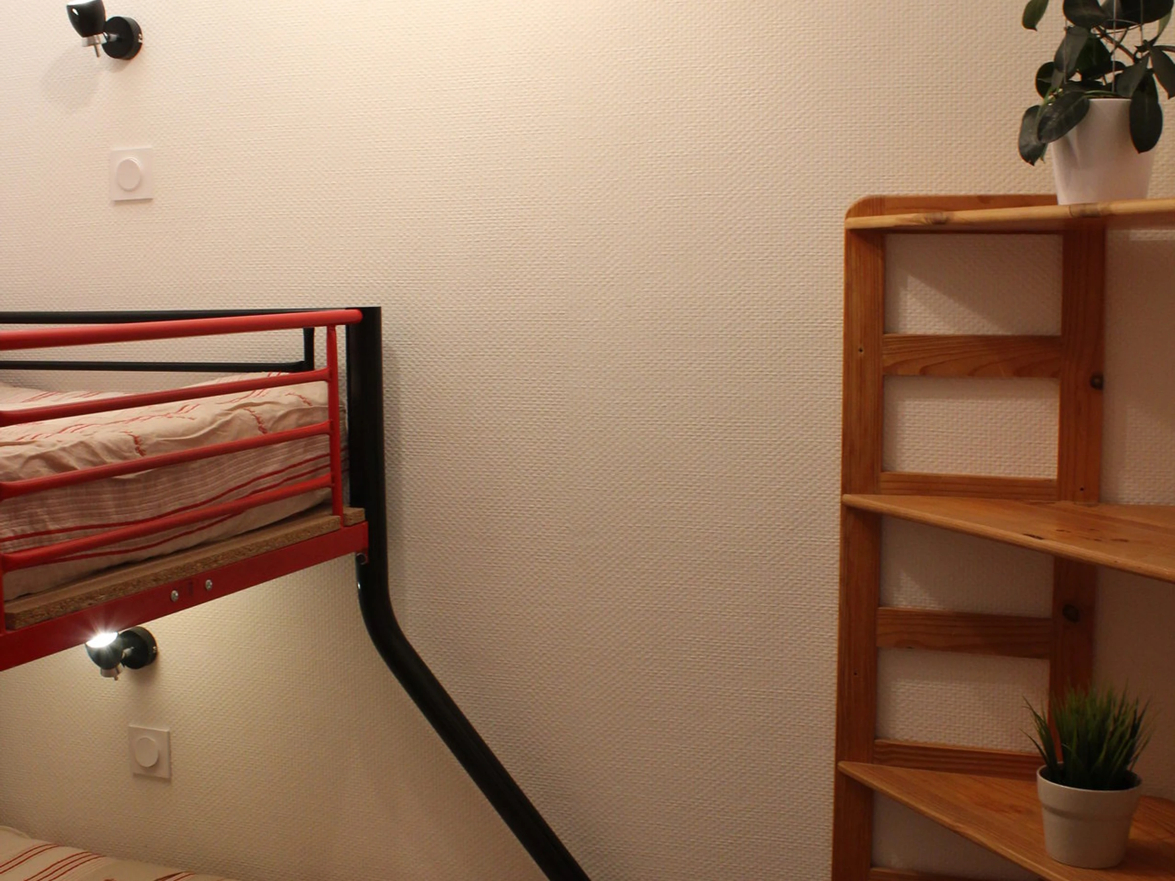 Chambre 1 lit avec un lit double superposé d'un lit simple et TV.