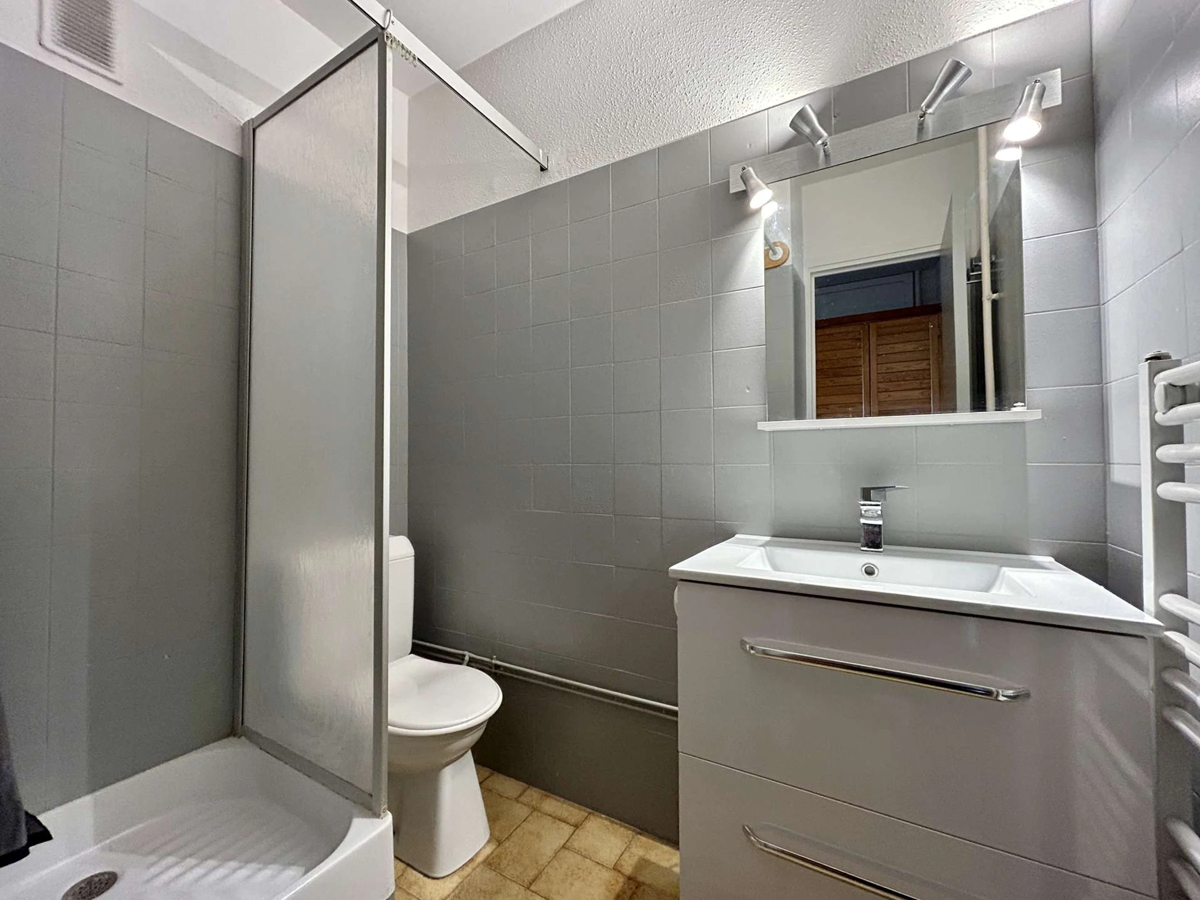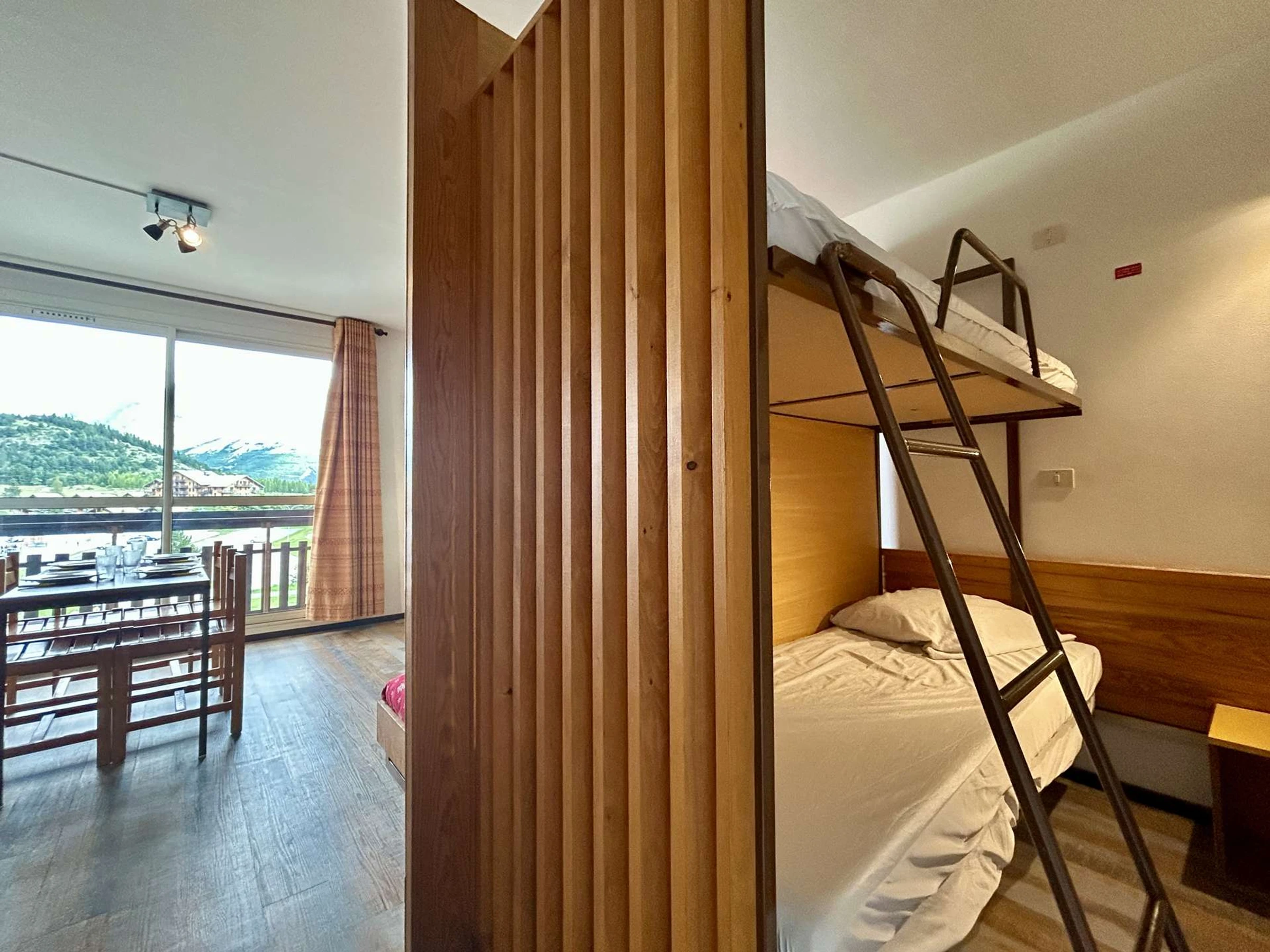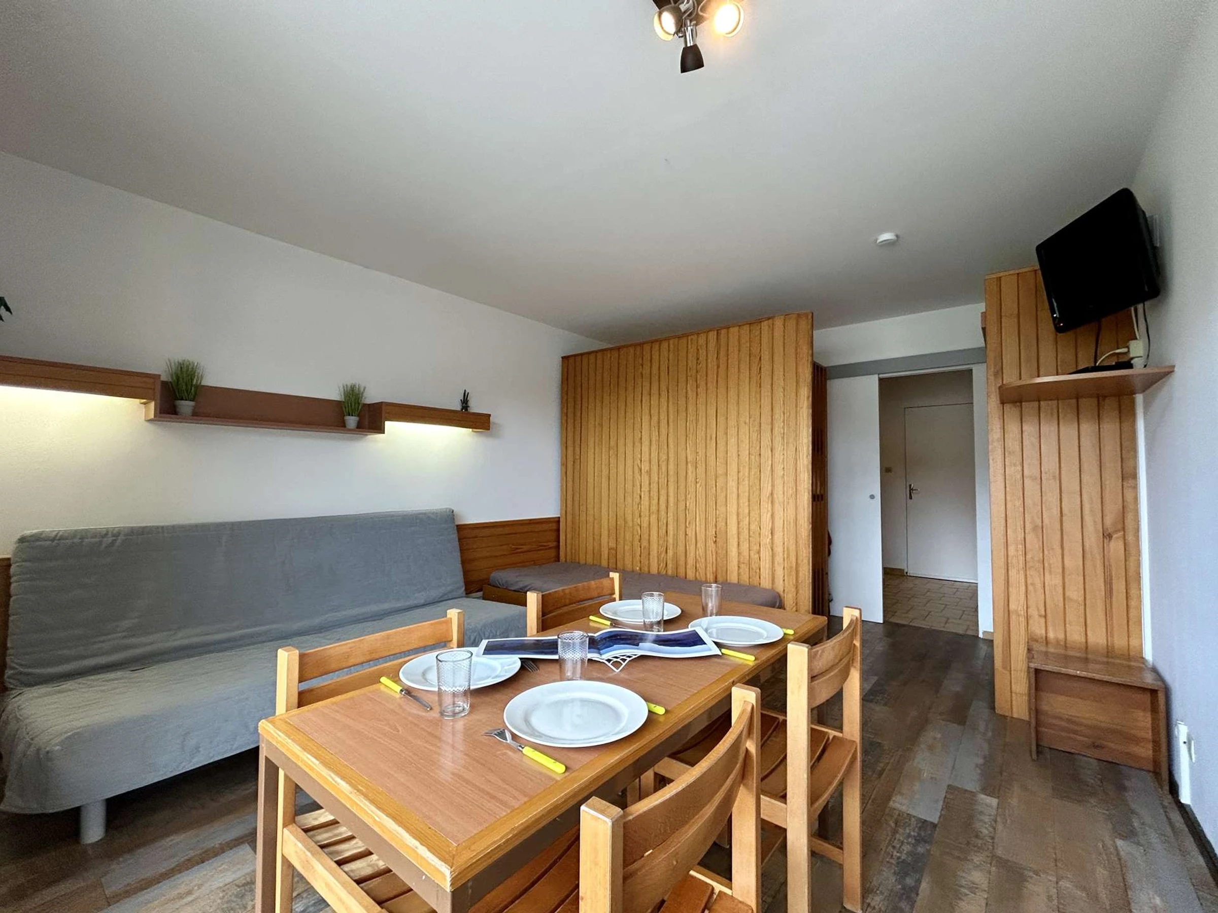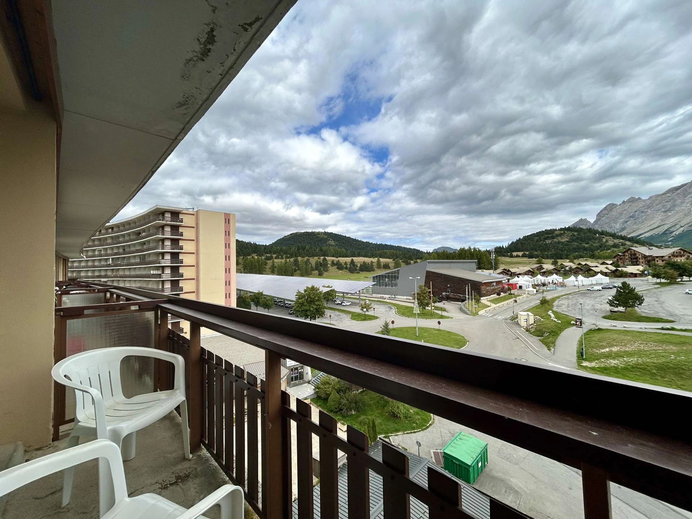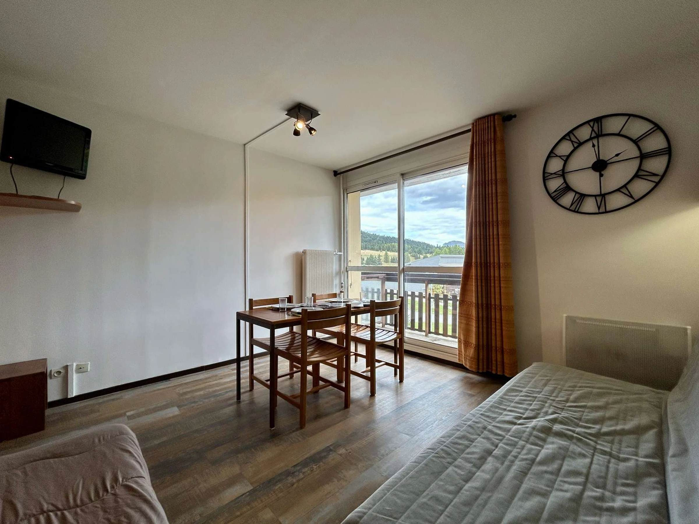 Ce studio offre une jolie vue exposé Est, à seulement 50m du télésiège Le Jas. Il est situé au 6ème étage de la résidence "Le Bois d'Aurouze" où de nombreux commerces s'y trouvent.