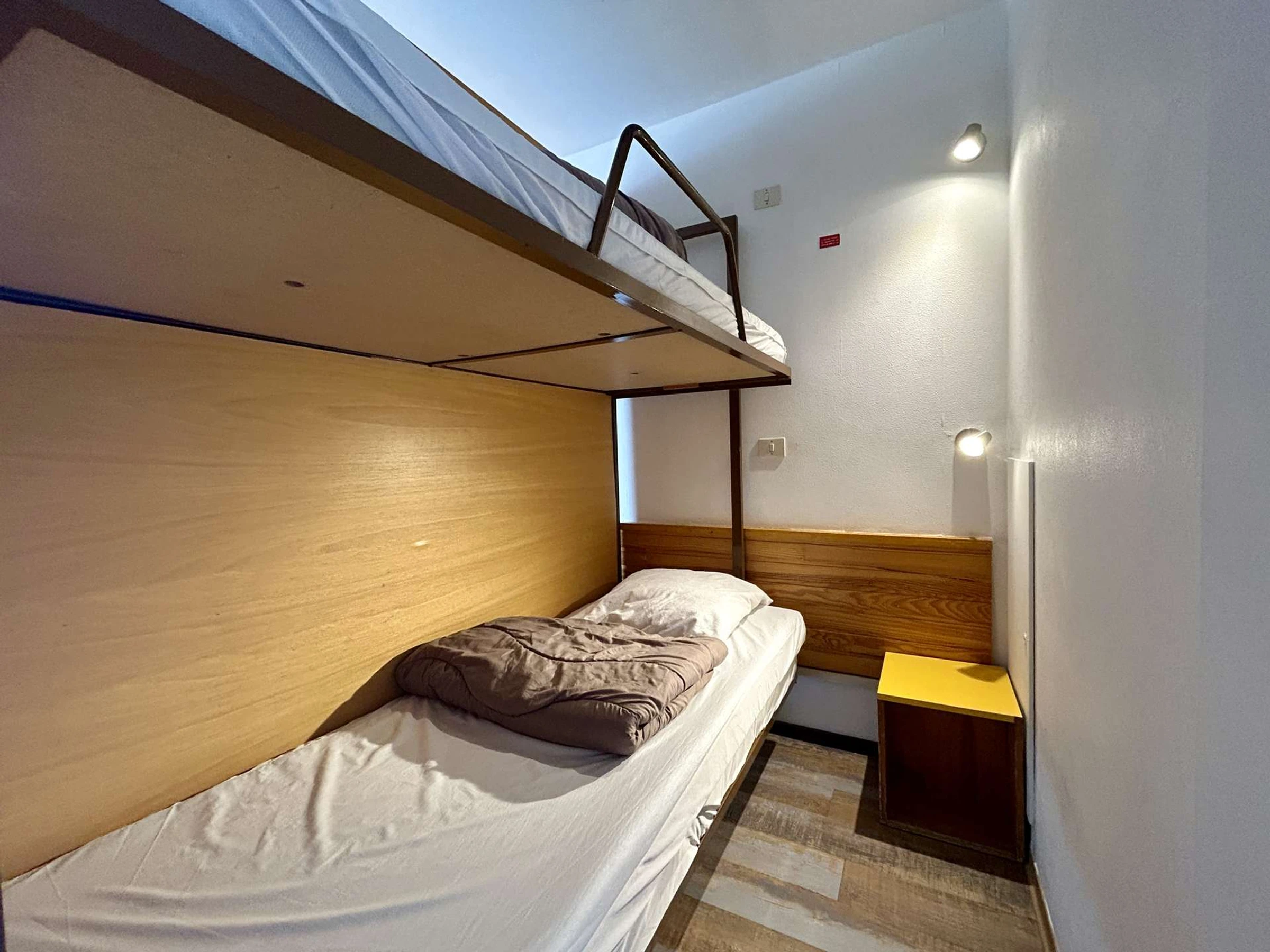 La pièce à vivre dispose d'un coin nuit avec lit superposés en 80x190 et un canapé clic-clac en 140x190 avec TV.