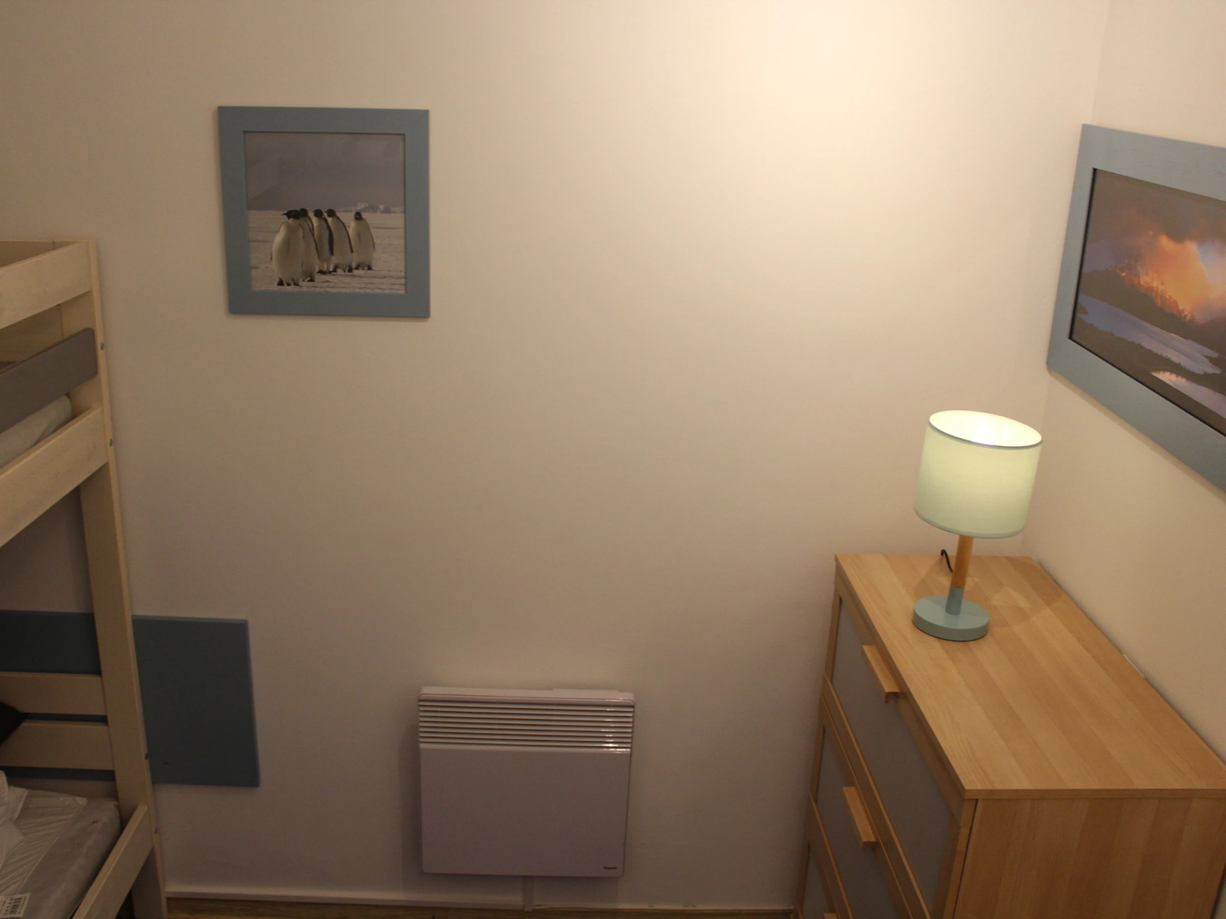 Chambre avec 2 lits superposés + 1 lit tiroir (3 couchages individuels).
