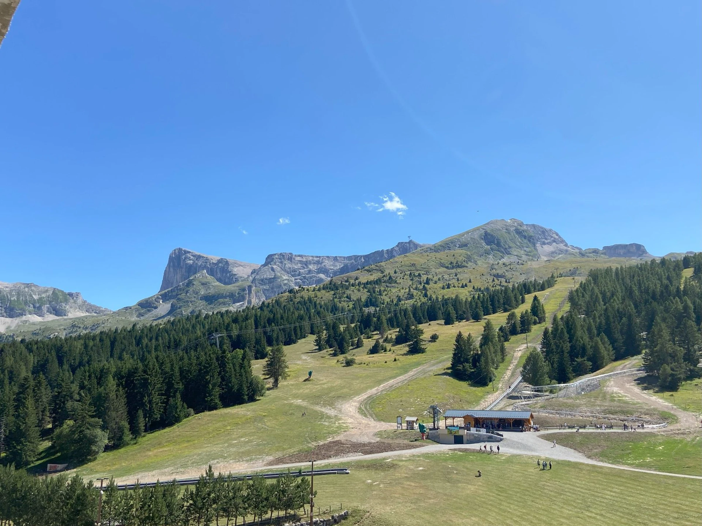 Au sud, très belle vue sur le domaine skiable et le Pic de Bure. Côté vallée, vue sur la montagne de Faraud.