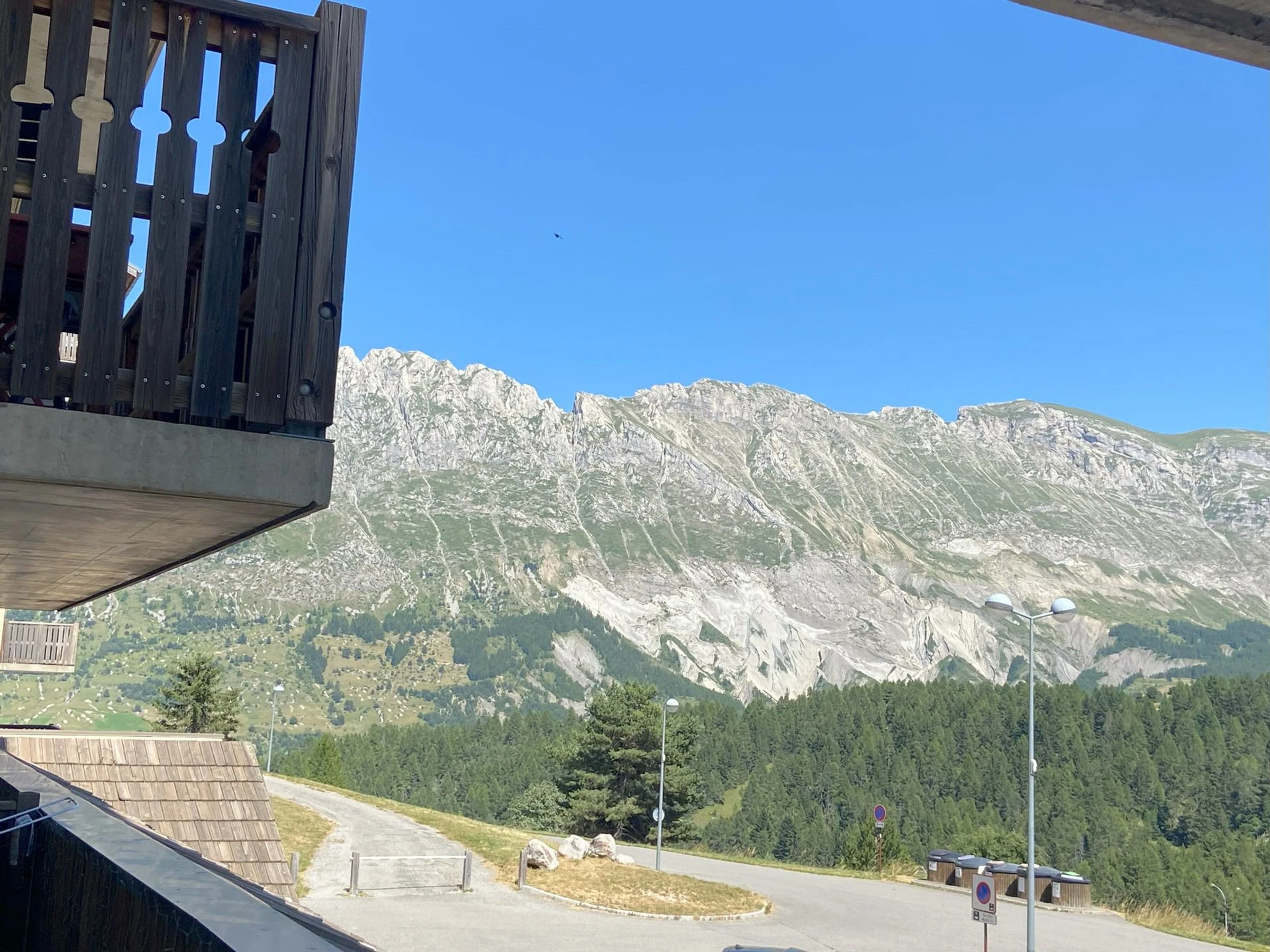 Balcon côté Sud avec vue pic de Bure et domaine skiable.