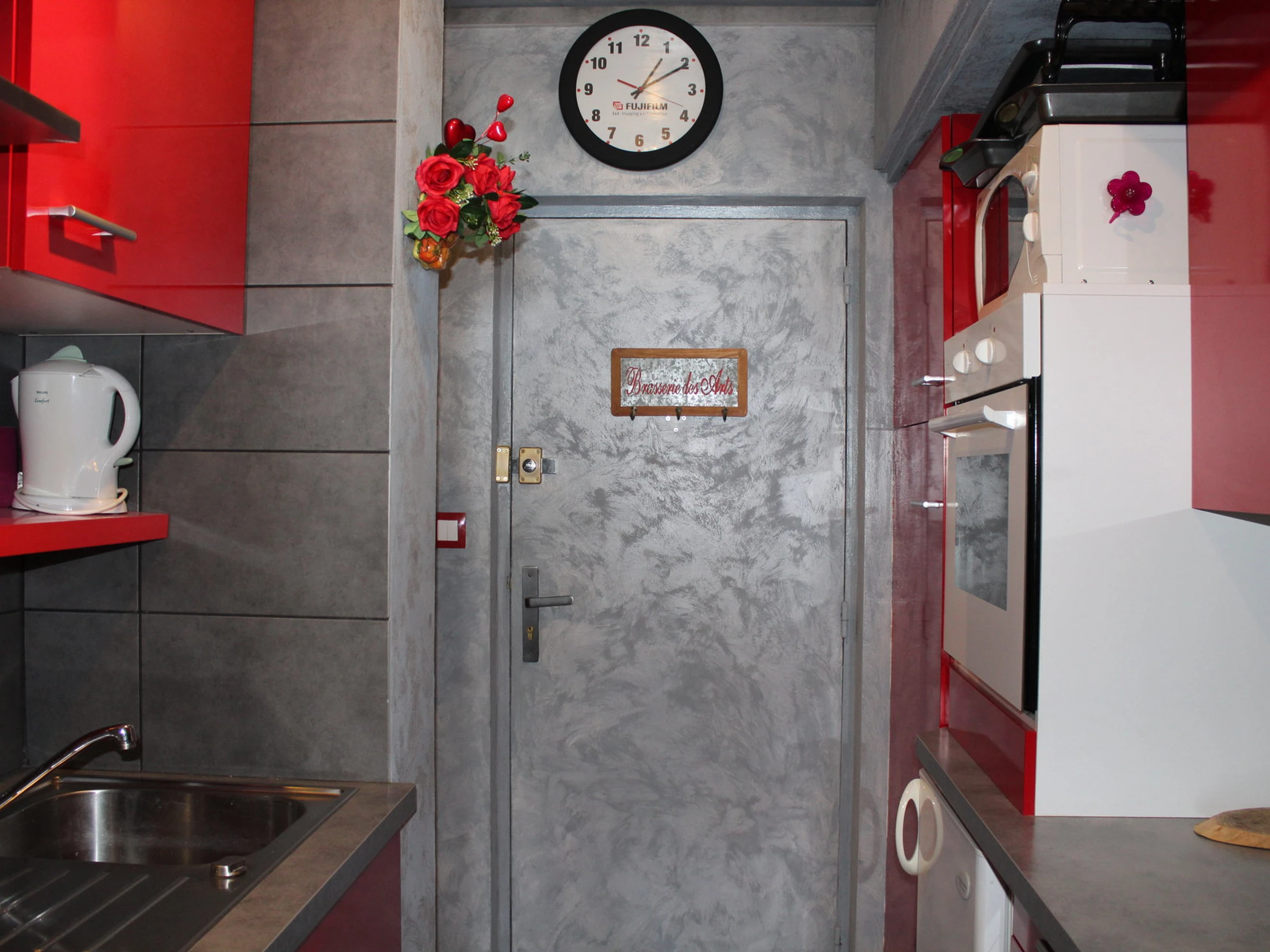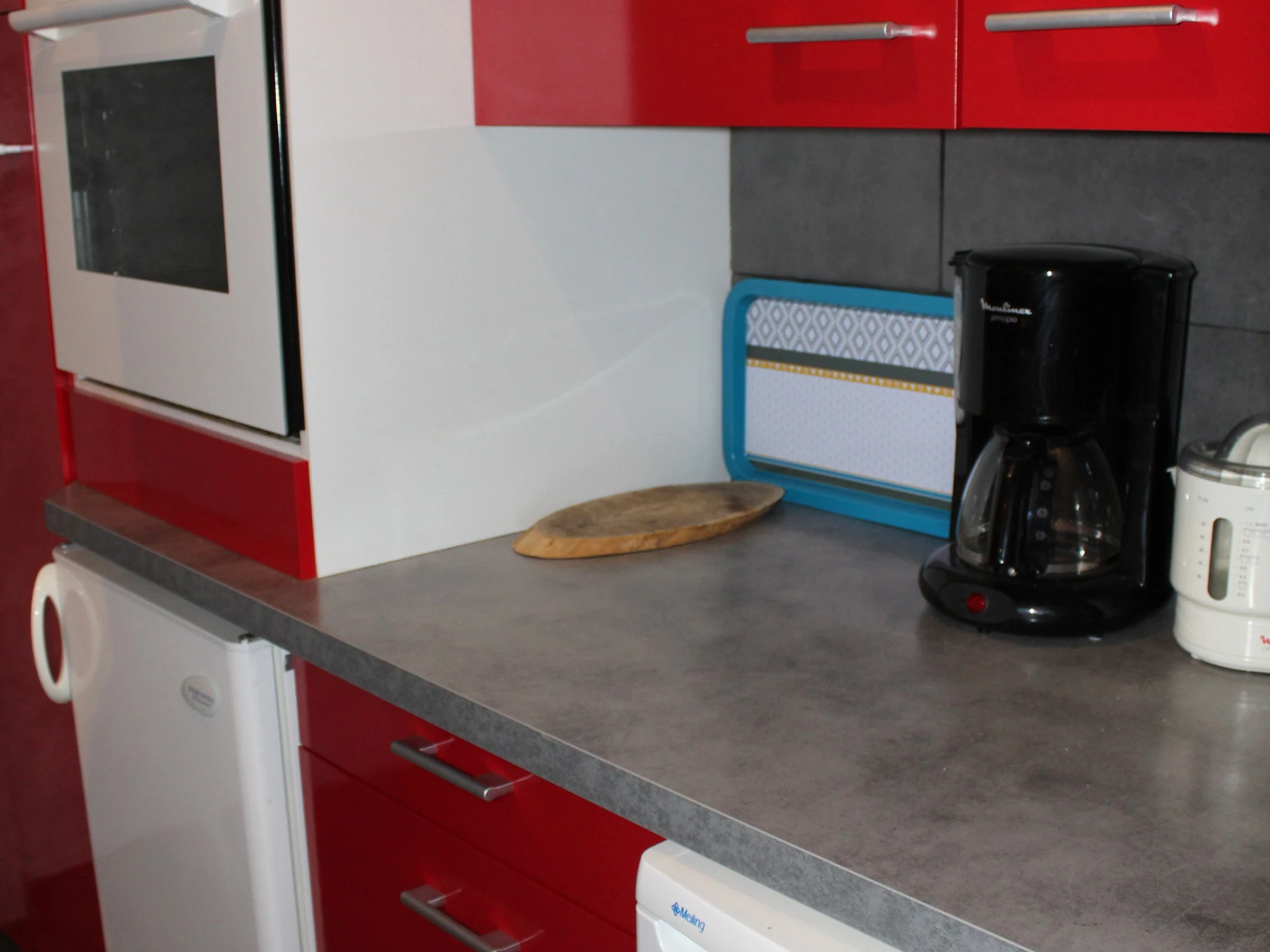 Kitchenette équipée Four, micro ondes, congélateur, lave vaisselle.