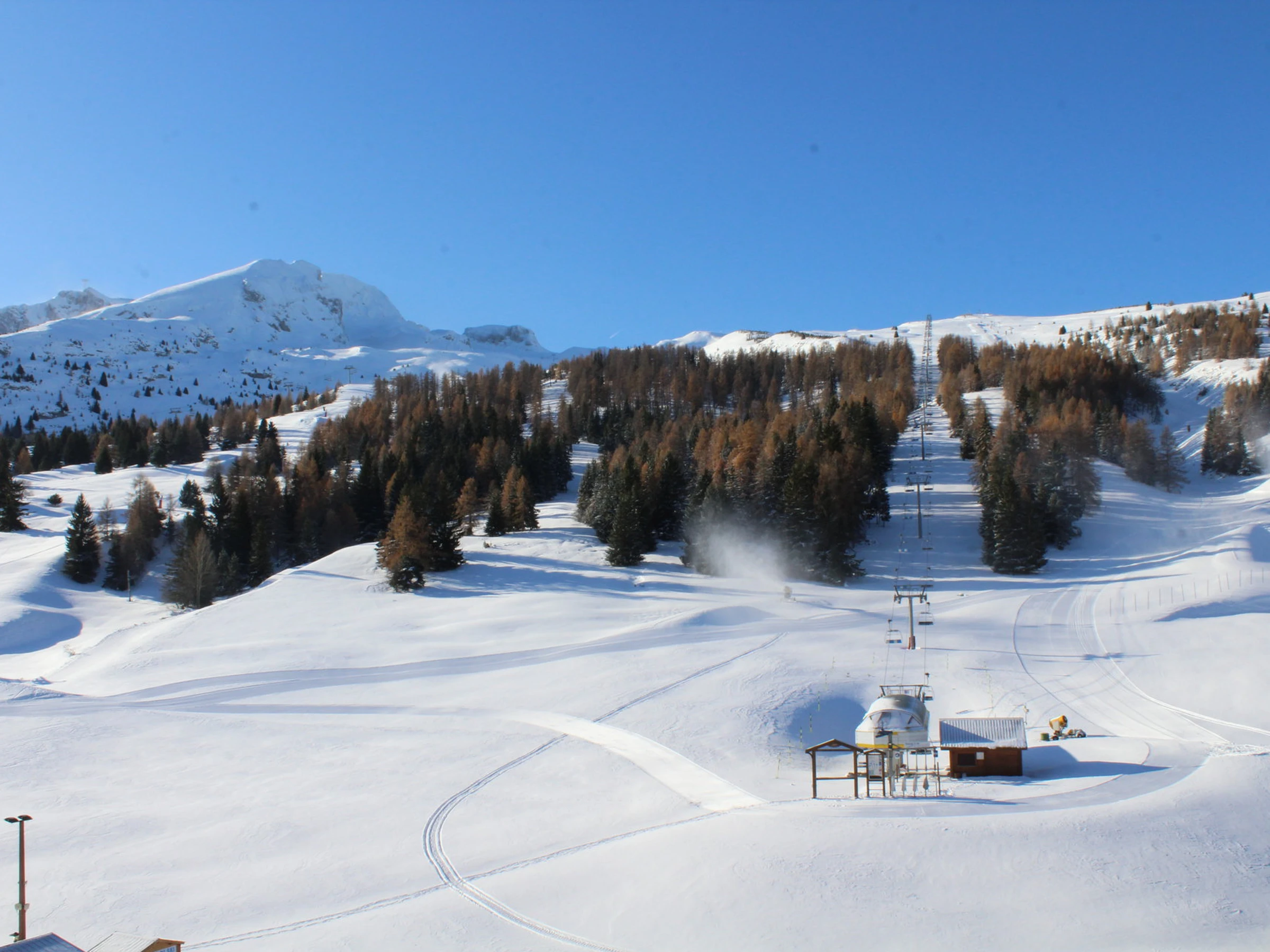 Au sud, très belle vue sur le domaine skiable et le Pic de Bure. Côté vallée, vue sur la montagne de Faraud.