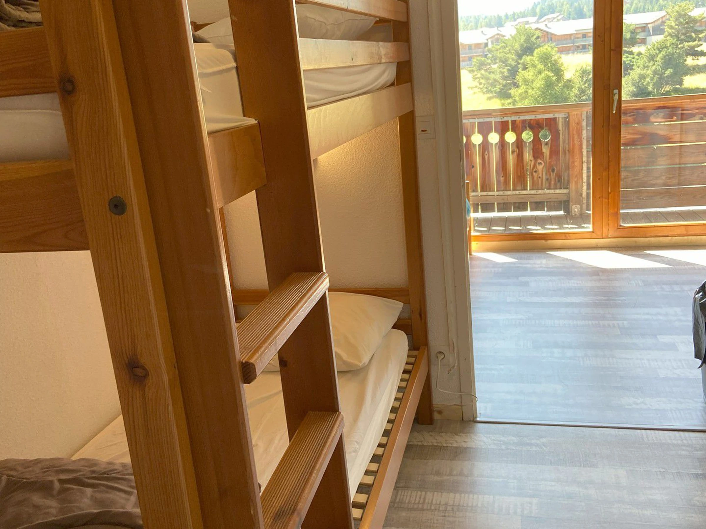 Séjour avec lit gigogne 2 personnes. Coin montagne avec lits superposés. Chambre avec 1 lit deux personnes. Appartement équipé de couettes (possibilité de location de housse de couette).
