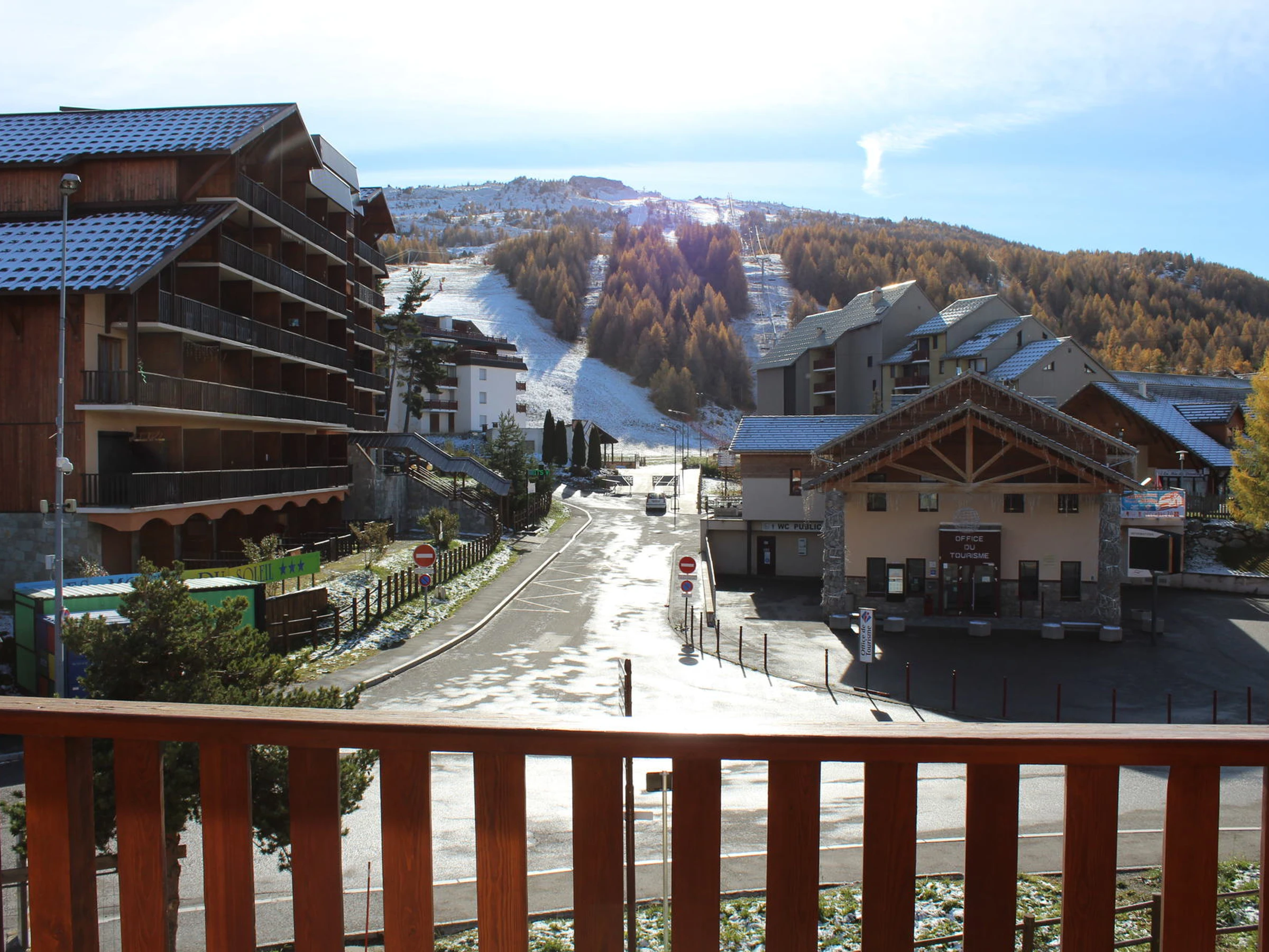 Exposition Sud. Vue sur domaine skiable et centre station.