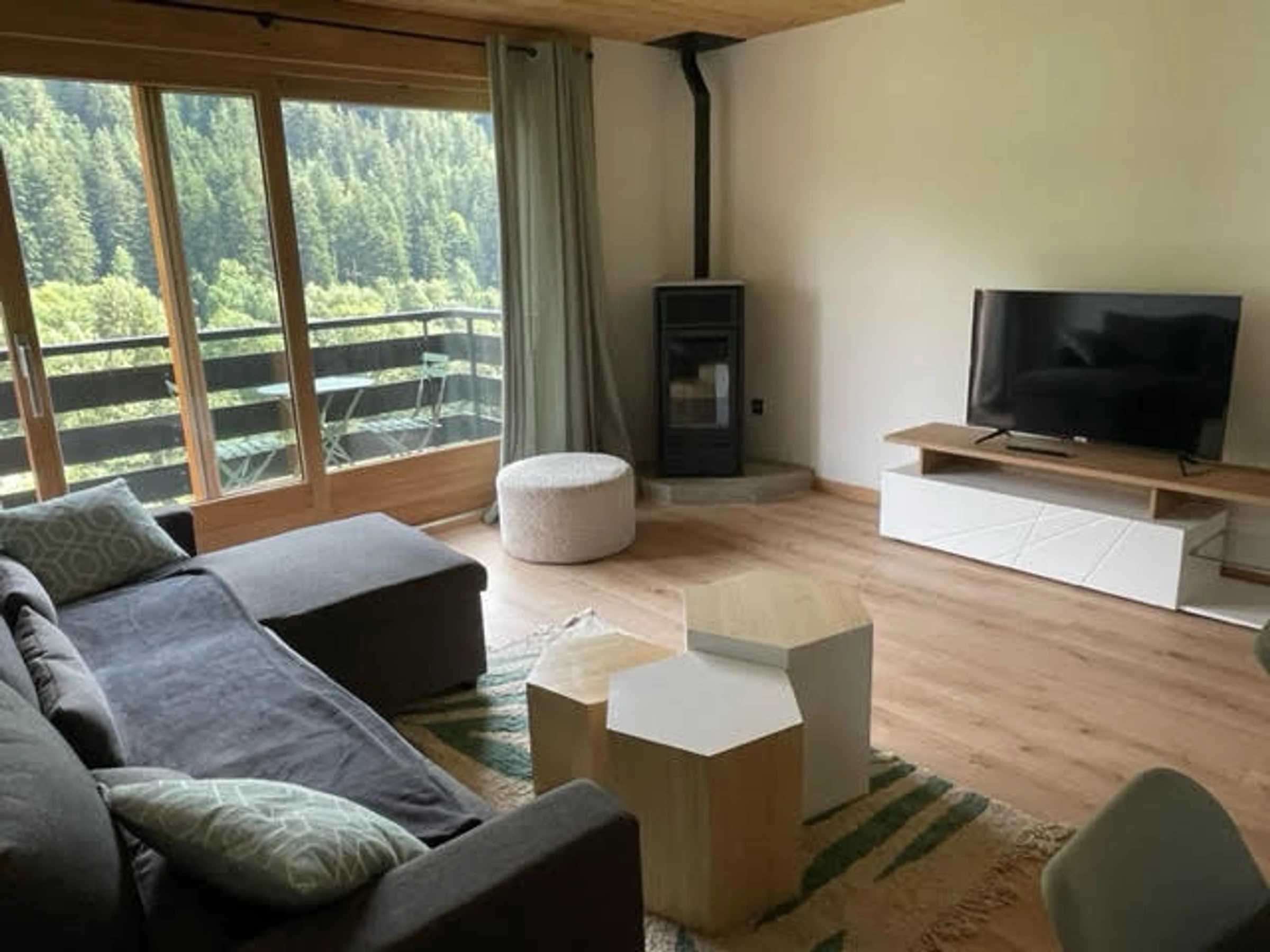 "Tavaillons n°14" est un appartement rénové de 40 m² pour 2 adultes et 2 enfants à l'entrée du village du Grand-Bornand.