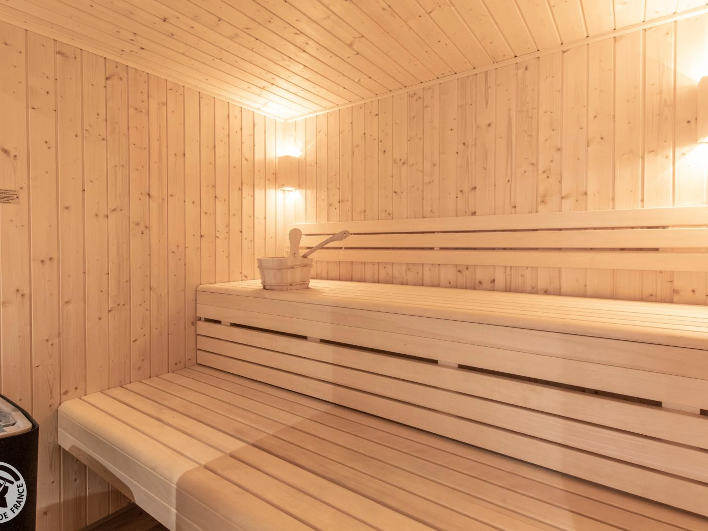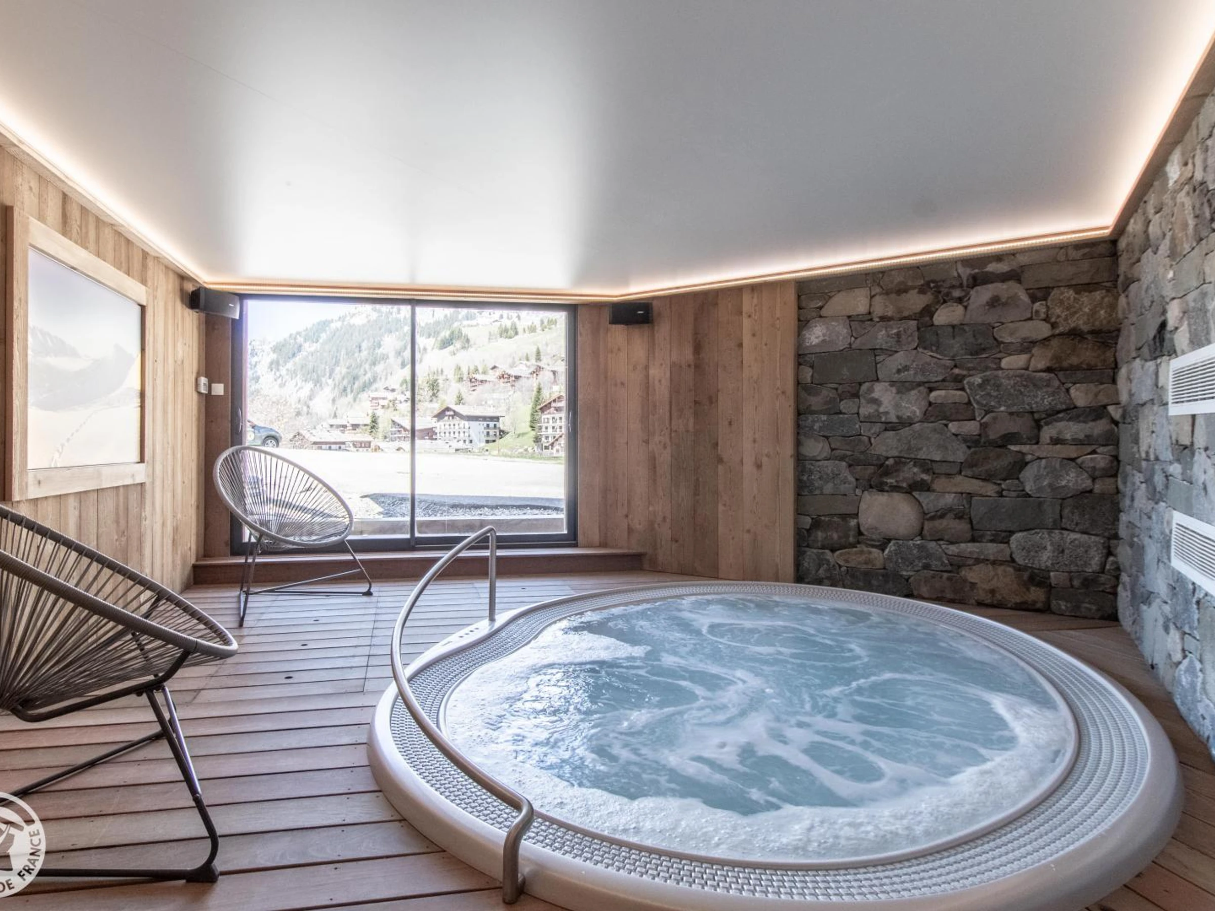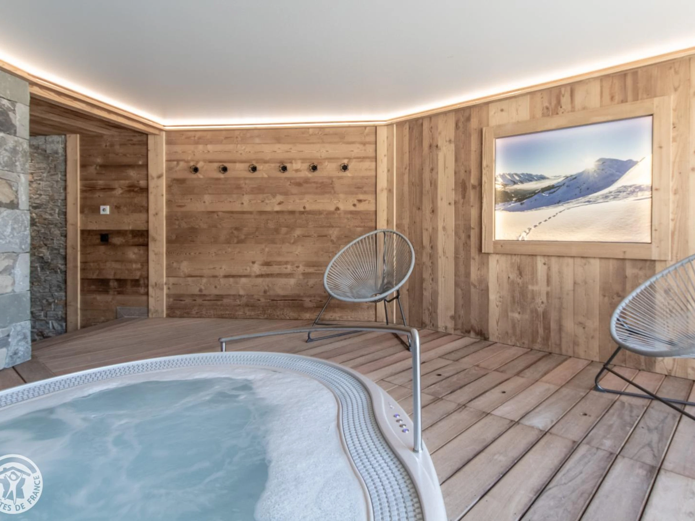Le petit + : un espace bien être avec Sauna et Spa à débordement pour le chalet.