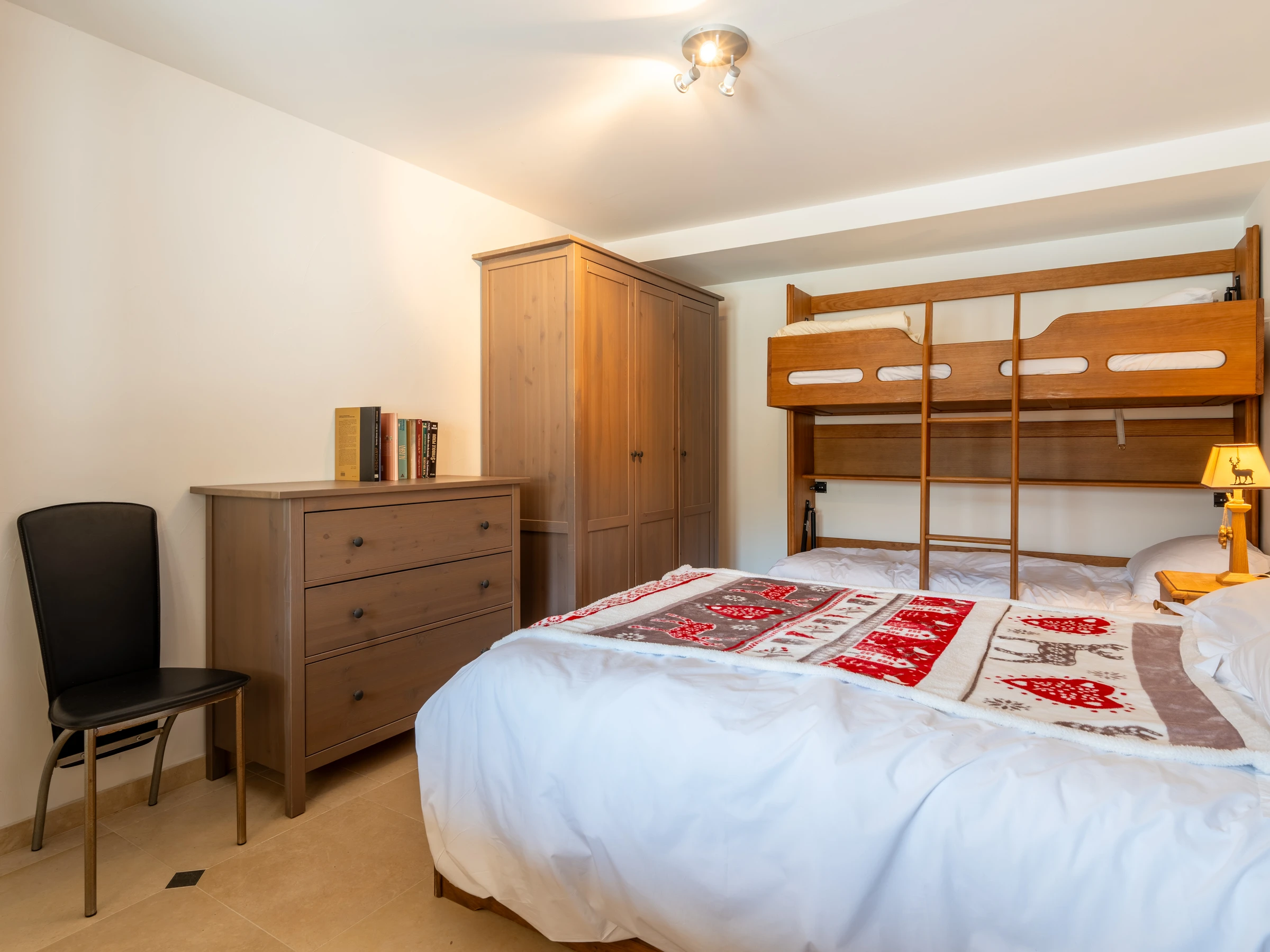 Chambre 1: 1 lit(s) 2 personnes, 80 cm 2 lits superposés (2 x 1 personne), 1 lit rabattable 2 personnes