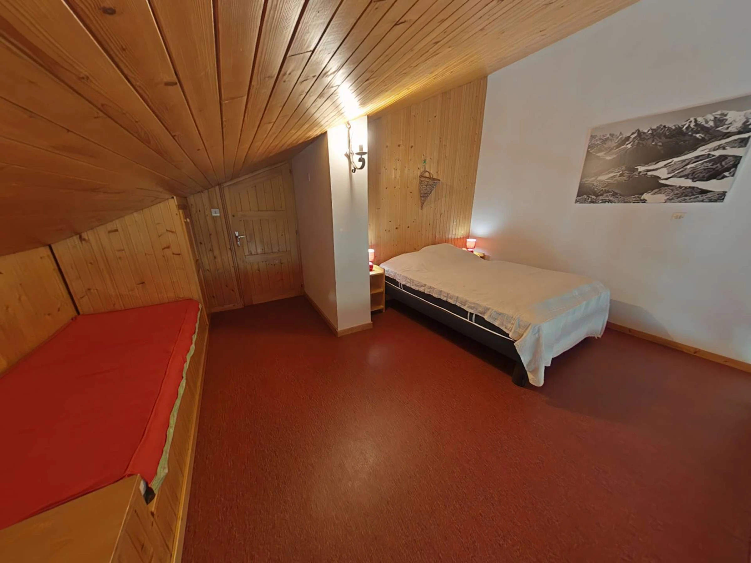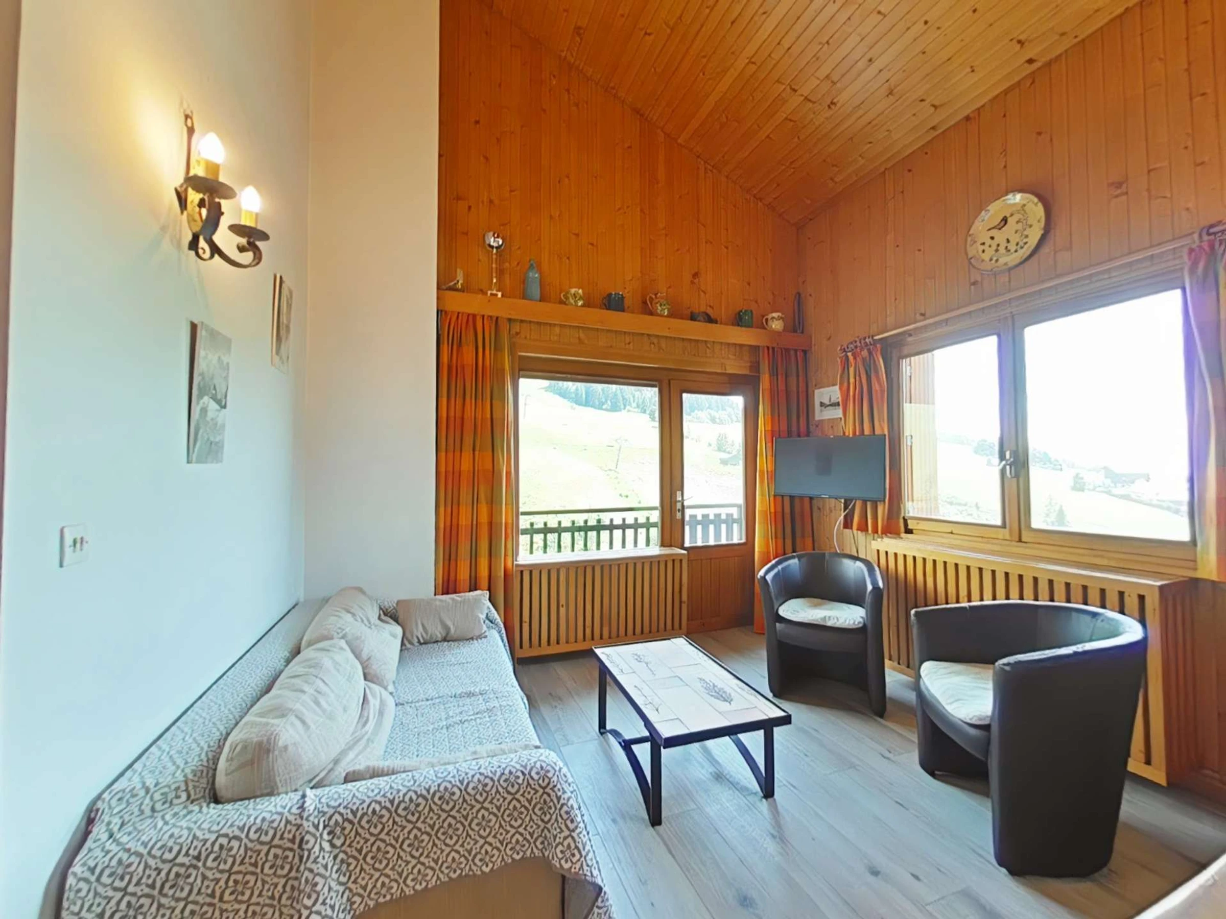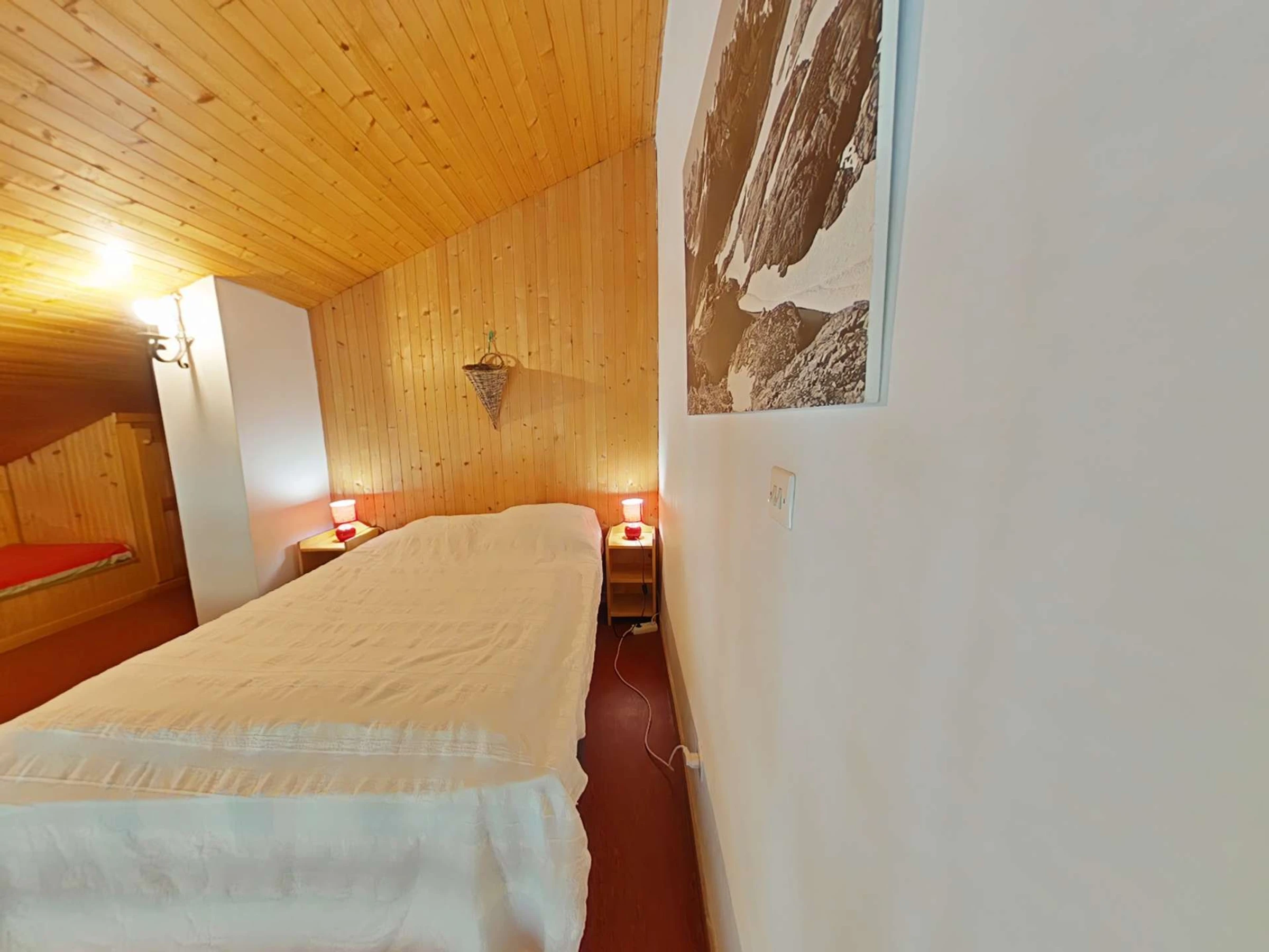 Cet appartement de vacances situé au 1er étage, comprend un séjour avec un canapé d'agrément et télévision, un coin cuisine équipé avec lave-vaisselle, 1 chambre avec un lit 2 personnes (160 cm), 1 chambre avec 1 lit tiroir (2 couchages), une salle d'eau avec lave-linge et un WC séparé. A l'étage, une grande mezzanine avec un lit 2 personnes , un balcon sud avec vue sur les pistes de ski. Balcon Sud avec vue sur le domaine skiable. Casier à skis.