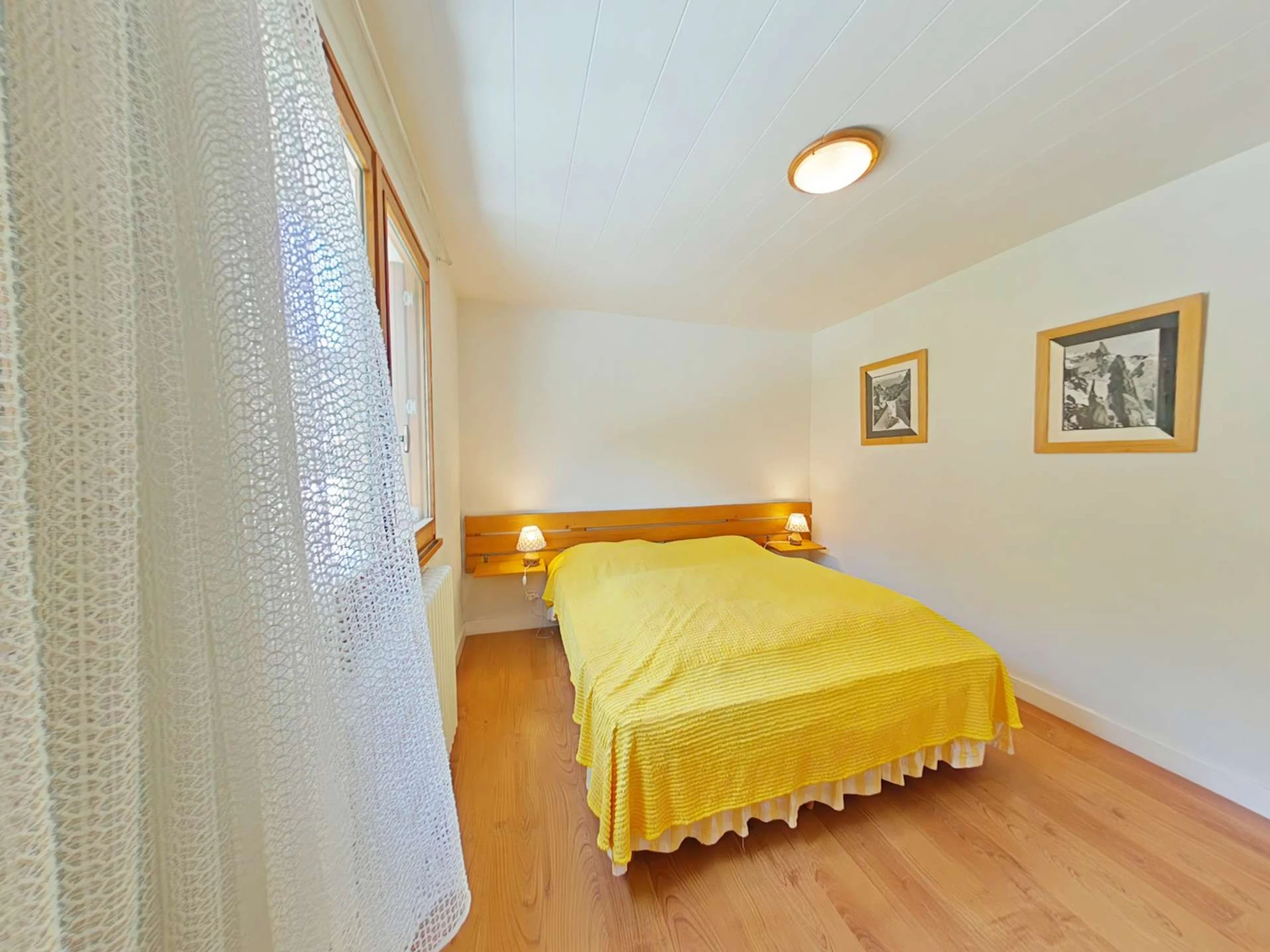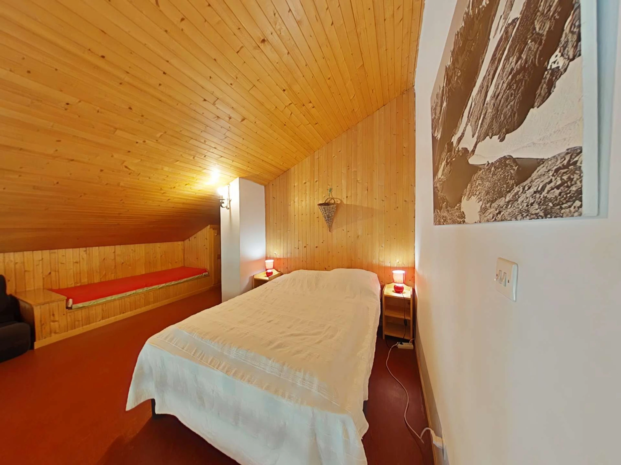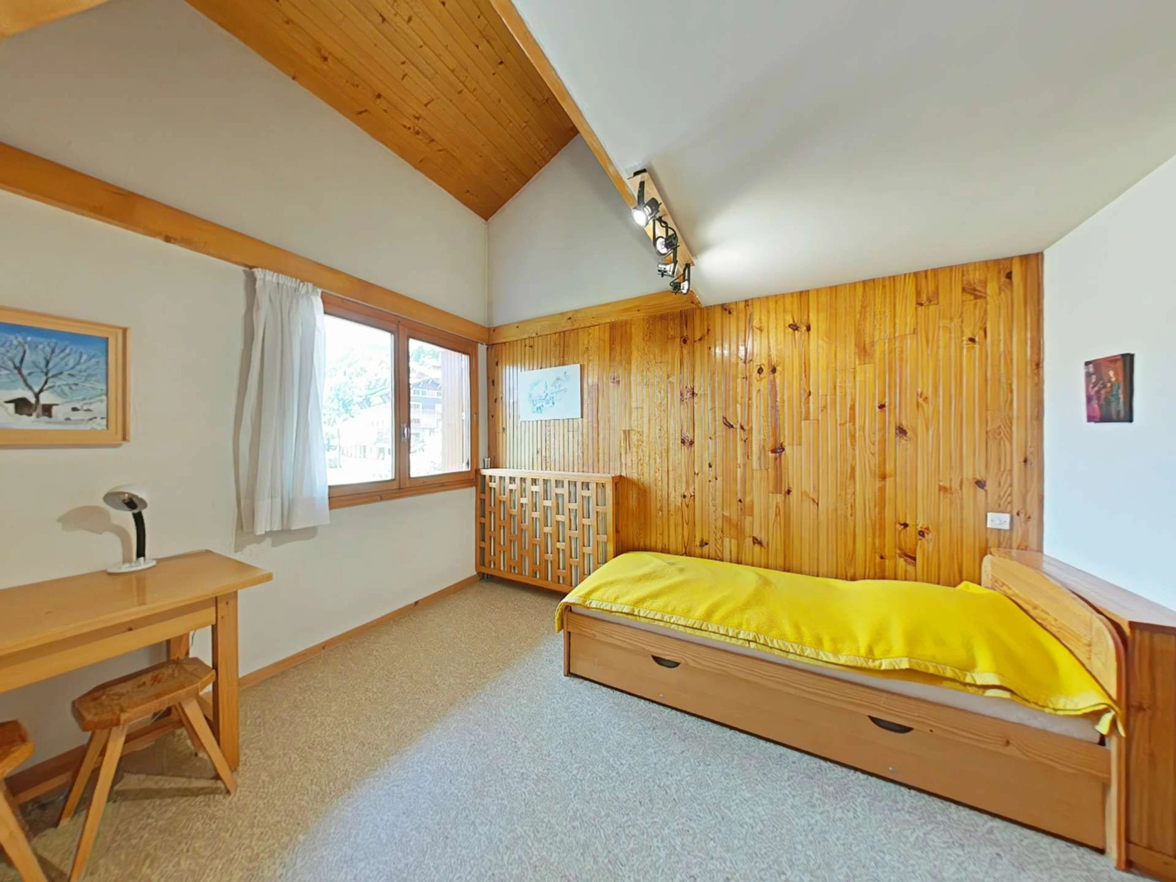 Cet appartement de vacances situé au 1er étage, comprend un séjour avec un canapé d'agrément et télévision, un coin cuisine équipé avec lave-vaisselle, 1 chambre avec un lit 2 personnes (160 cm), 1 chambre avec 1 lit tiroir (2 couchages), une salle d'eau avec lave-linge et un WC séparé. A l'étage, une grande mezzanine avec un lit 2 personnes , un balcon sud avec vue sur les pistes de ski. Balcon Sud avec vue sur le domaine skiable. Casier à skis.