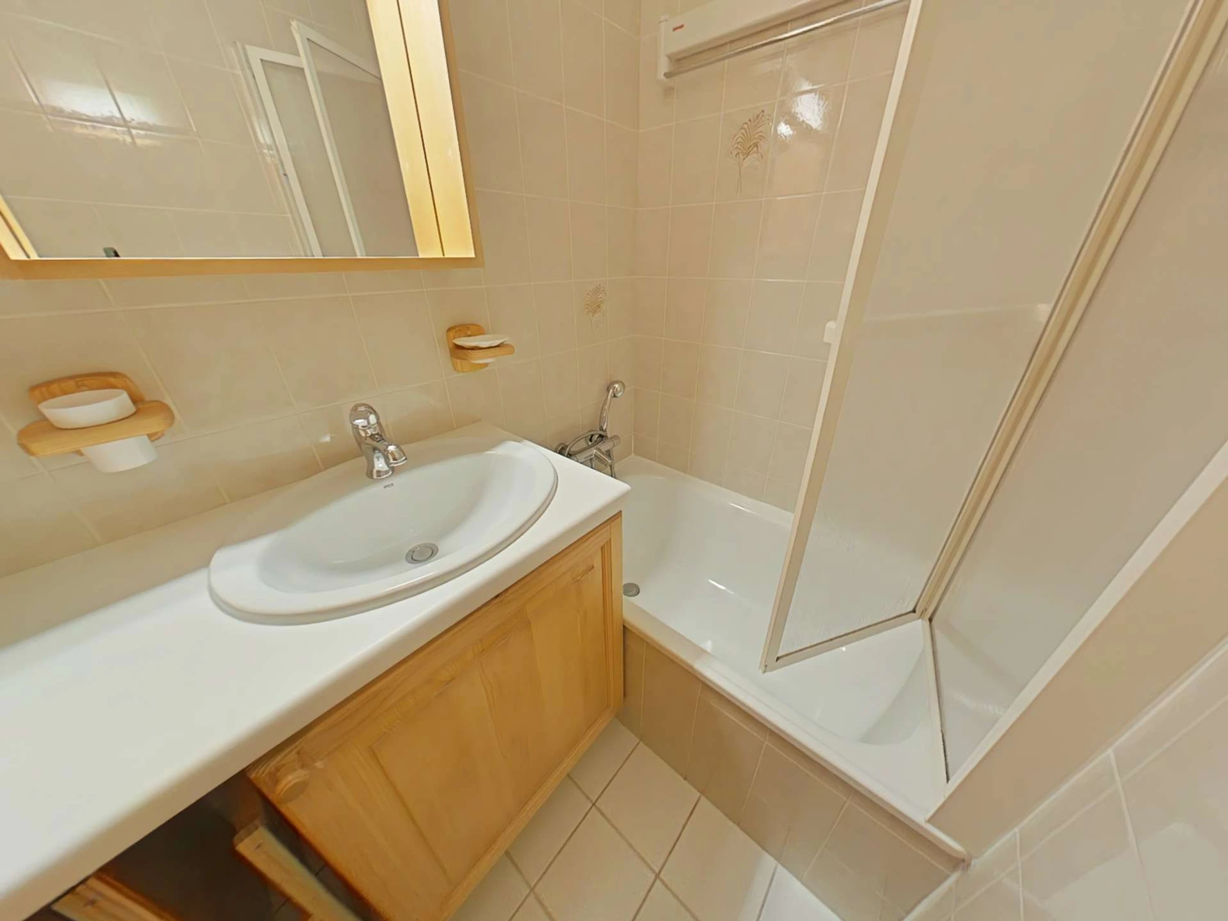 Cet appartement de vacances situé au 1er étage de la résidence se compose d'une entrée équipée d'un canapé convertible 2 personnes + un lit superposé pour une personne. Un séjour avec un canapé d'agrément et télévision donnant sur balcon orienté Ouest, un coin cuisine équipé avec lave-vaisselle et lave-linge, une chambre avec un lit 2 personnes, une salle de bain et un WC indépendant.
