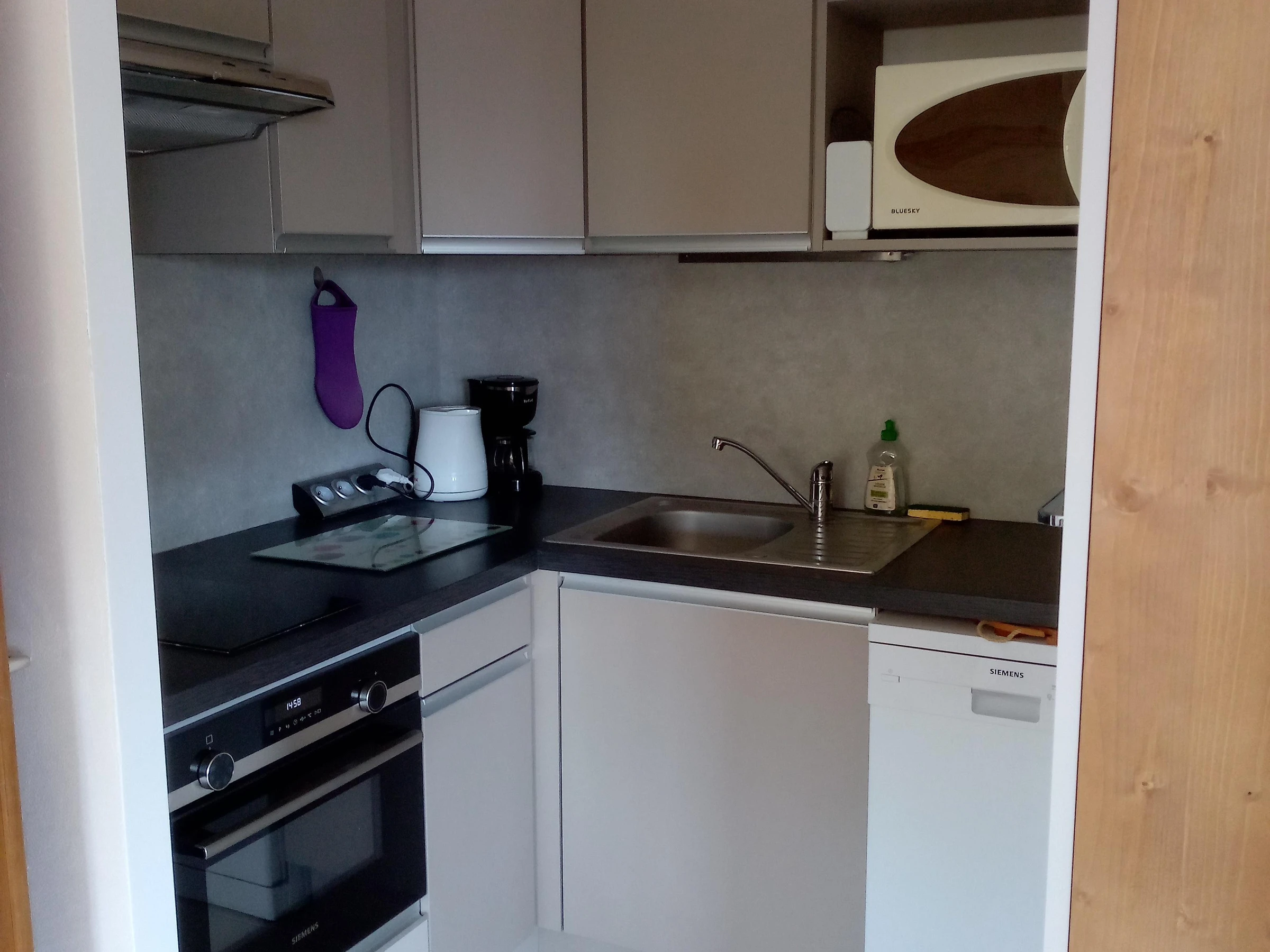 Equipement cuisine: 2 plaques de cuisson, mini-four, micro-ondes, lave-vaisselle, réfrigérateur :, appareil à raclette