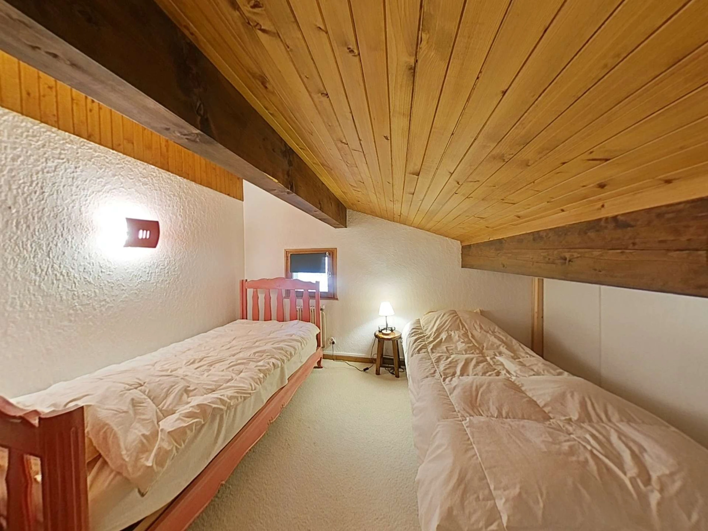 Cet appartement de vacances situé au 2ème étage, comprend un séjour avec télévision, un coin cuisine équipé avec lave-vaisselle, une chambre avec un lit double (2 lits en 90 rapprochés), une salle de bains, WC indépendant et, en partie duplex : une mezzanine avec un lit une personne, une chambre avec 2 lits une personne, une seconde chambre avec 2 lits une personne en 90 rapprochés, une salle d'eau.