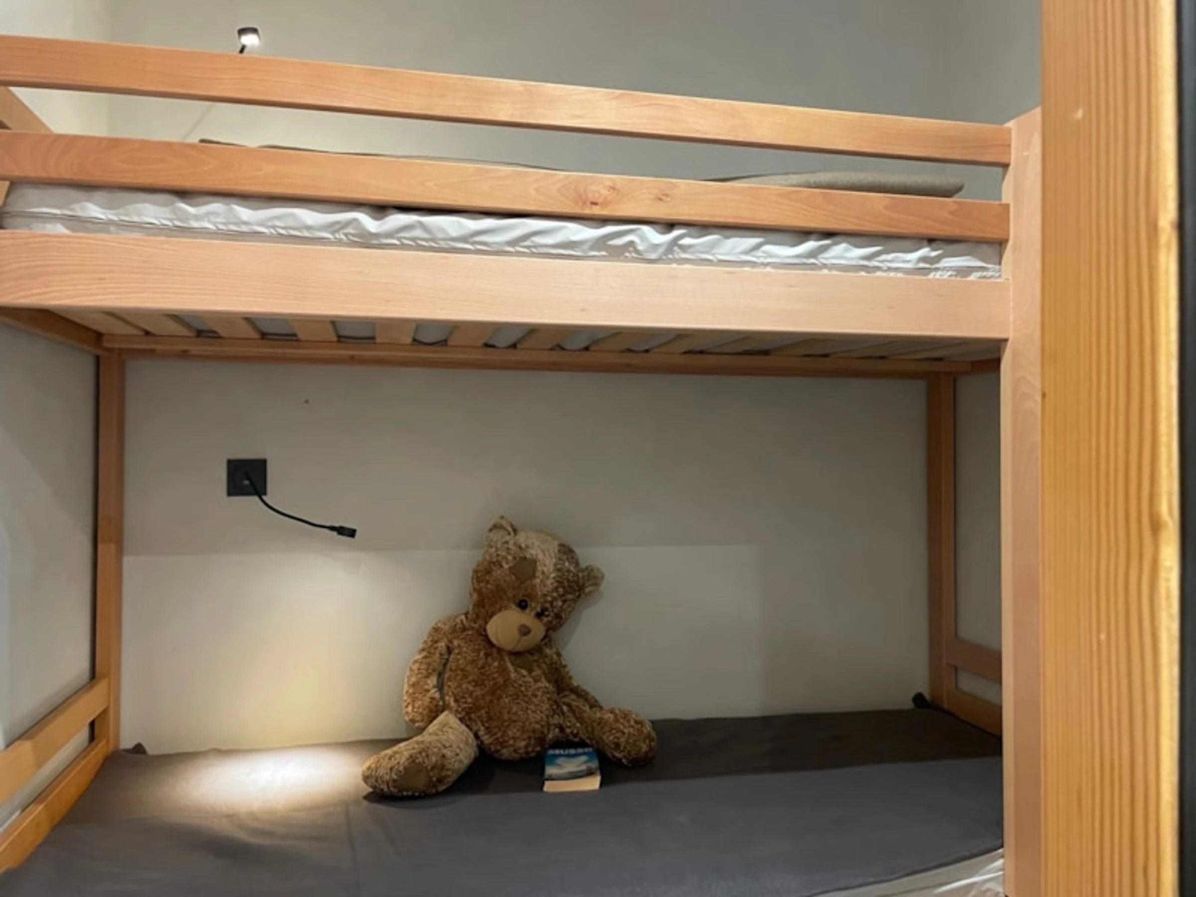 Coin montagne: coin montagne séparé du séjour par une porte, 2 lits superposés