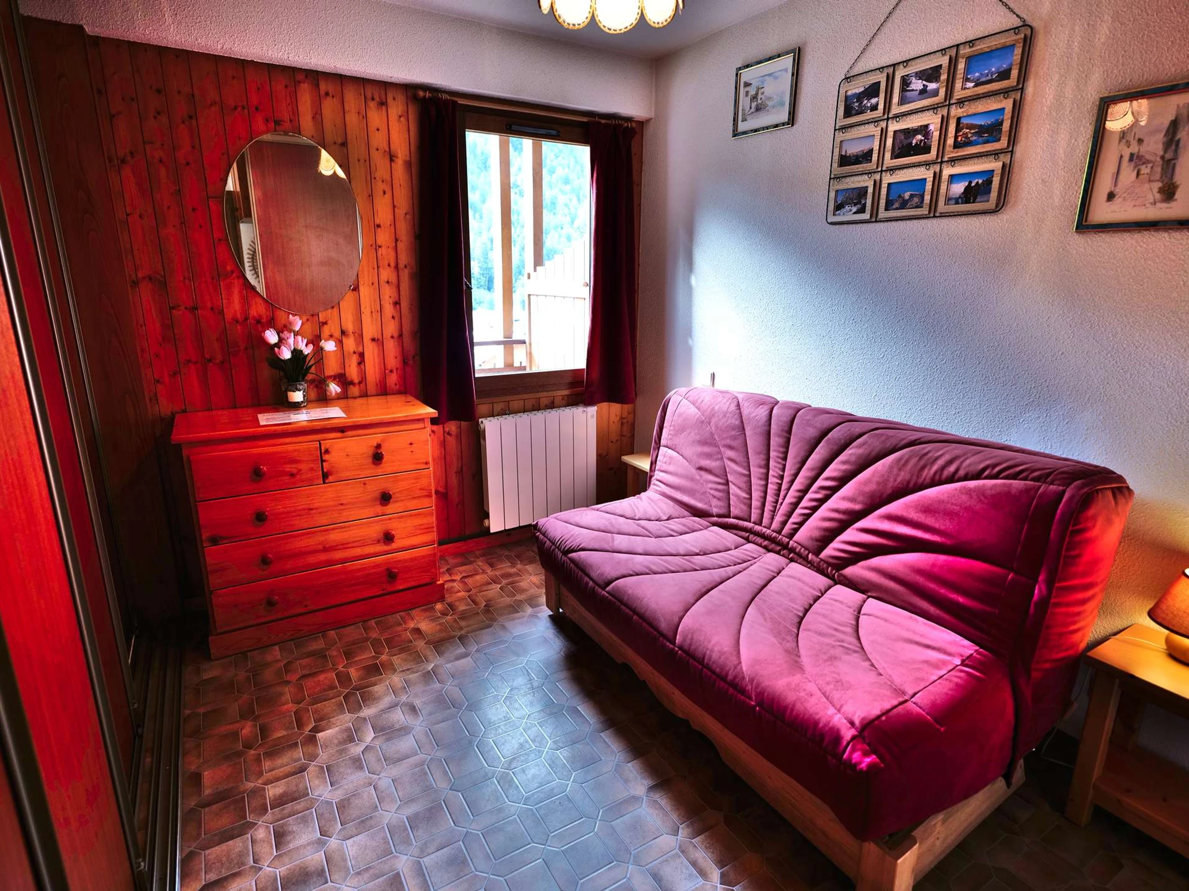 Coin nuit dans le séjour (chambre avec cloisons coulissantes) : canapé convertible