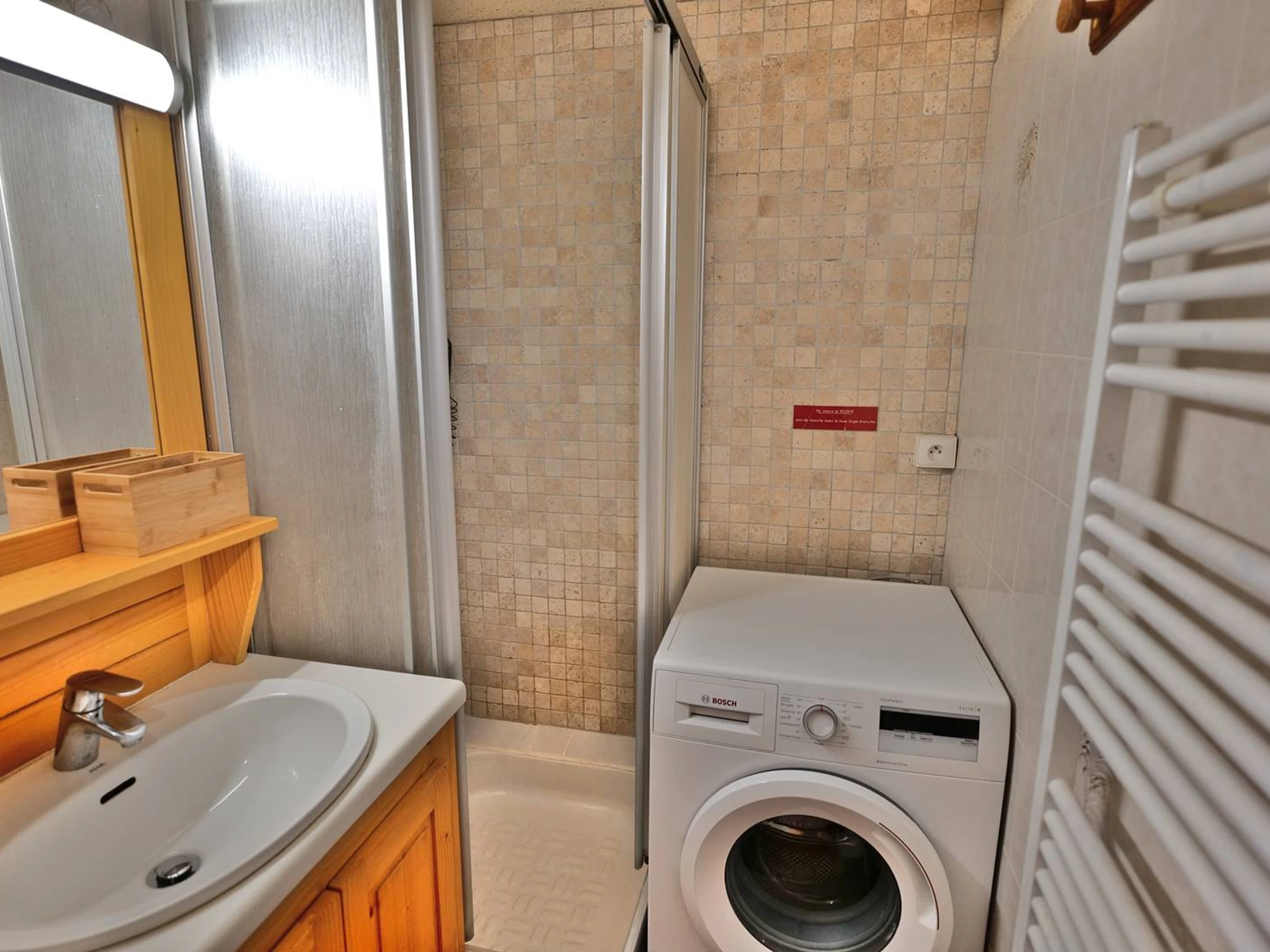 Salle d'eau avec douche et lave-linge