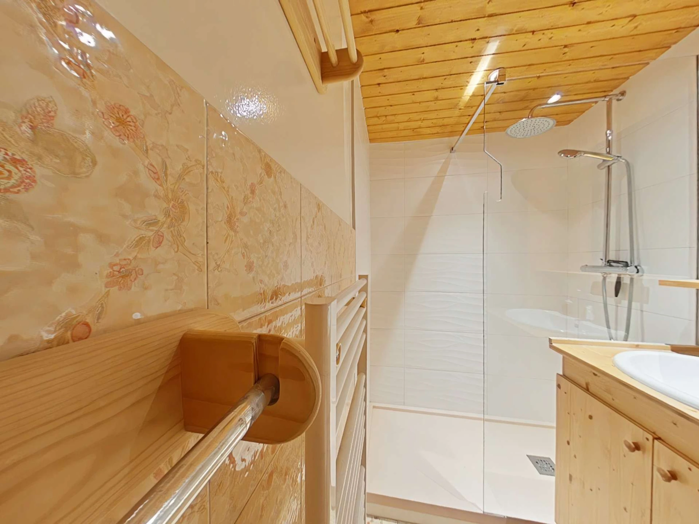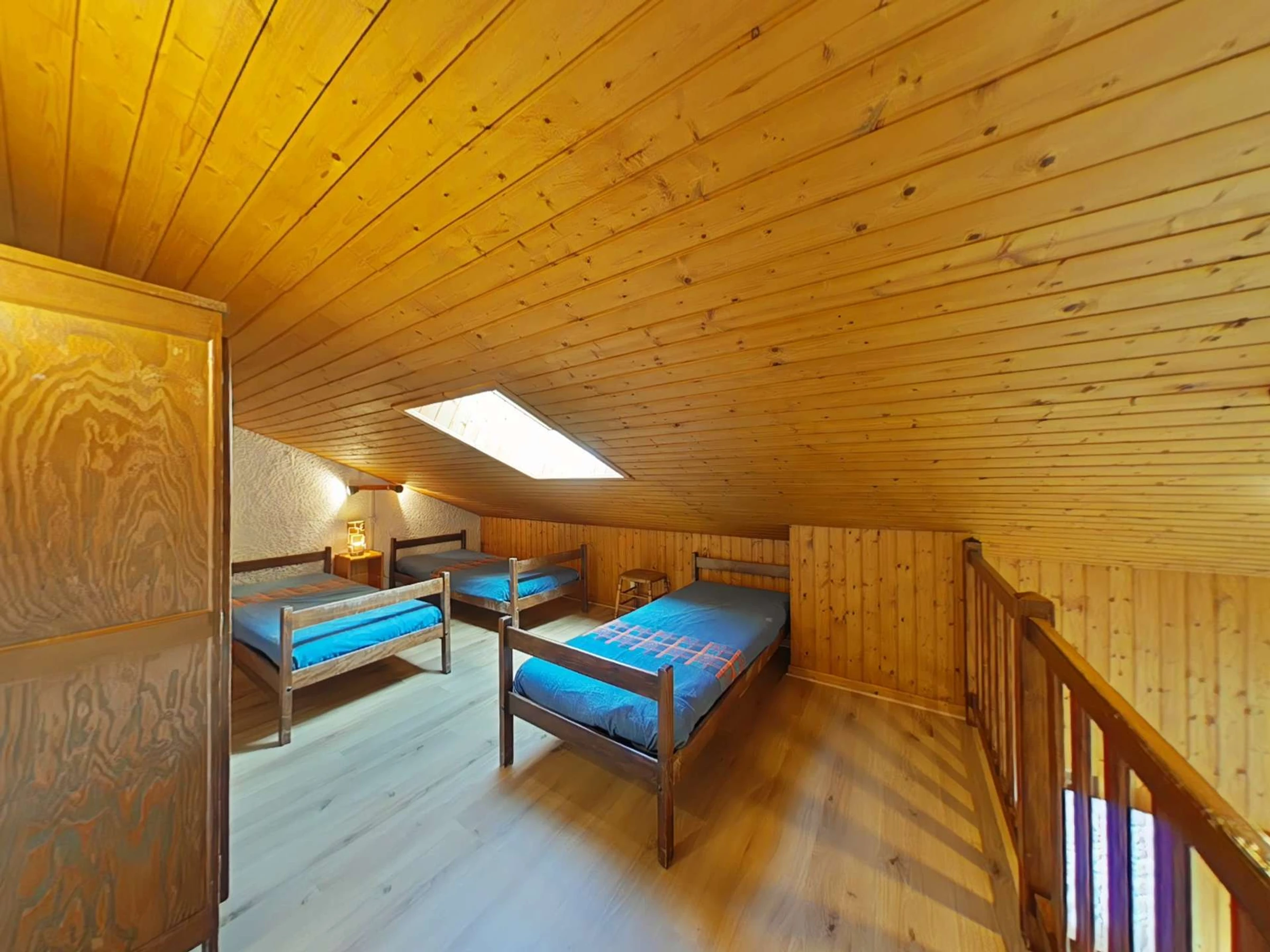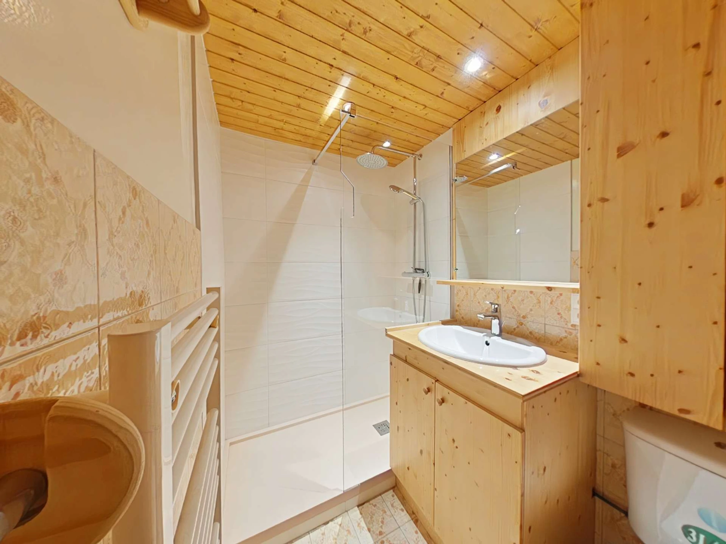 Cet appartement de vacances situé au 2éme étage, comprend un séjour avec canapé convertible 2 personnes, télévision et cheminée décorative, accès balcon Ouest avec vue sur la Tournette, un coin cuisine équipé avec lave-vaisselle, 1 chambre avec 1 lit 2 personnes et une salle d'eau avec WC. A l'étage, une mezzanine avec 3 lits 1 personne avec placard de rangement.