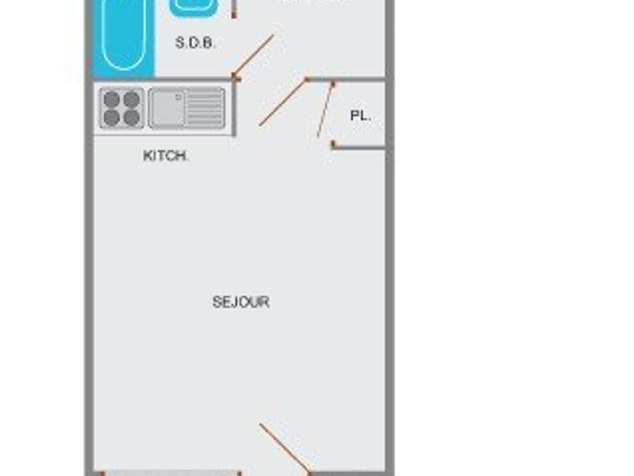 Cet appartement de vacances, situé en rez de jardin (1 étage à descendre) comprend un séjour avec un canapé convertible deux places et télévision, un coin cuisine équipé, un coin nuit avec deux lits superposés, une salle de bains et un WC indépendant.