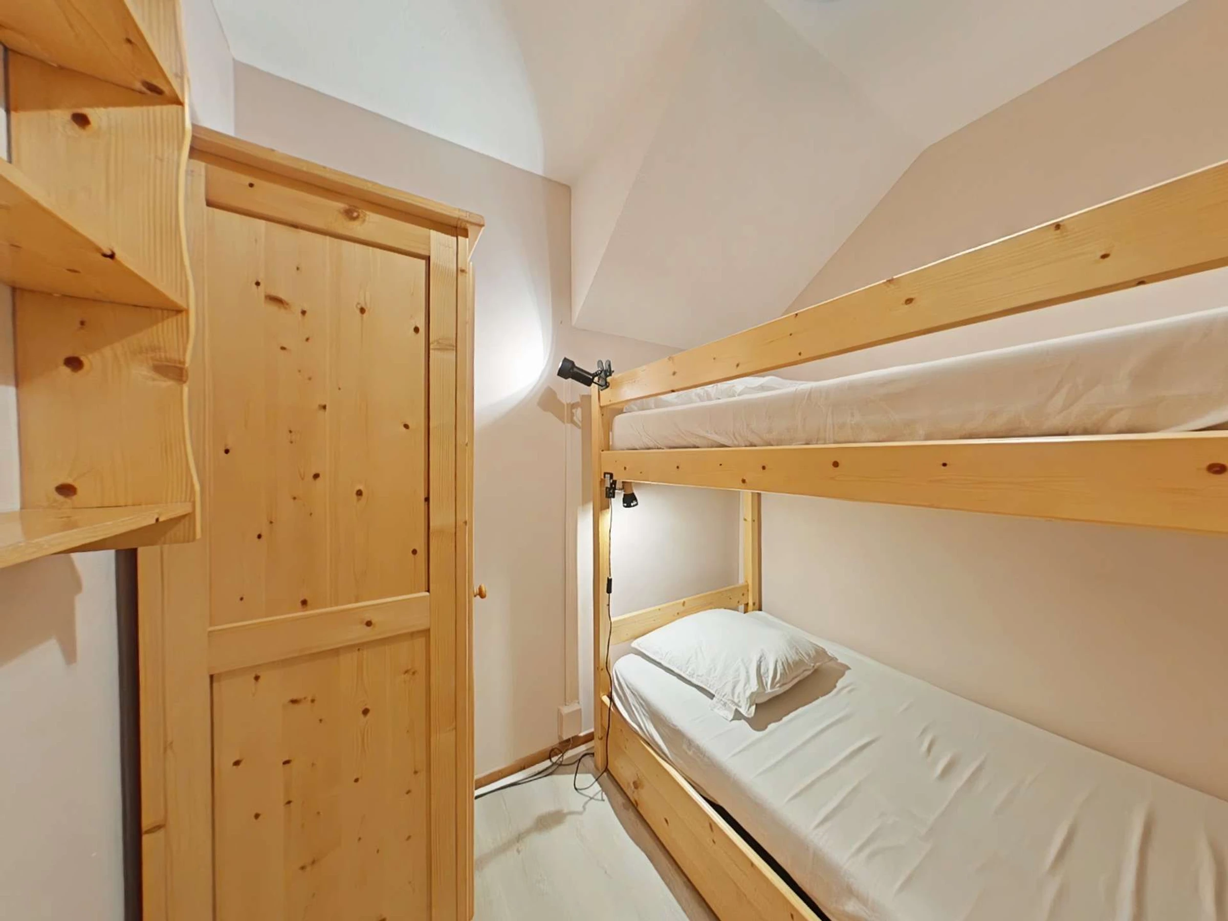 Cet appartement de vacances,situé au 3ème étage avec ascenseur, comprend un séjour avec canapé convertible deux places, télévision, séjour donnant sur un balcon Est, un coin cuisine équipé avec un lave-vaisselle, une cabine avec deux lits superposés, une mezzanine avec un lit deux places (en 160 cm), une salle de bain et un WC indépendant.