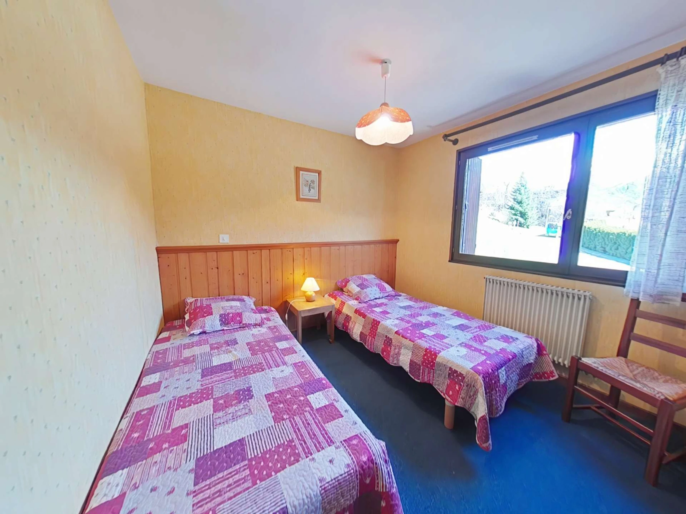 Cet appartement de vacances, au 1er étage, comprend un séjour avec canapé convertible 2 places, télévision et cheminée décorative, un coin cuisine équipé, une chambre avec deux lits simples, une chambre avec un lit double, une salle de bains et un WC indépendant.