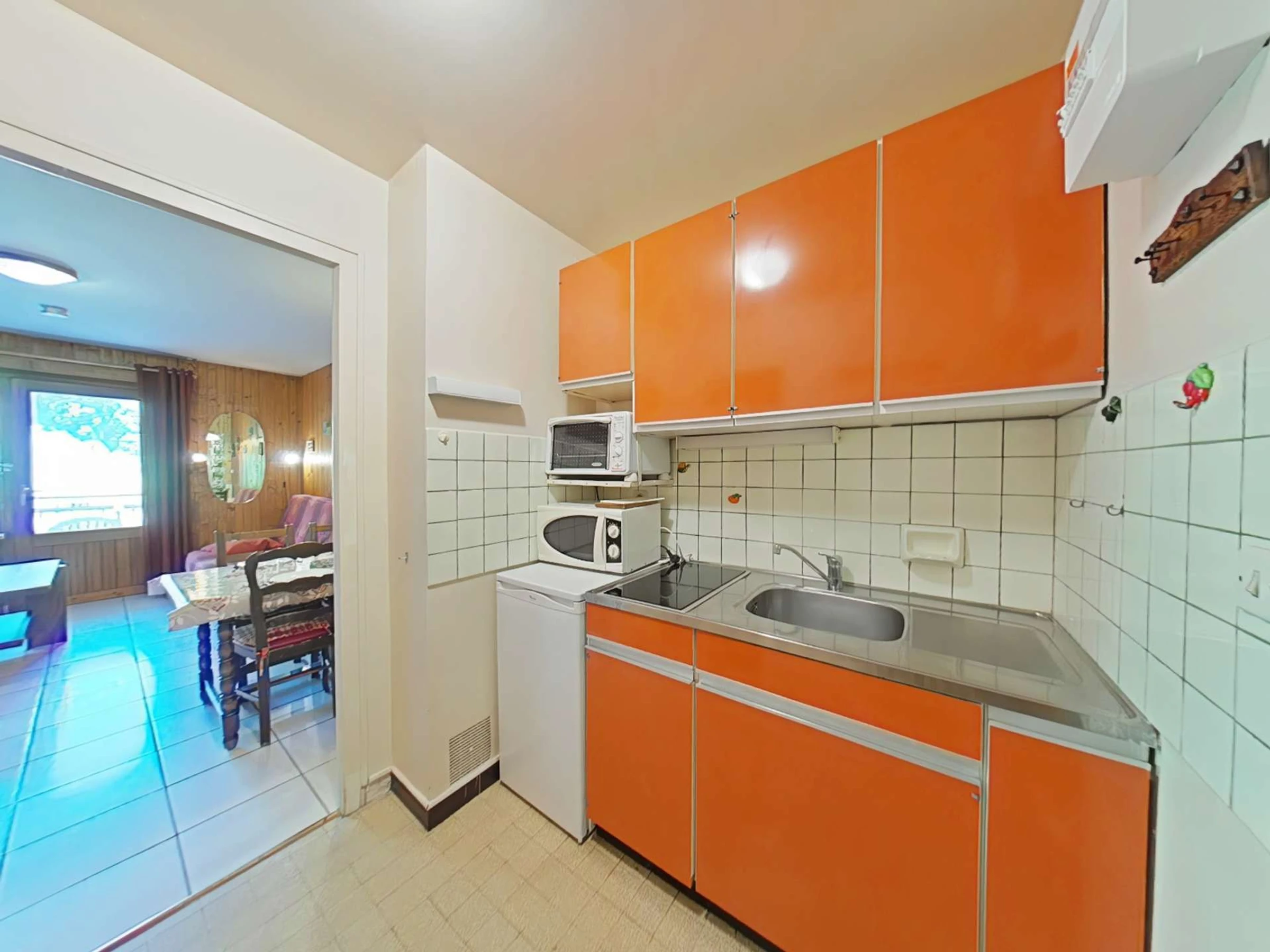 Cet appartement de vacances situé au rez de chaussée, comprend un séjour avec un canapé convertible pour 2 personnes et 2 lits superposés , une télévision, un coin cuisine équipé, une salle d'eau avec WC. Un balcon sud avec vue sur le domaine skiable et un casier à ski. Parking de la résidence emplacement non défini devant la résidence et arrêts navettes à proximité.