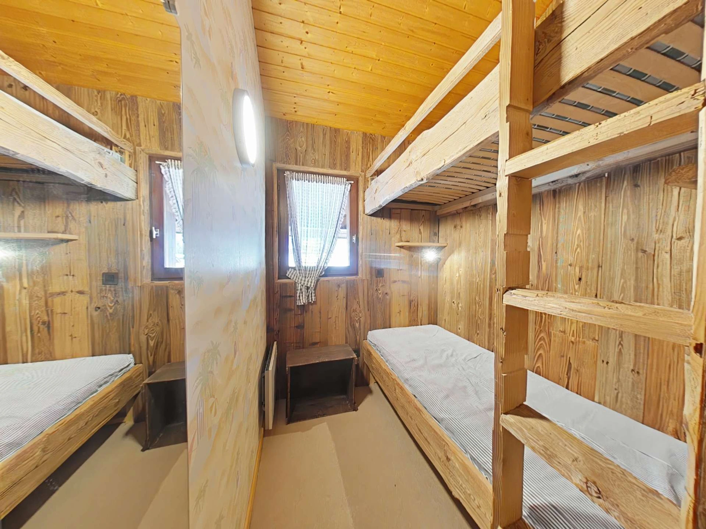 Cet appartement de vacances situé au 2ème et dernier étage, se compose d'une entrée avec rangements, une cabine avec 2 lits superposés, un séjour avec canapé convertible 2 personnes, une kitchenette, une salle d'eau et un WC indépendant. A l'étage, une mezzanine avec un lit 2 personnes (attention accès avec échelle de meunier, interdit au moins de 6 ans)