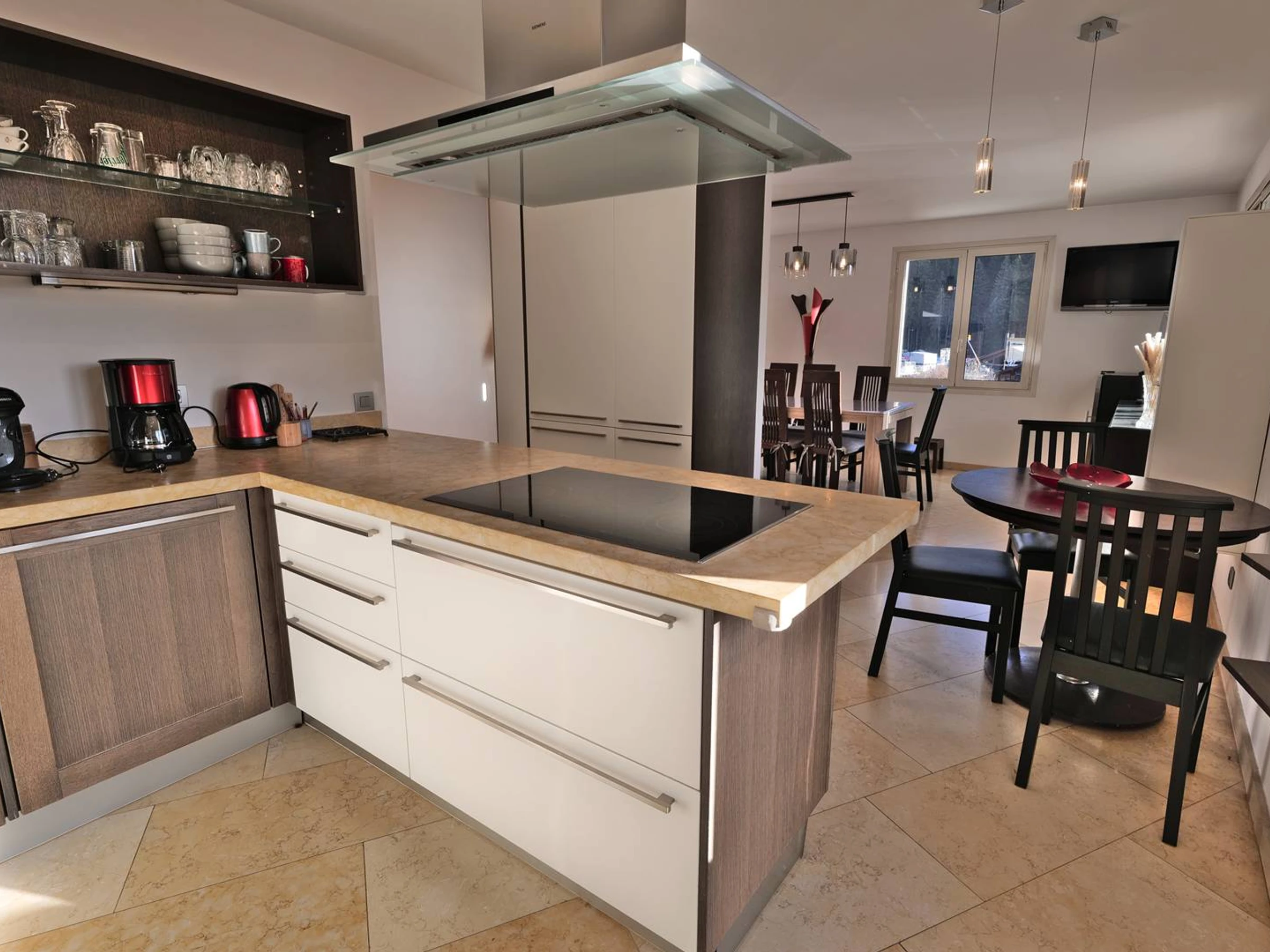 - Cuisine équipée ouverte sur le séjour avec balcon exposition sud-ouest