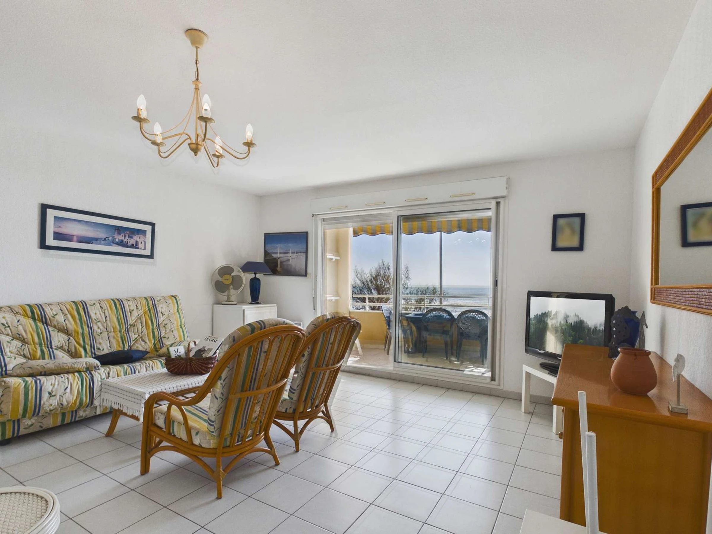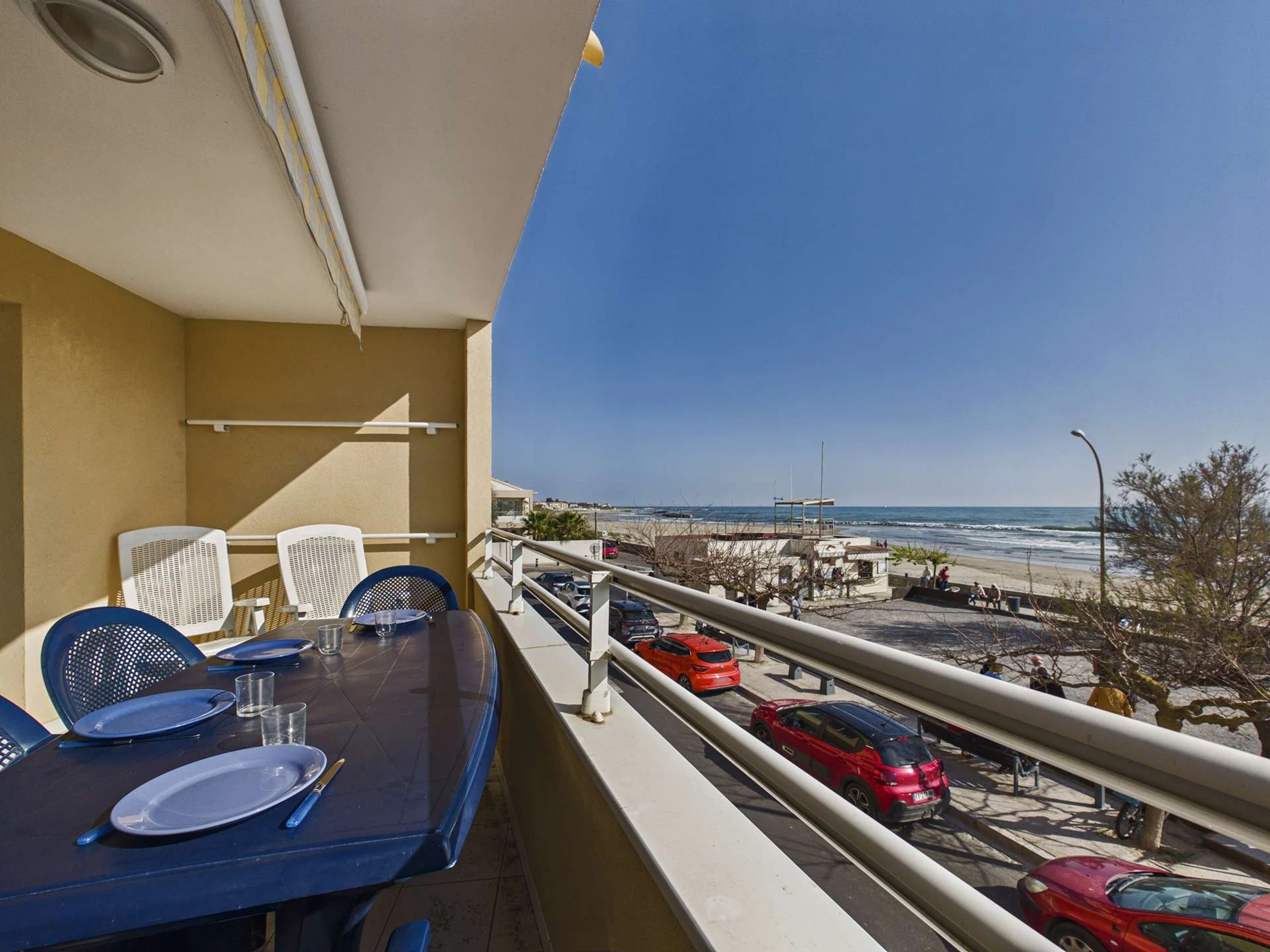 Grau d'Agde, Splendide vue mer depuis la terrasse de ce 3 pièces au 1er étage sans ascenseur, équipé pour 6 personnes.