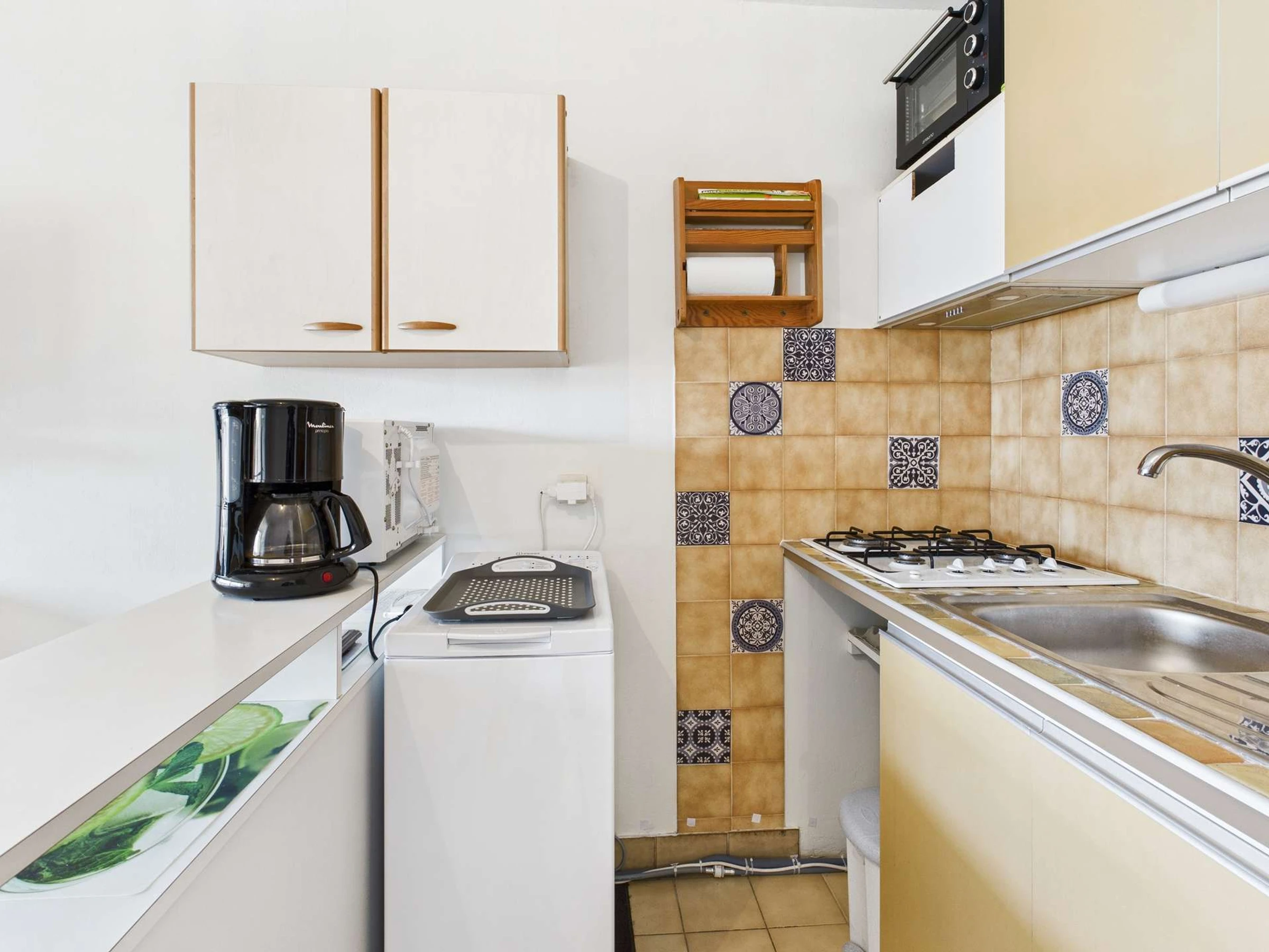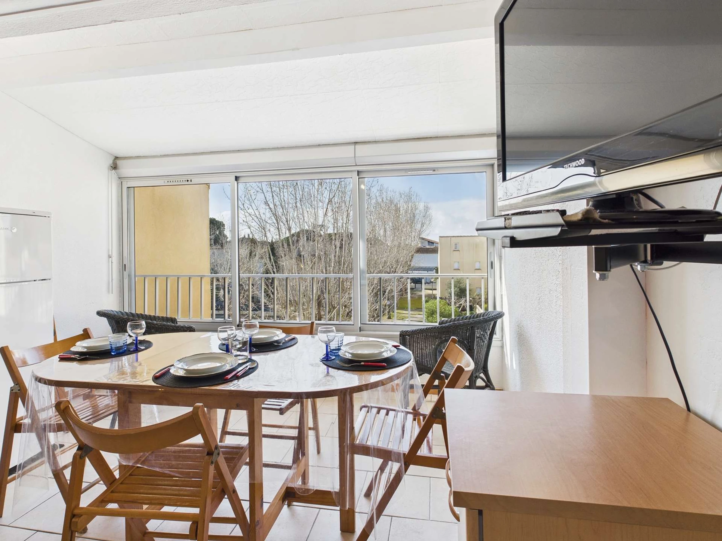 Grau d'Agde : spacieux et lumineux T2 cabine climatisé, au 2° étage sans ascenseur de la résidence sécurisée.Comprenant : entrée, 1 chambre lit double en 140cm, salle d'eau, wc, coin cabine lits superposés en 90cm, cuisine ouverte sur pièce à vivre qui se compose d'un mini four, d'un micro onde, plaque de cuisson gaz.