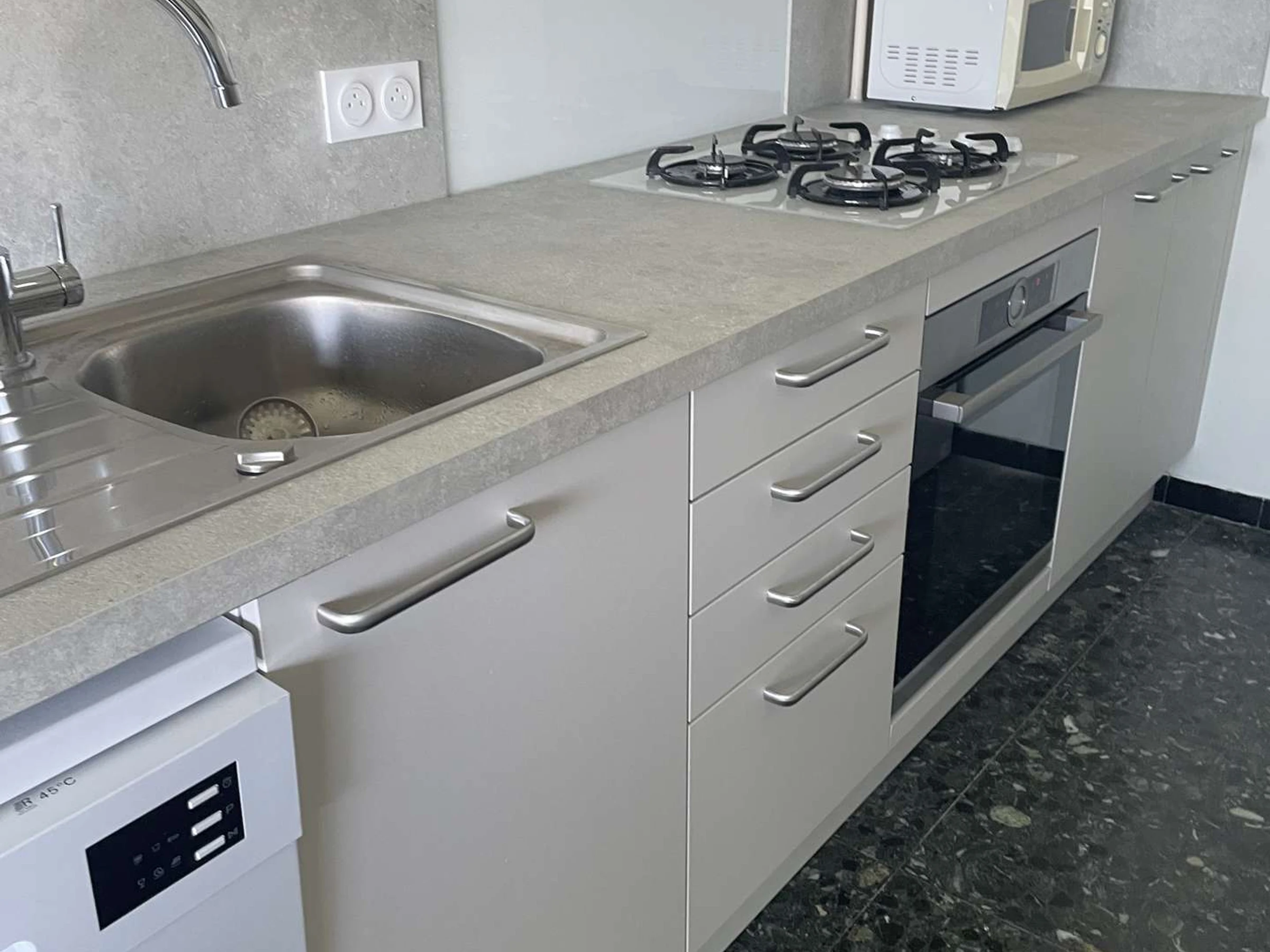 Coin kitchenette entièrement équipée de plaques, four électrique, micro-ondes, grand réfrigérateur+partie congélateur, lave vaisselle.