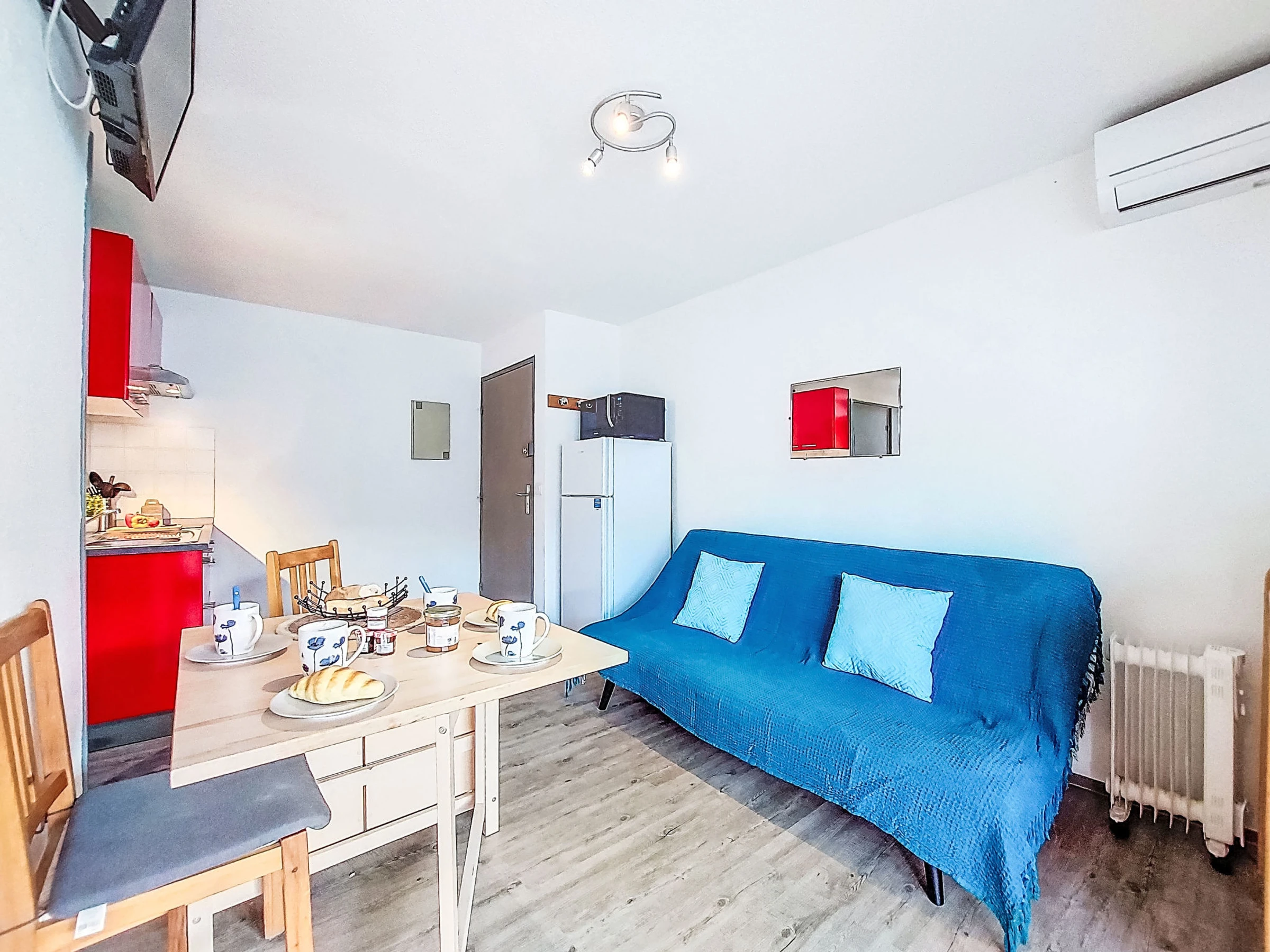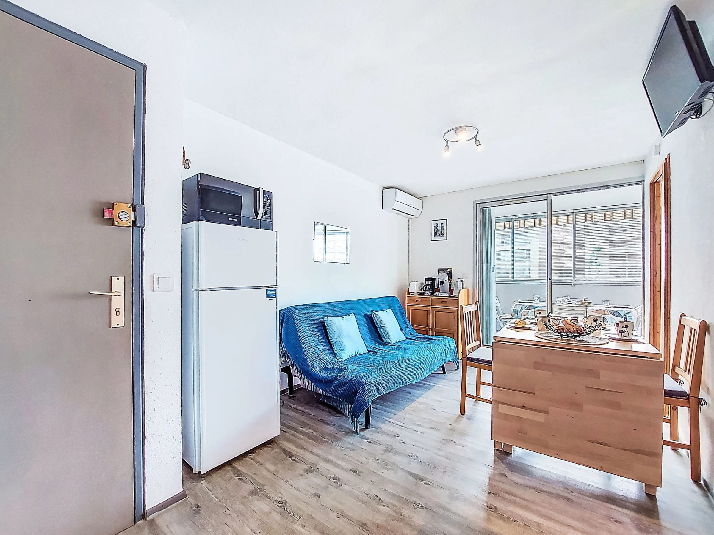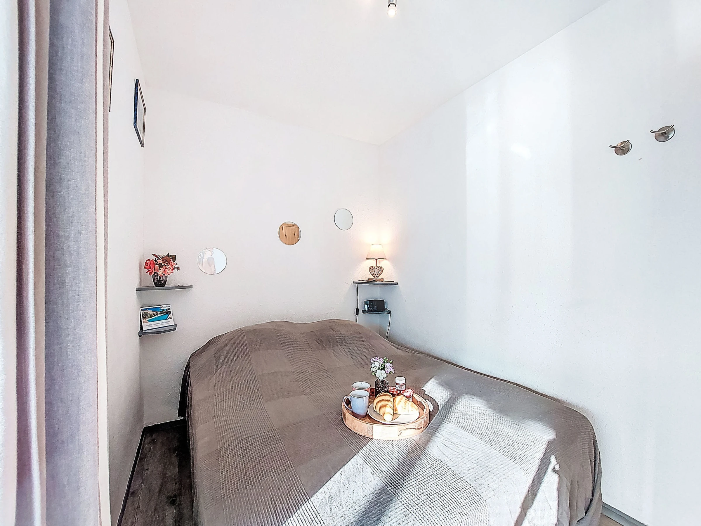 Apt 2 pièces 25 m2 au 1er étage. Aménagement plaisant: séjour/salle à manger avec TV et air-conditionné. 1 chambre avec 1 lit double (140 cm, longueur 190 cm). Cabine avec 1 x 2 lits superposés (80 cm, longueur 190 cm). Coin cuisine (2 plaques vitrocéramiques, congélateur, combiné micro-ondes). Douche, WC séparé. Chauffage électrique. Situation sud-ouest. Meubles de terrasse, loggia. A disposition: Internet (Connexion WIFI, en sus). Place de parking. Veuillez noter: maximum 1 animal/ chien de petite taille autorisé. Détecteur de fumée. Au lieu d'une chambre fermée, des espaces de couchage sont situés dans une zone ouverte (galerie, alcôve...). Annonce d'un particulier (art 155, IV du CGI).