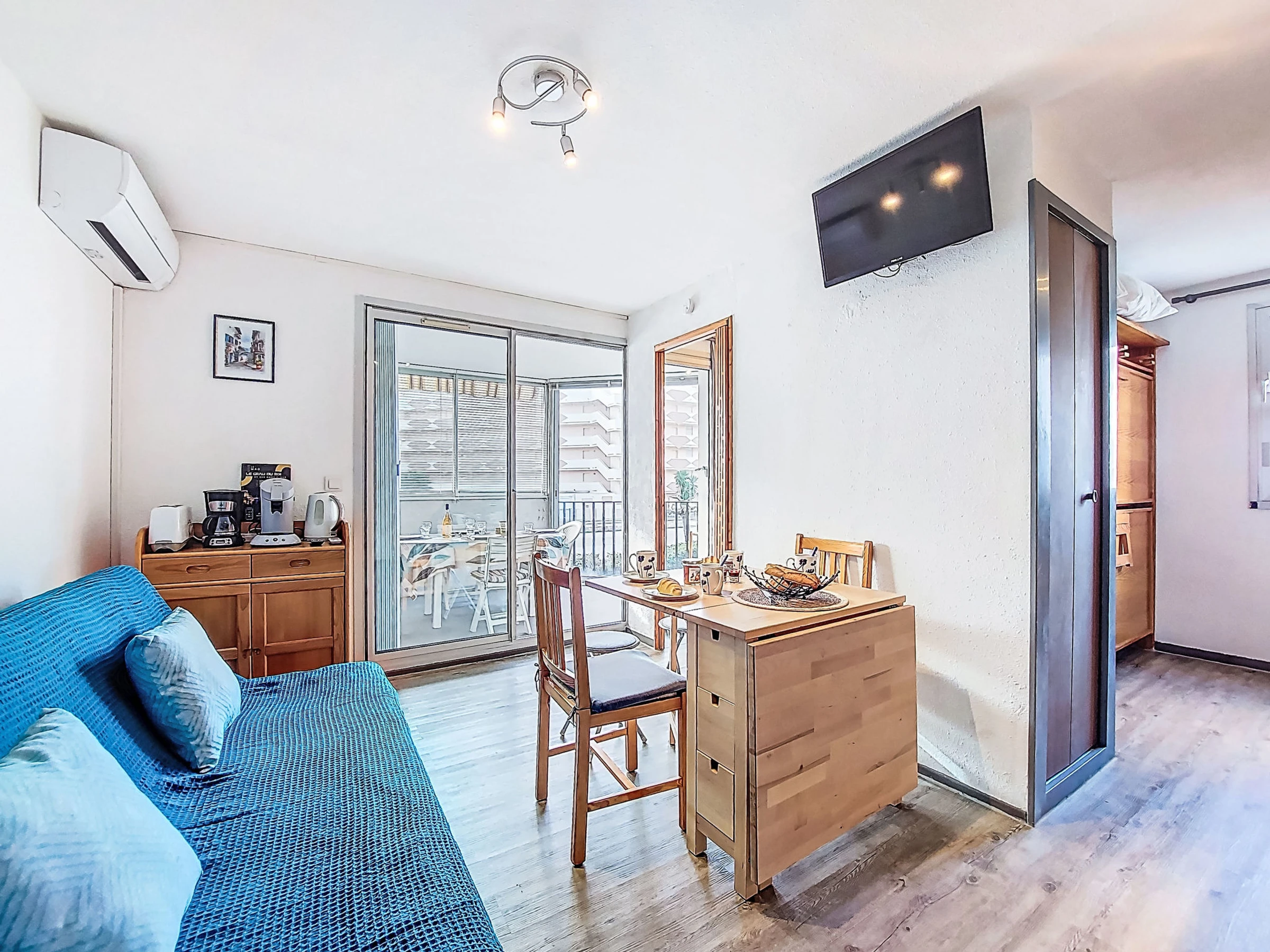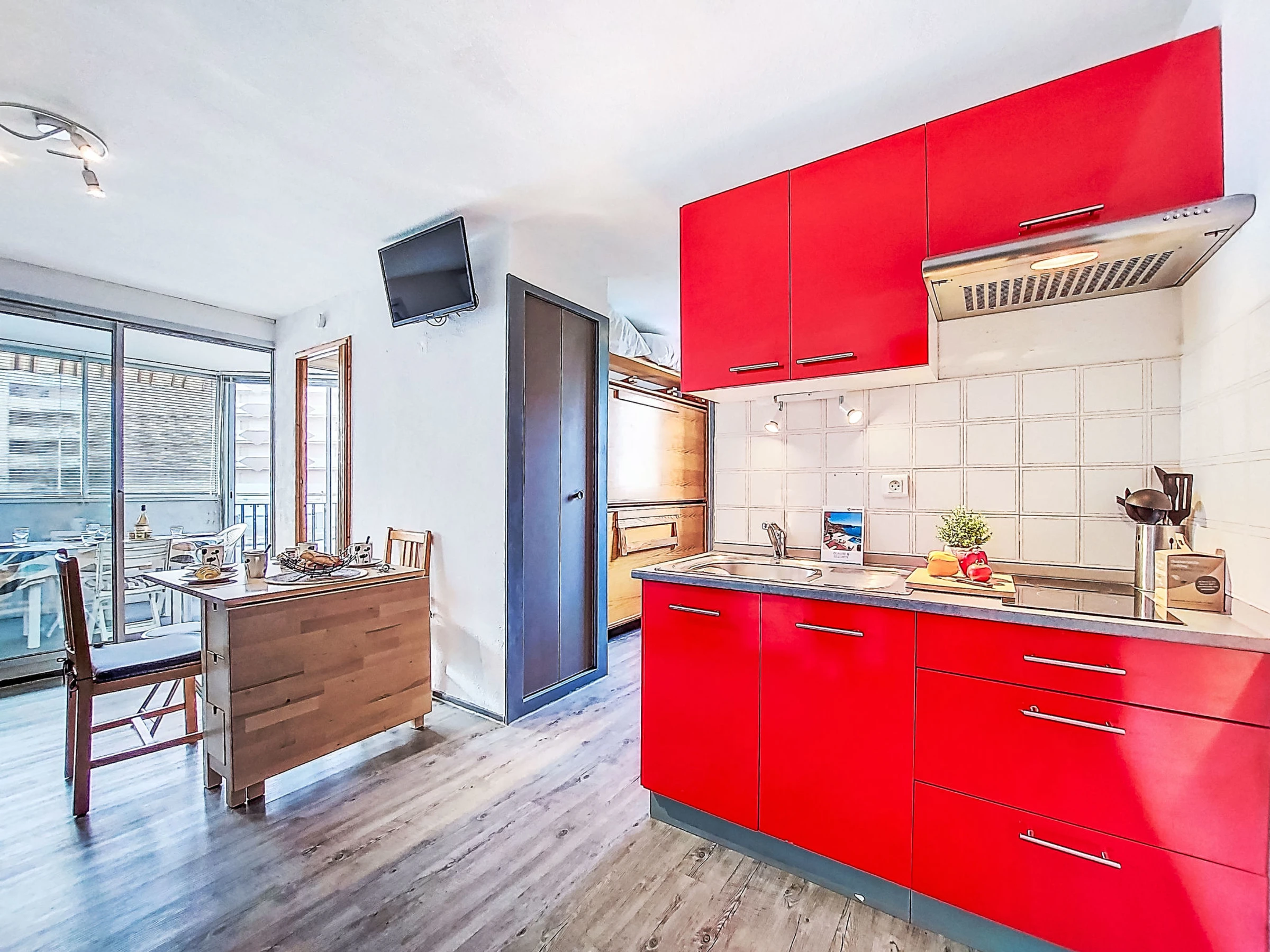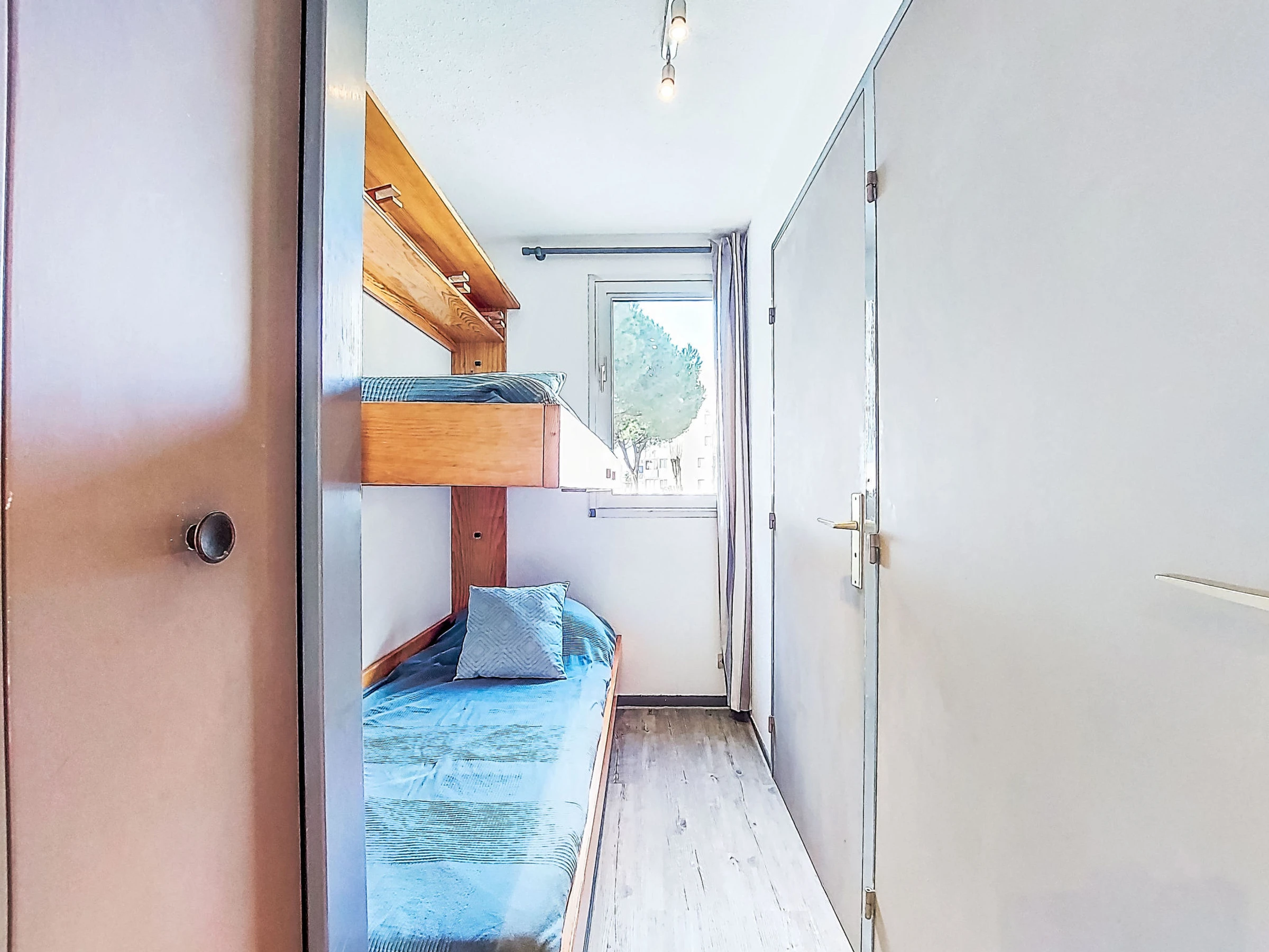 Apt 2 pièces 25 m2 au 1er étage. Aménagement plaisant: séjour/salle à manger avec TV et air-conditionné. 1 chambre avec 1 lit double (140 cm, longueur 190 cm). Cabine avec 1 x 2 lits superposés (80 cm, longueur 190 cm). Coin cuisine (2 plaques vitrocéramiques, congélateur, combiné micro-ondes). Douche, WC séparé. Chauffage électrique. Situation sud-ouest. Meubles de terrasse, loggia. A disposition: Internet (Connexion WIFI, en sus). Place de parking. Veuillez noter: maximum 1 animal/ chien de petite taille autorisé. Détecteur de fumée. Au lieu d'une chambre fermée, des espaces de couchage sont situés dans une zone ouverte (galerie, alcôve...). Annonce d'un particulier (art 155, IV du CGI).