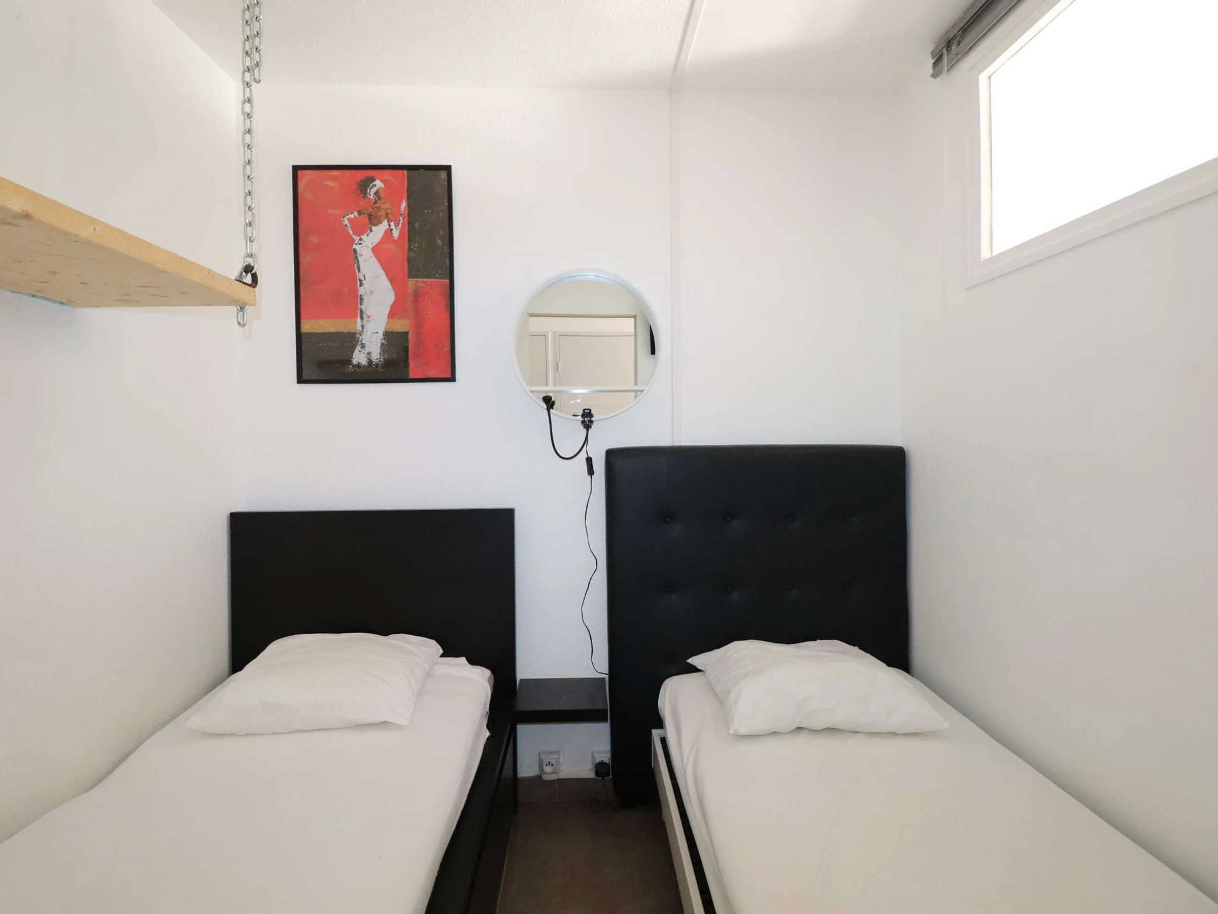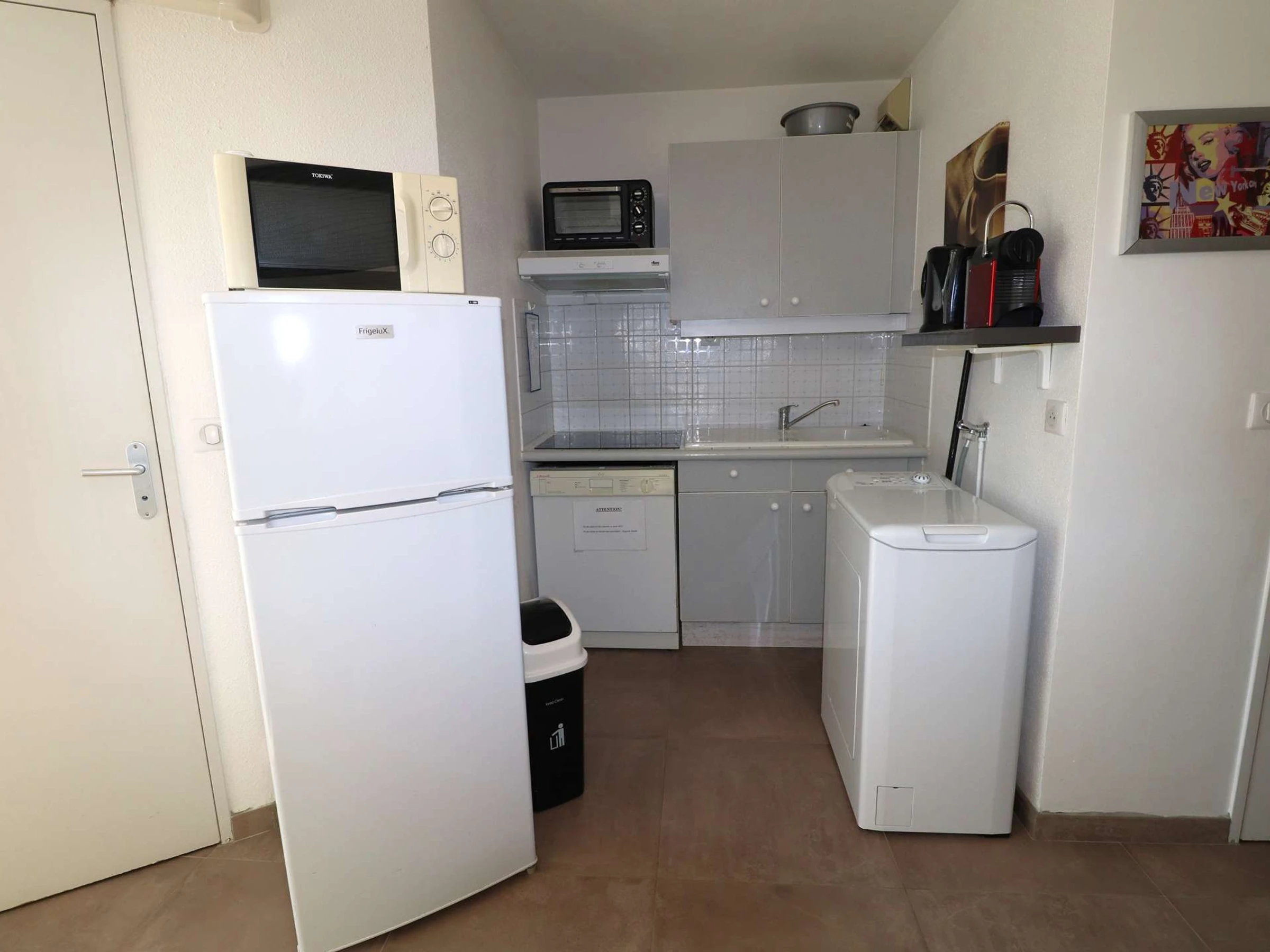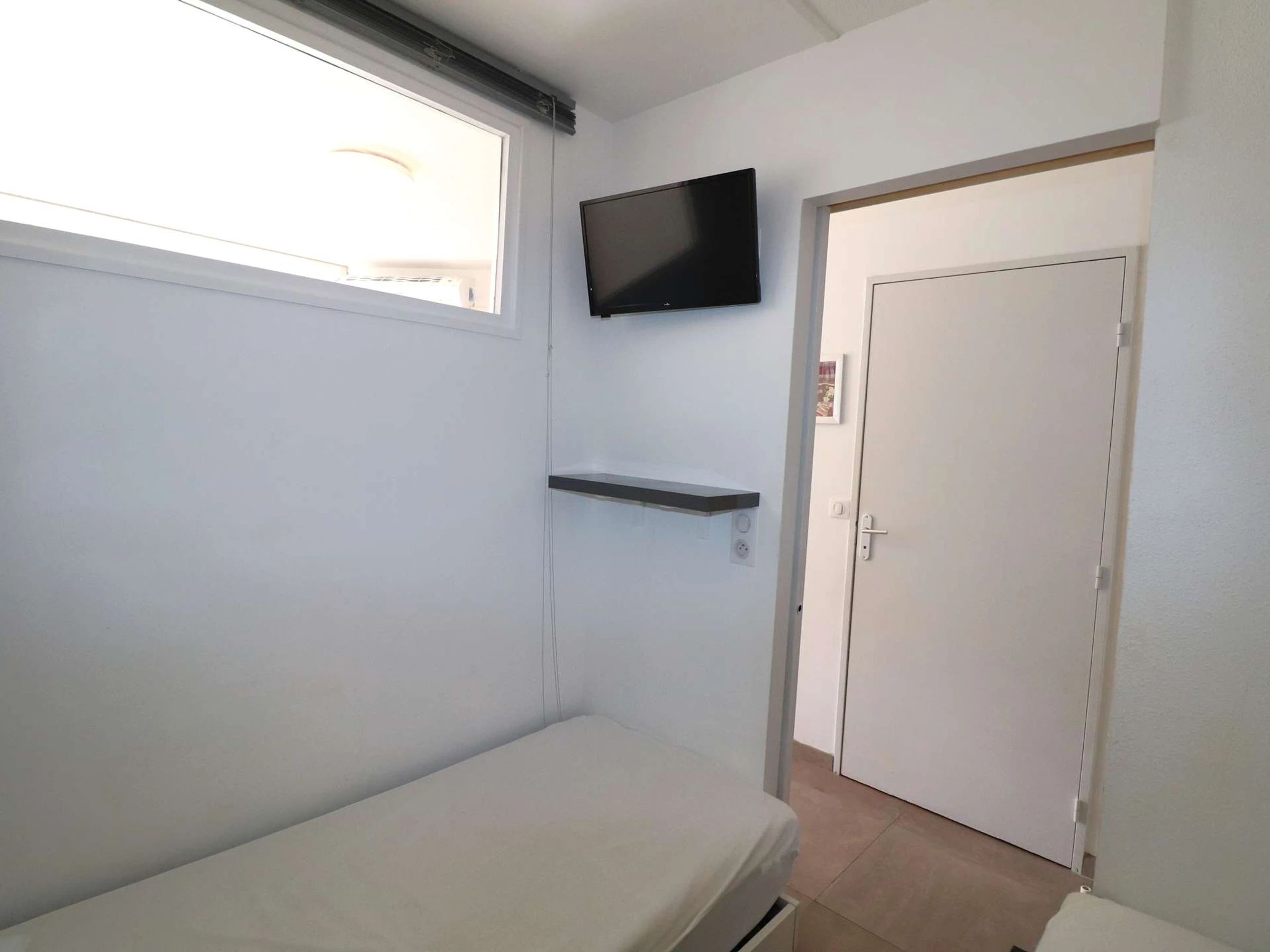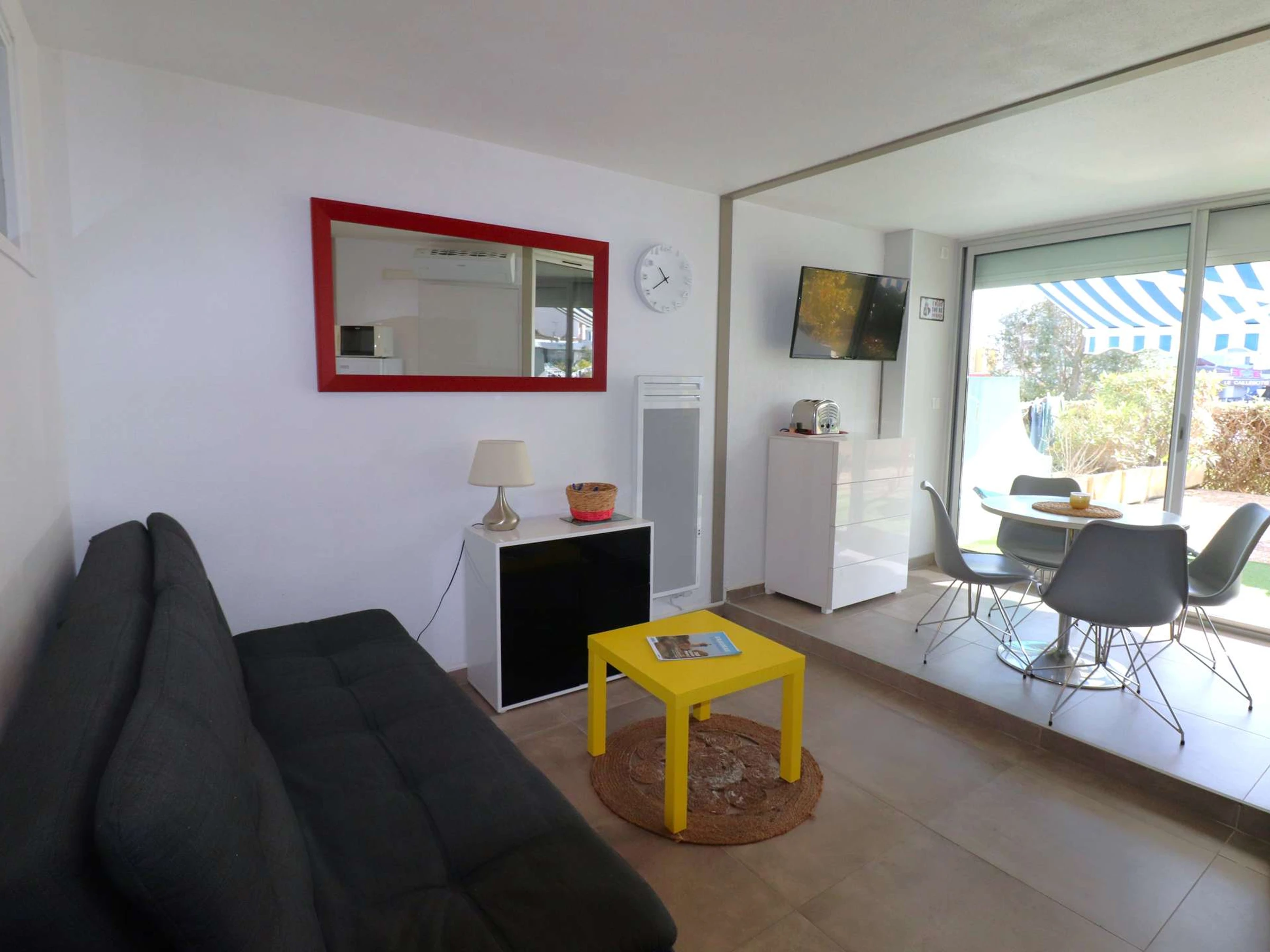 Résidence FLORALIES 2 - Dans résidence bon standing avec piscines, espaces verts, jeux de boules, jardin d'enfants, plage et commerces à proximité, magnifique 2 pièces Cabine très bien équipé avec climatisation en rez-de-chaussée surélevé. Chambre lit double + Cabine indépendante avec deux lits séparés. Salon et salle à manger, lave-linge et lave-vaisselle. Salle d'eau avec douche, lavabo, WC séparés.