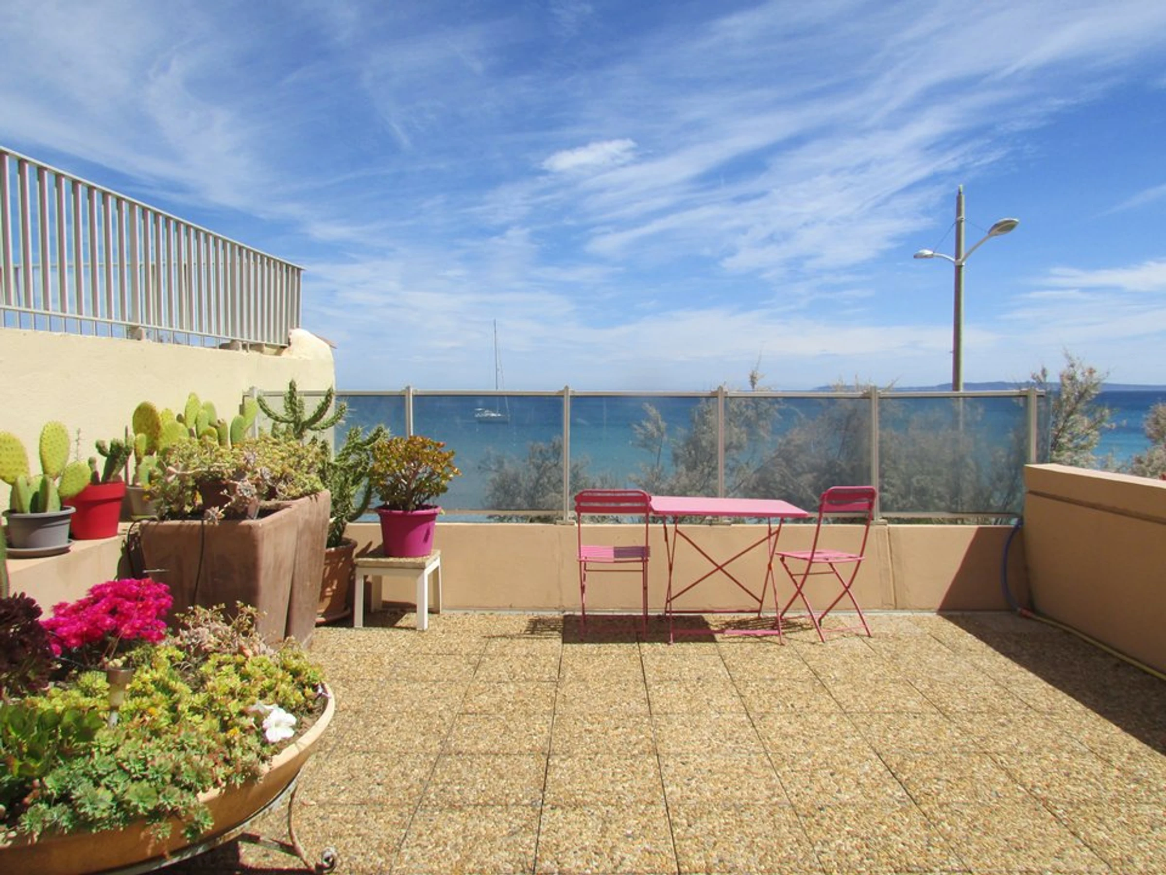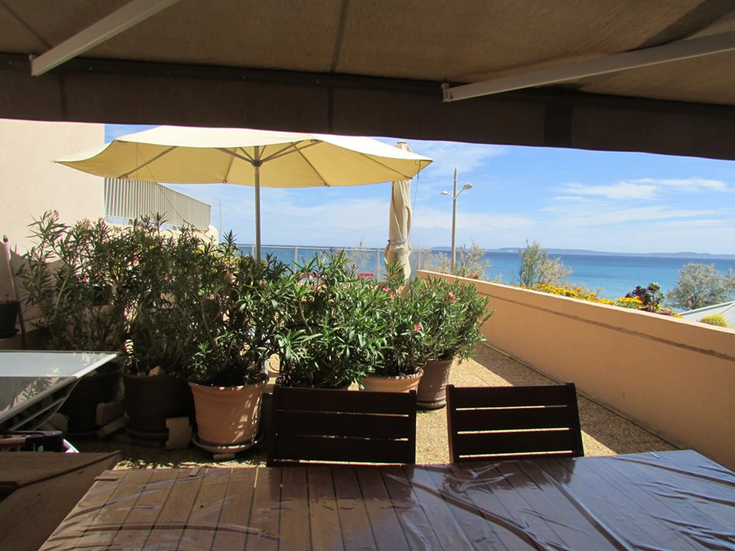 Beau T3 traversant de 70m², face à la mer, climatise, pour 5/6 personnes.