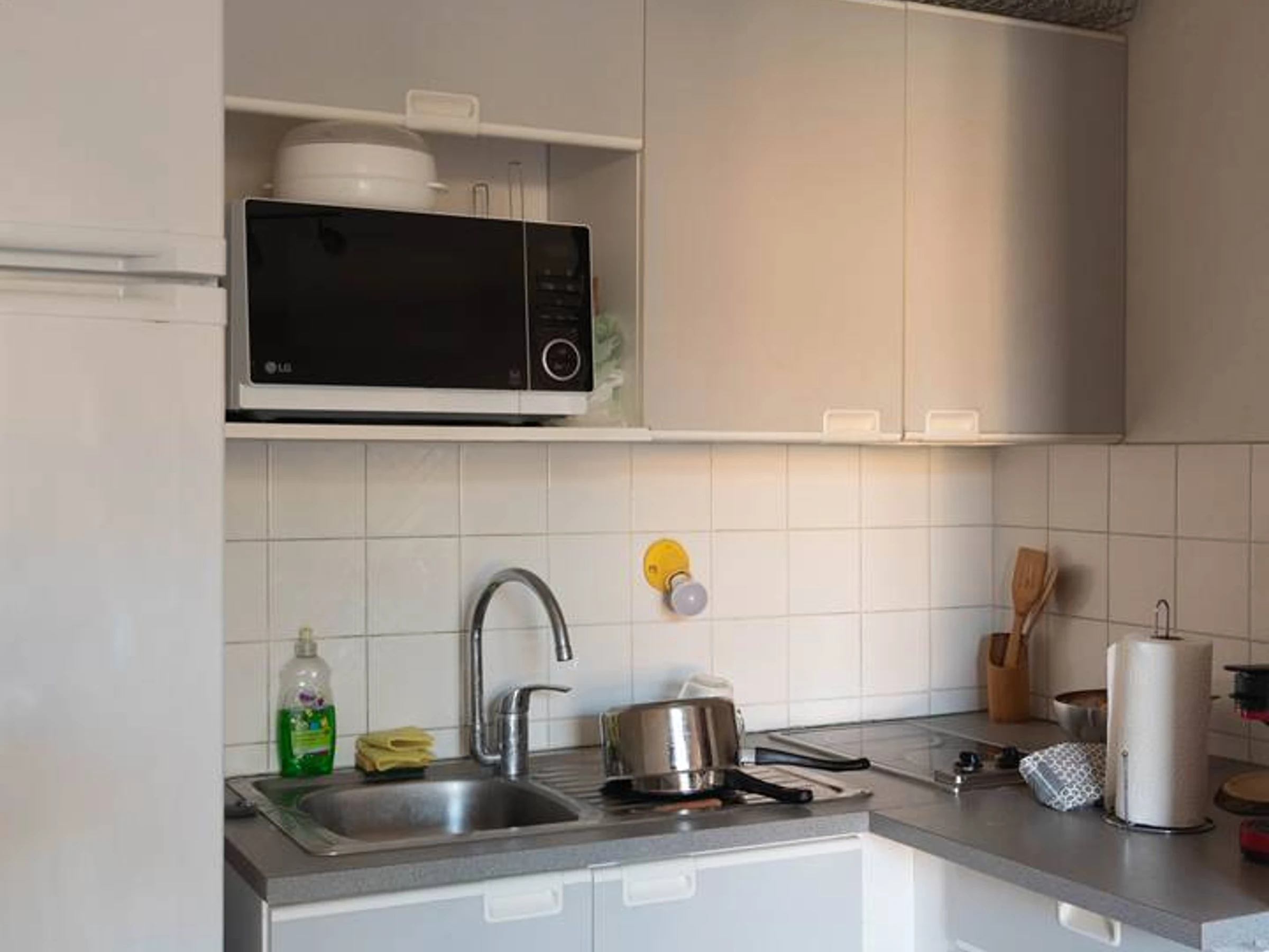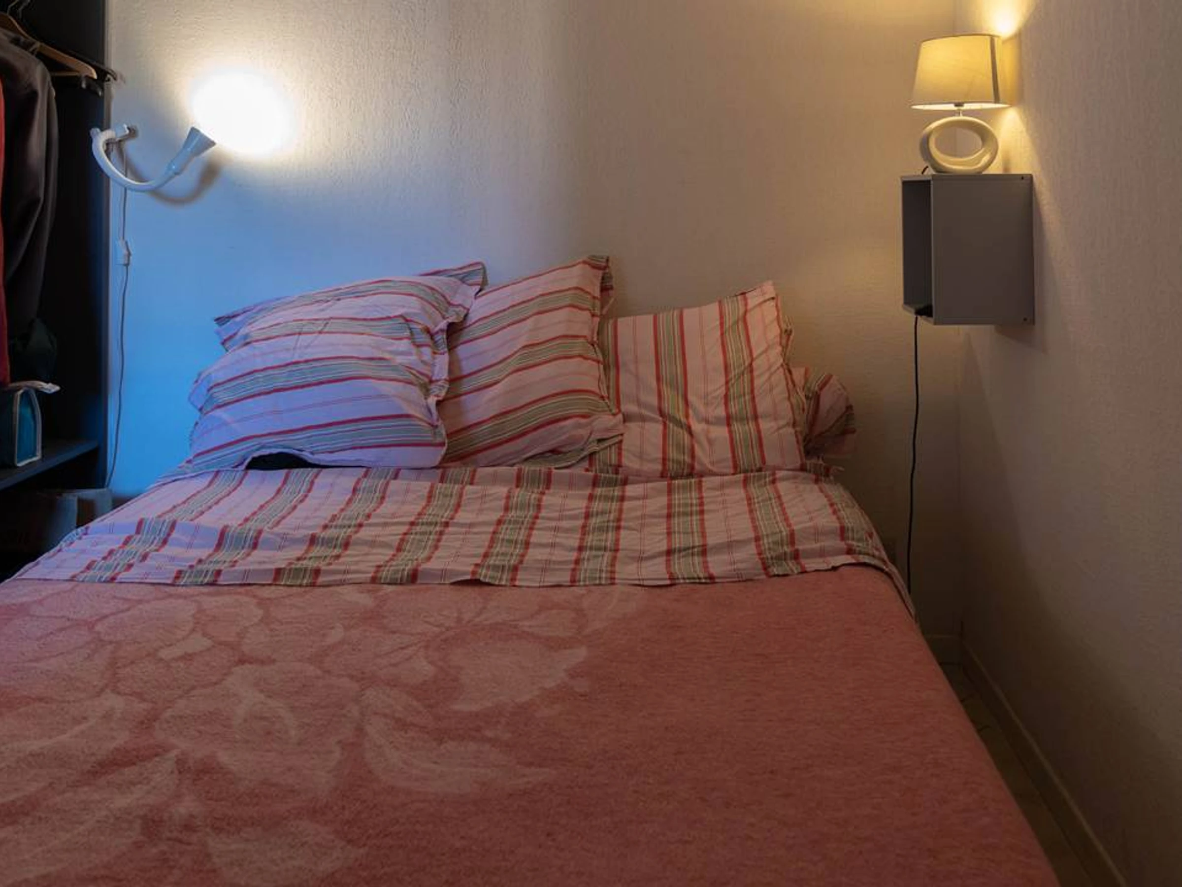 Appartement T2 + cabine de 25m² pour 4 couchages ; au 4ème étage avec ascenseur. Entrée, salle de bains et WC séparés. Coin nuit indépendant avec deux lits superposés de 90 cm. Séjour avec kitchenette équipée (grand frigo + congélateur , petit LV 4 couverts, 2 plaques électriques, MO) une terrasse équipée pour les repas donnant sur l'arrière de l'immeuble (calme). Chambre avec placard et 1 lit de 140 cm - climatisation - volets électriques - Télévision et parking privatif - Les animaux ne sont pas acceptés. Taxe de séjour en sus