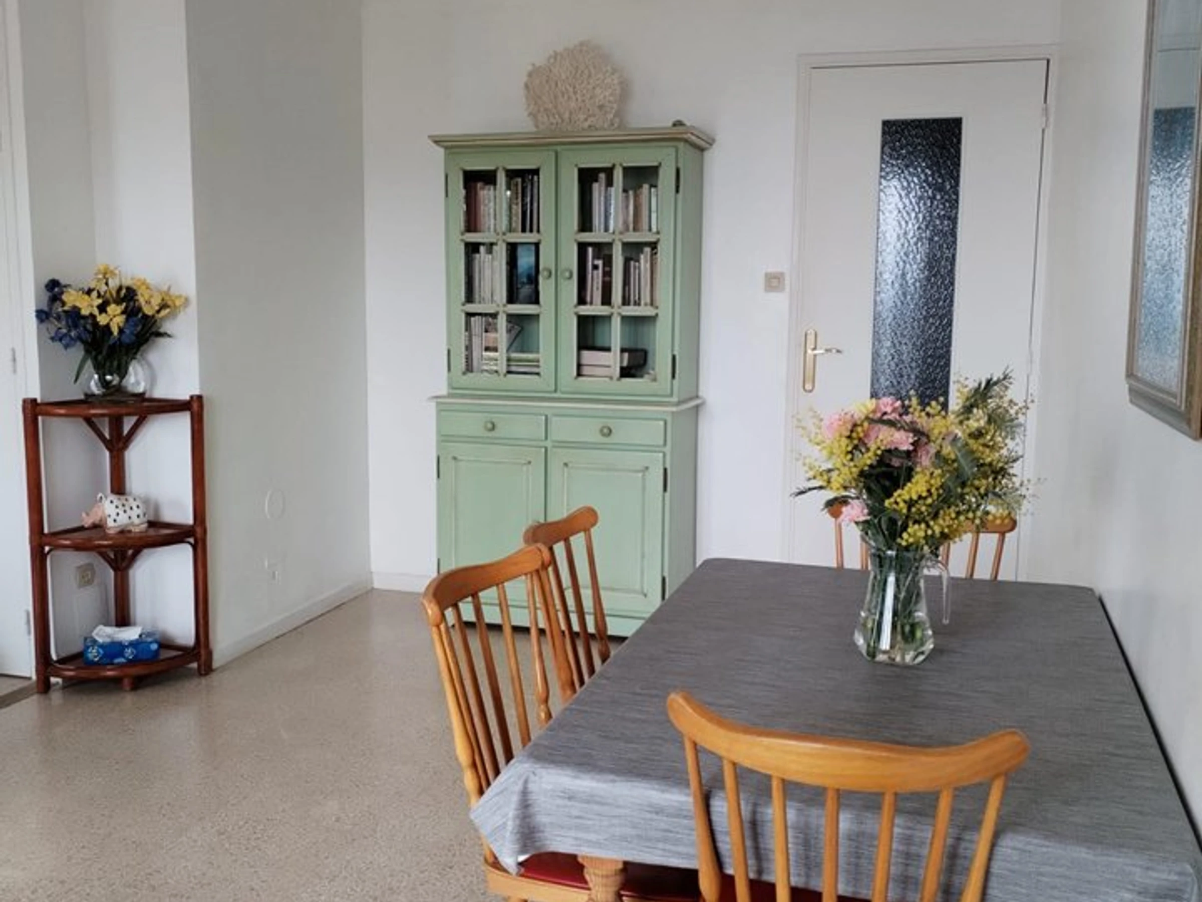 Spacieux T2 de 52 m² pour 4 personnes avec belle terrasse en angle de 19m2 offrant une vue panoramique sur la mer et la plage de St Clair - Expo sud-est. Séjour avec clic-clac 140 cm et TV, chambre avec 1 lit de 160 cm ; salle de bains et WC séparés, cuisine indépendante équipée (four, micro-ondes, lave-linge, frigo/congélateur) - Parking privatif n°10. - Taxe de séjour en sus.