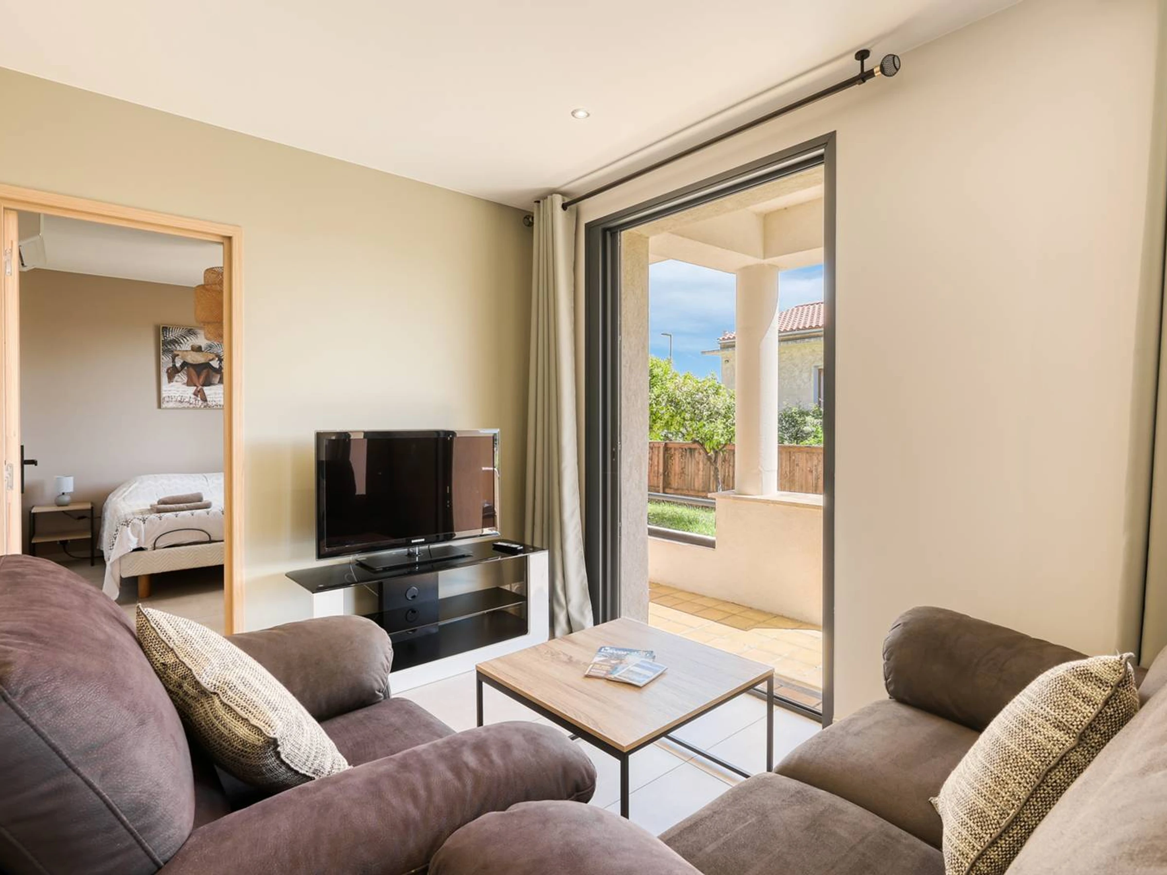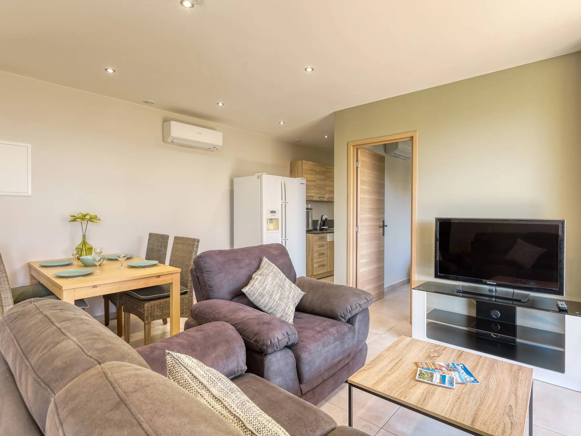 - Un séjour avec canapés, TV, climatisation et coin repas.