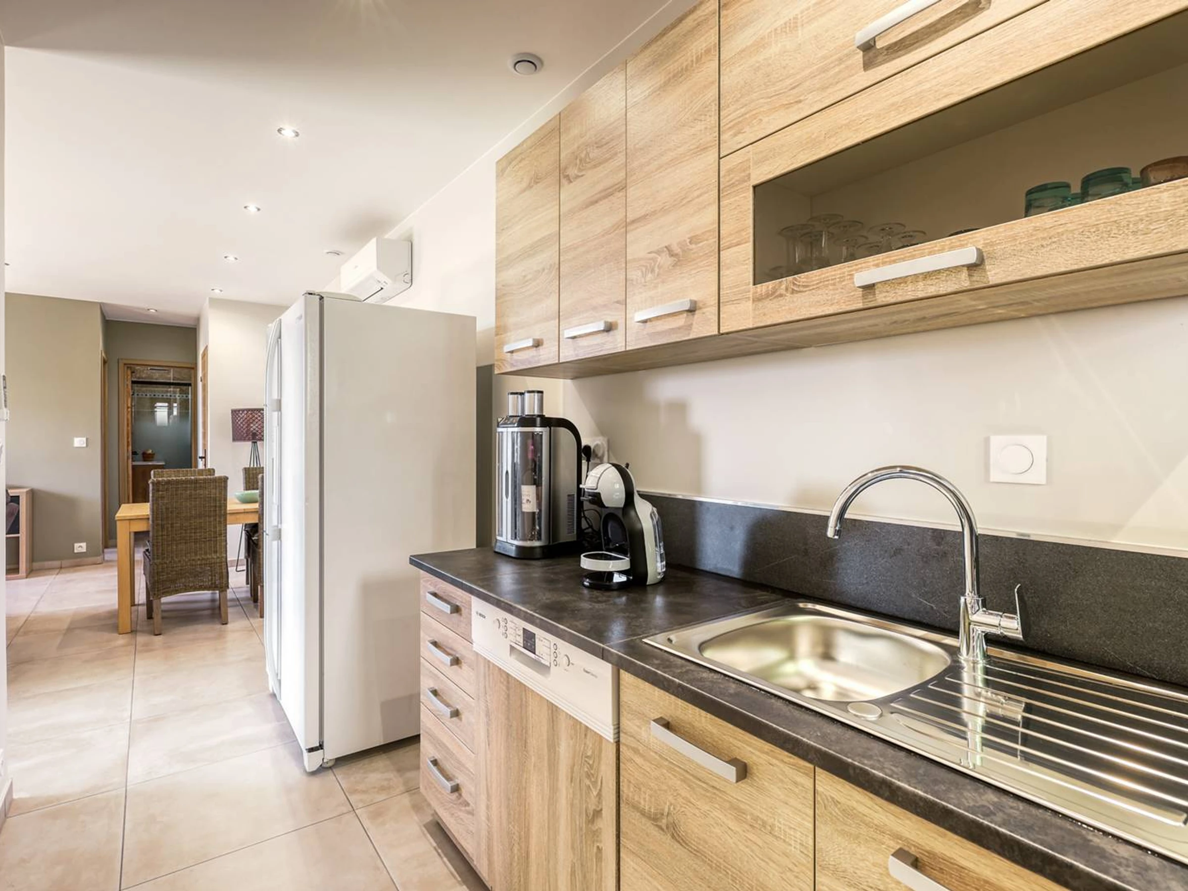 - Un coin cuisine équipée, ouverte sur le séjour : réfrigérateur-congélateur, plaque de cuisson, micro-ondes, Four , lave-vaisselle, hotte aspirante, grille-pain, cafetière Dolce Gusto, Bouilloire, petite cave à vin ...